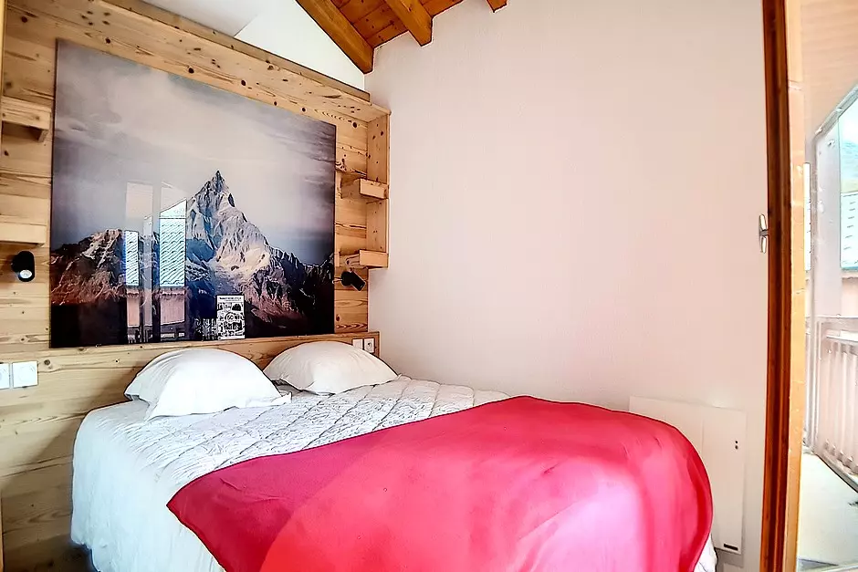 Bedroom 2 (on the ground floor): 1 double bed 160 cm (access to the corner balcony). Small TV fixed to the wall.