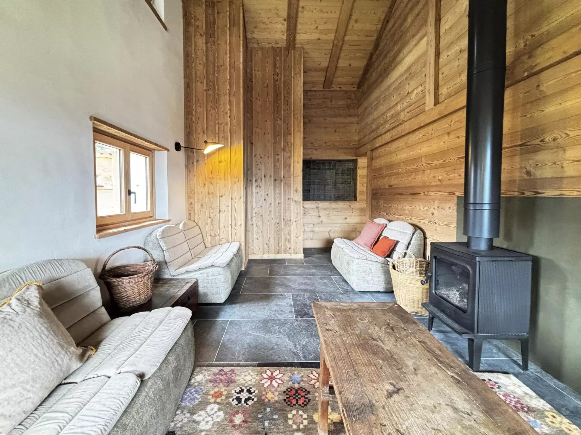 Cozy lounge with wood-burning stove, perfect for your evenings by the fire