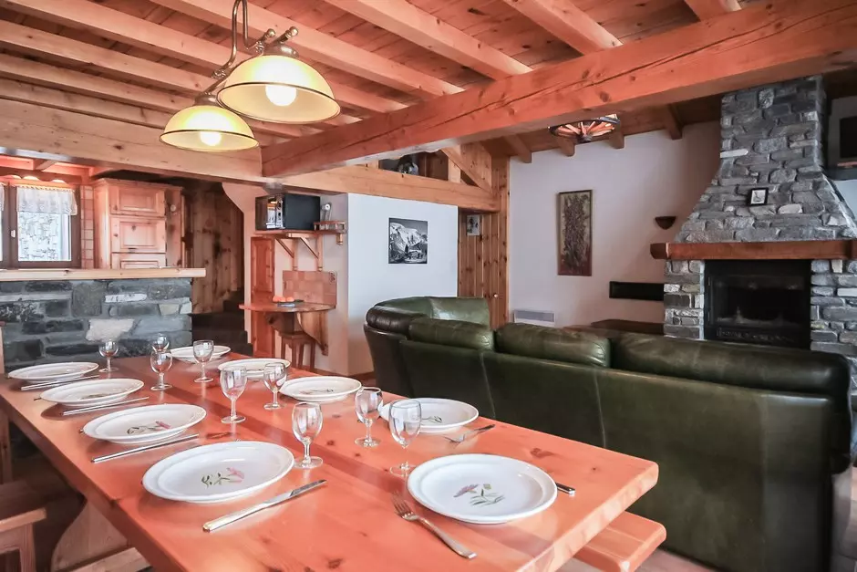6-room chalet apartment of 120m² for 10 people. It is composed of 3 levels and has a large south-facing balcony, offering a panoramic view of the Tarentaise Valley.