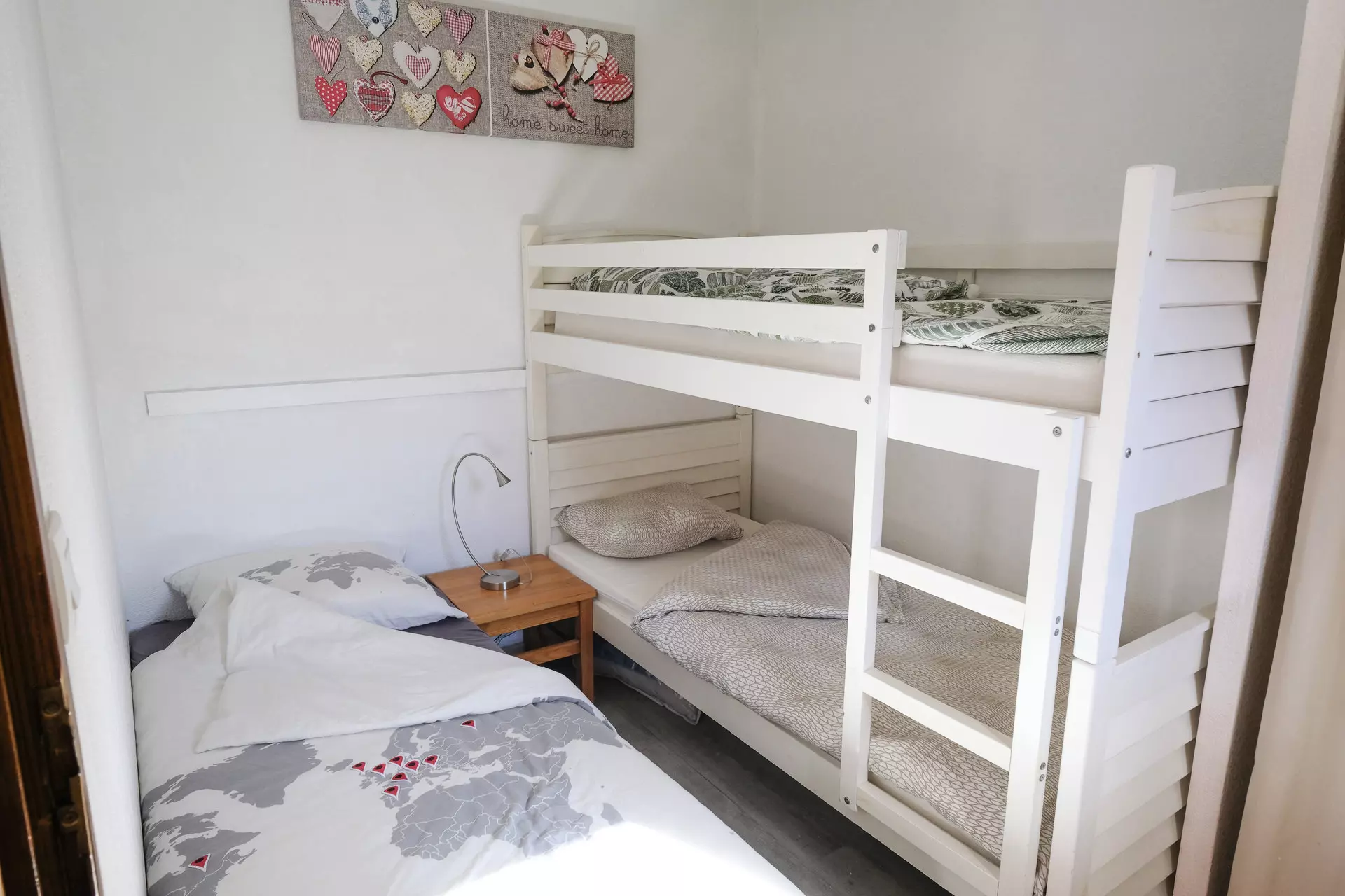 Bedroom 1 (7m²): 1 single bed (80cm) + 2 bunk beds (2x 90cm)