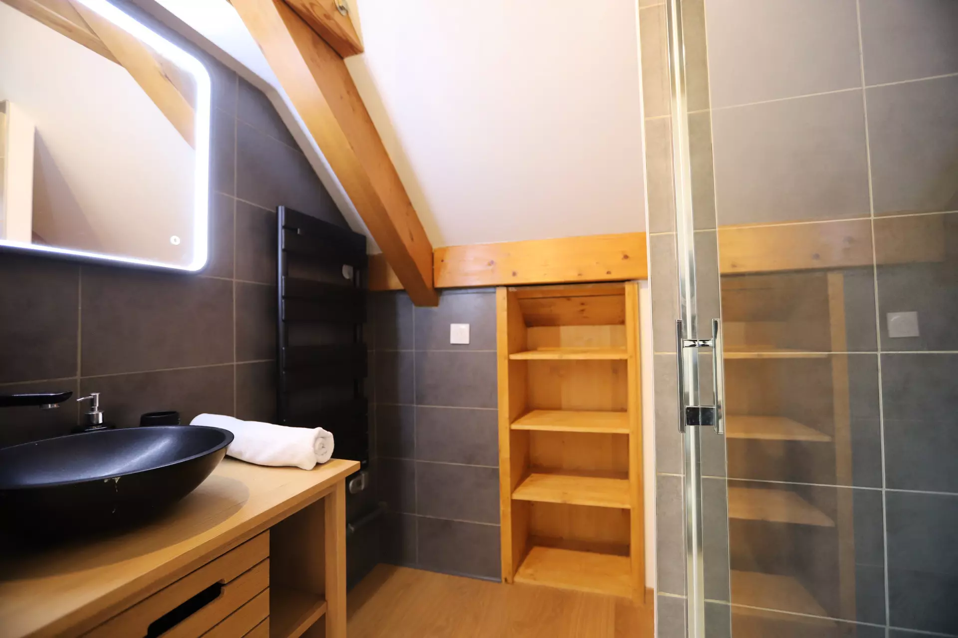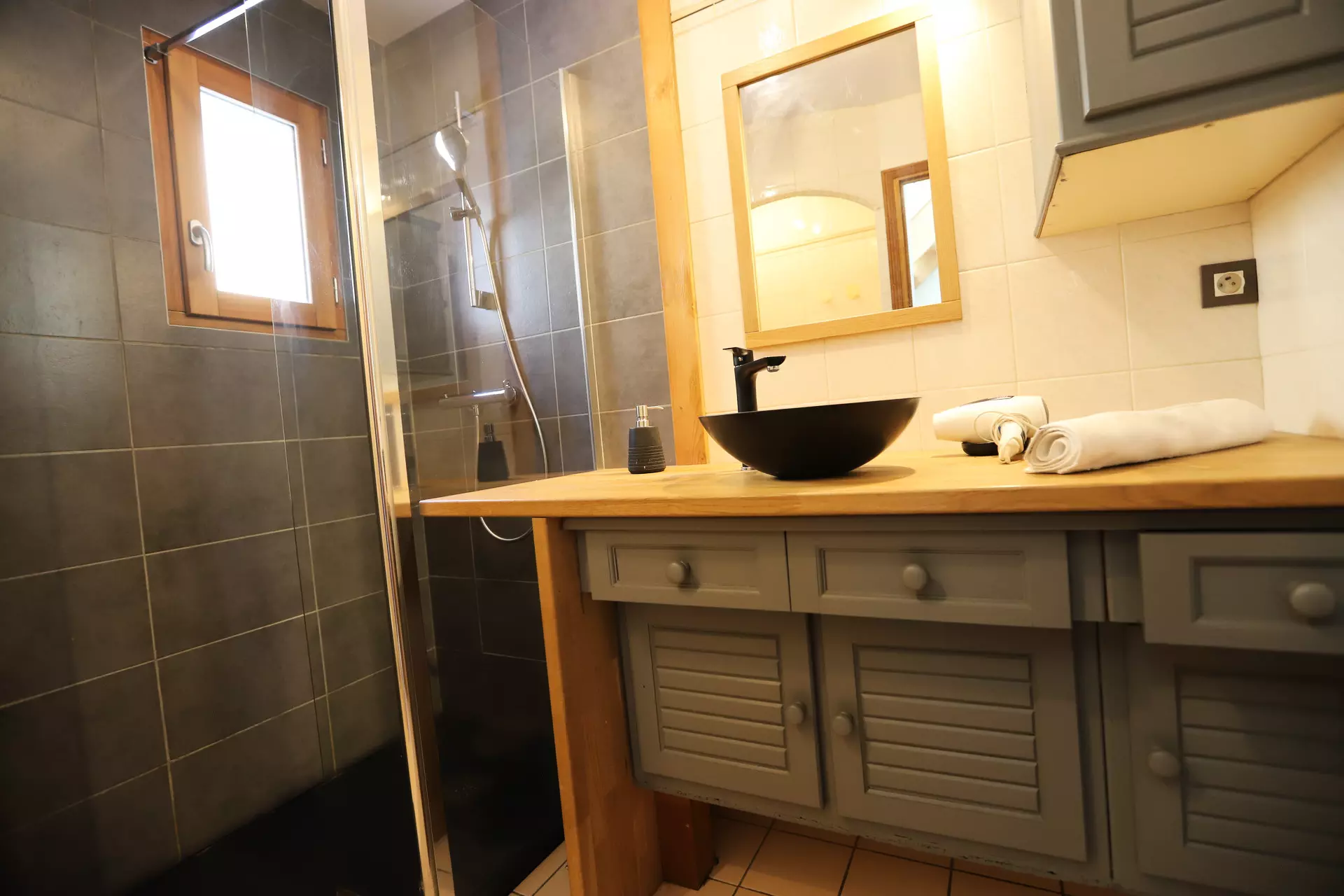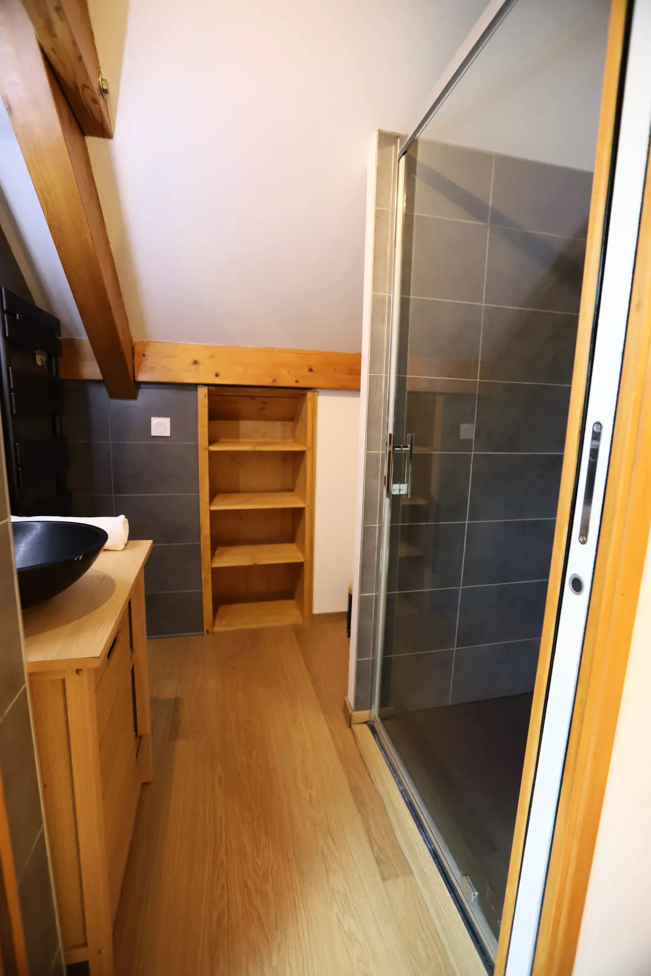 Shower room (Level +2/ in bedroom 3): shower, sink and WC.