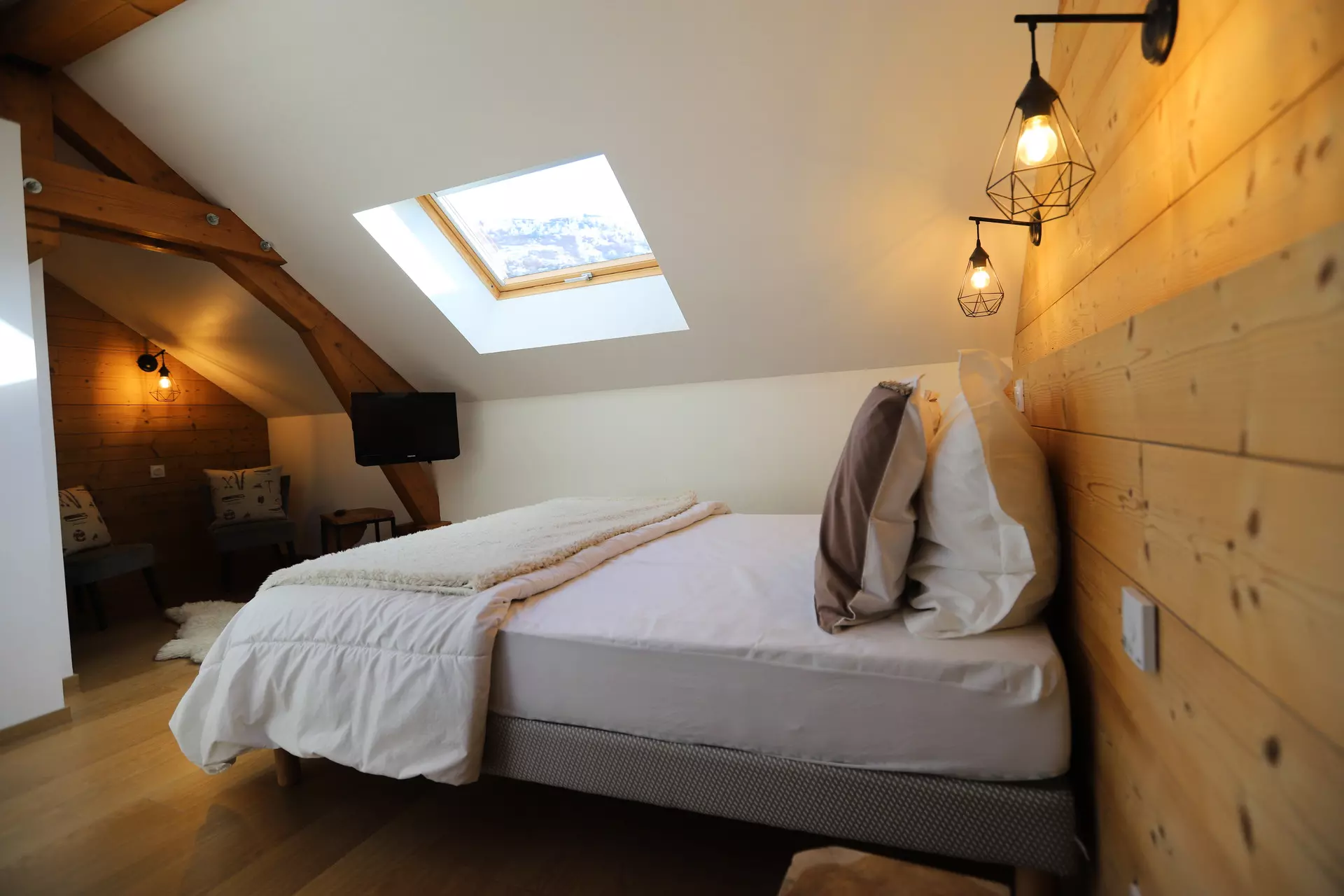 Bedroom 3 (Level +2/ 15m²): 1 double bed (160cm) + television + shower room