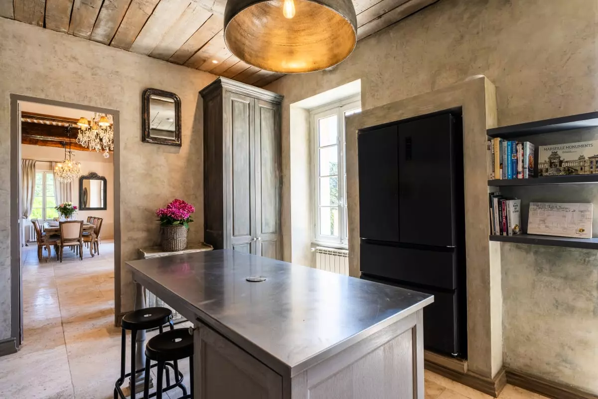 Just a few minutes from Aix-en-Provence, nestled in a pristine natural setting, the Domaine de la Rose Comtesse stands out with grace and discretion. Behind its time-worn blond stone walls, this intimate setting reveals a way of life deeply rooted in the gentle Provençal spirit. The song of cicadas punctuates the summer days, lavender lines the shaded paths, and the gaze is lost in a 1.7-hectare private park planted with olive trees, umbrella pines, and cypress trees.