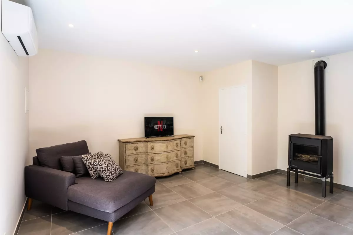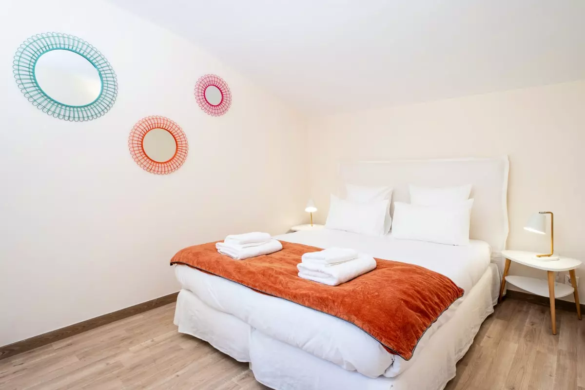 The entire house is air-conditioned, ensuring optimal comfort in all seasons. The hotel-quality bedding (160x200 cm) has been carefully selected to provide peaceful and restorative nights. The overall atmosphere is soft and peaceful, conducive to rest and shared moments.