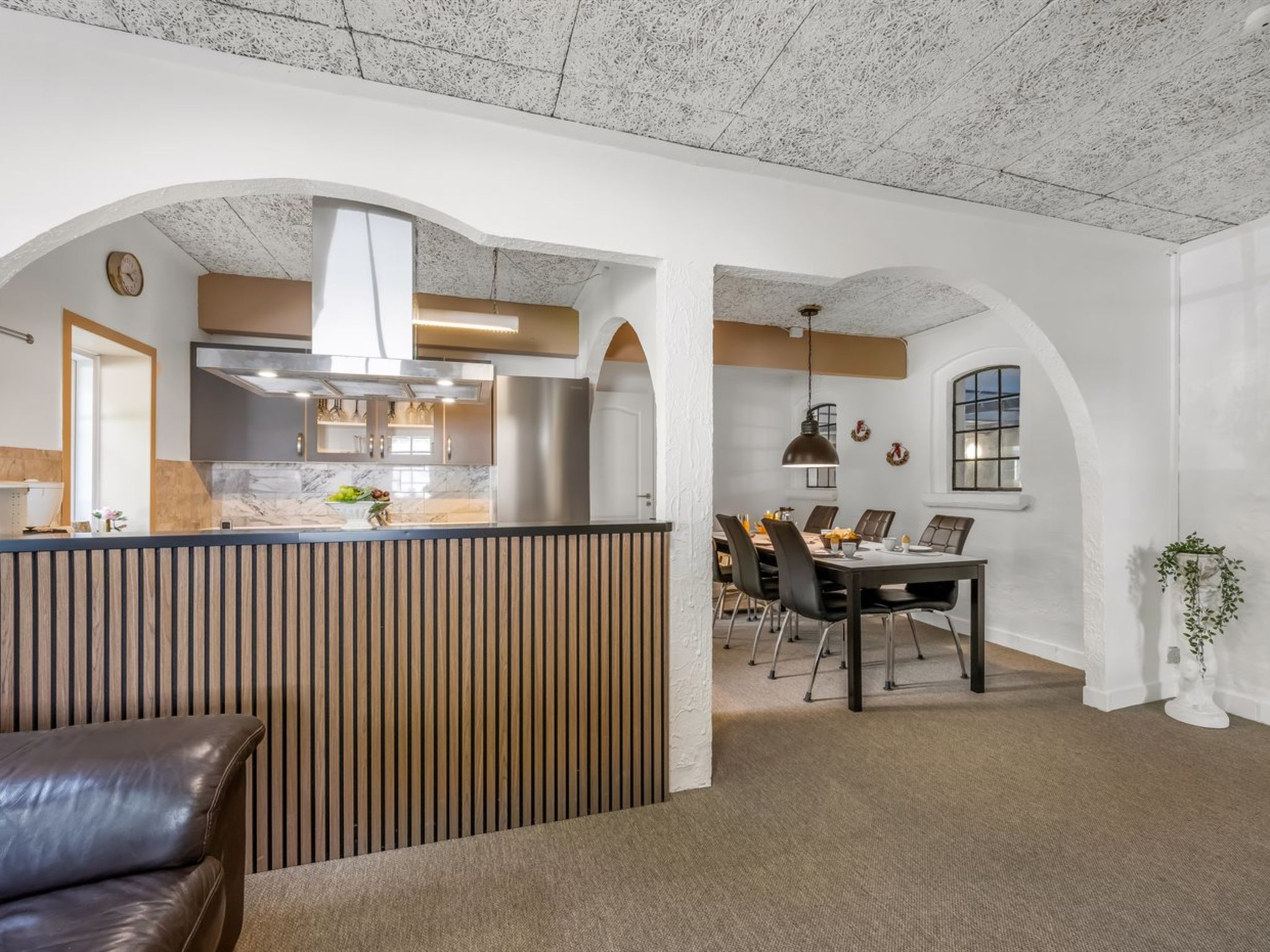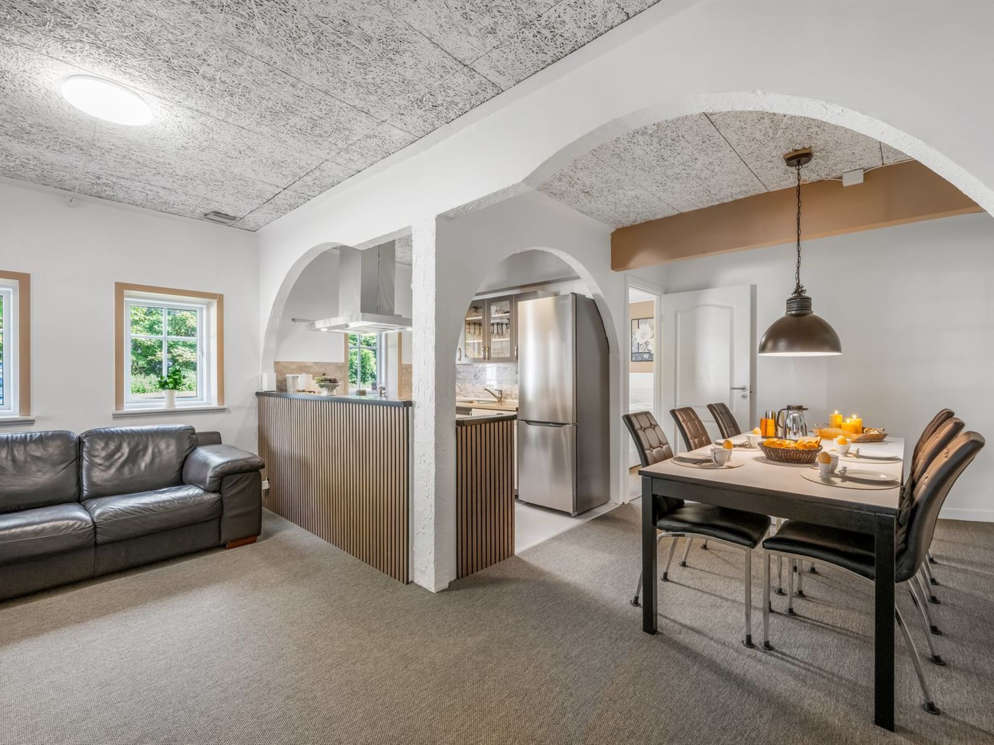 "Ødmar" - 4km to the fjord", 4-room apartment 310 m2. Object suitable for 9 adults + 1 child. Living room with TV. 1 room with 1 double bed. 1 room with 1 double bed. 1 room with 1 x 2 bunk beds. 1 room with 1 x 2 bunk beds. Kitchen (oven, dishwasher, 4 ceramic glass hob hotplates, microwave, freezer). 2 showers/WC. Facilities: children's high chair, baby cot. Internet (WiFi). Please note: non-smokers only. Maximum 2 pets/ dogs allowed. Bookings accepted for holiday purposes only. 573