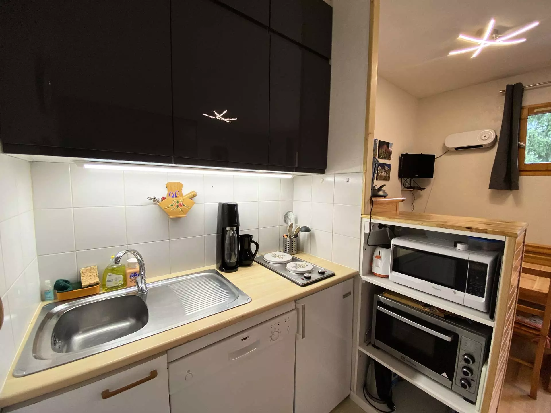 Ideal location: walking distance to skiing and the village - residence of 70 apartments of Val Blanc II with swimming pool in summer - cabin entrance with 2 bunk beds 80 - west-facing living room opening onto a large balcony (garden table and chairs). Murphy bed (140x190) in the living room - TV and small sitting area - fully equipped kitchenette (dishwasher, oven, microwave, refrigerator, hob), convivial dining area - bathroom - separate WC. Residence with elevator and swimming pool in summer*.