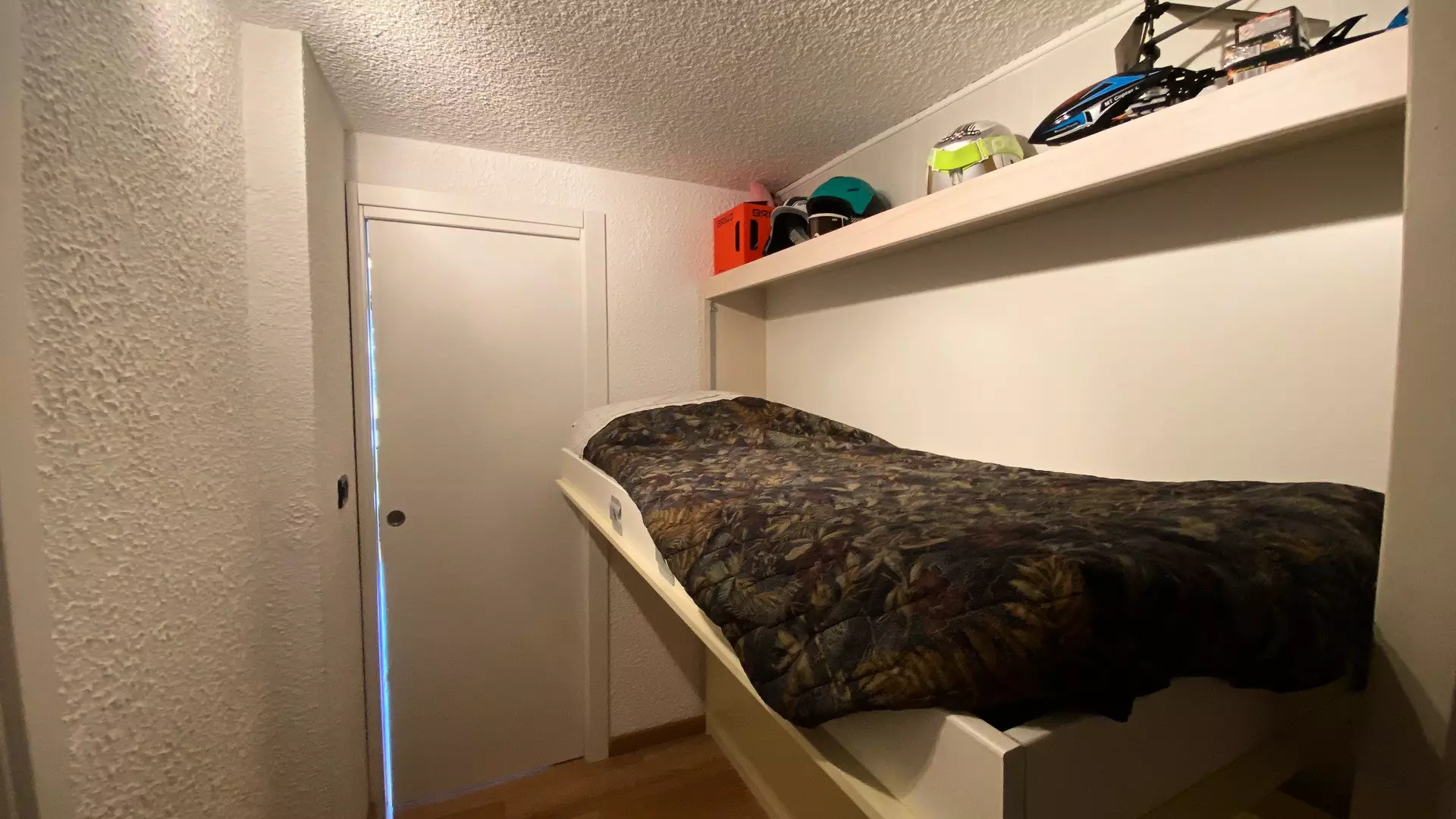 Mountain corner separated from the living room by a sliding door: 2 folding bunk beds for 1 person.