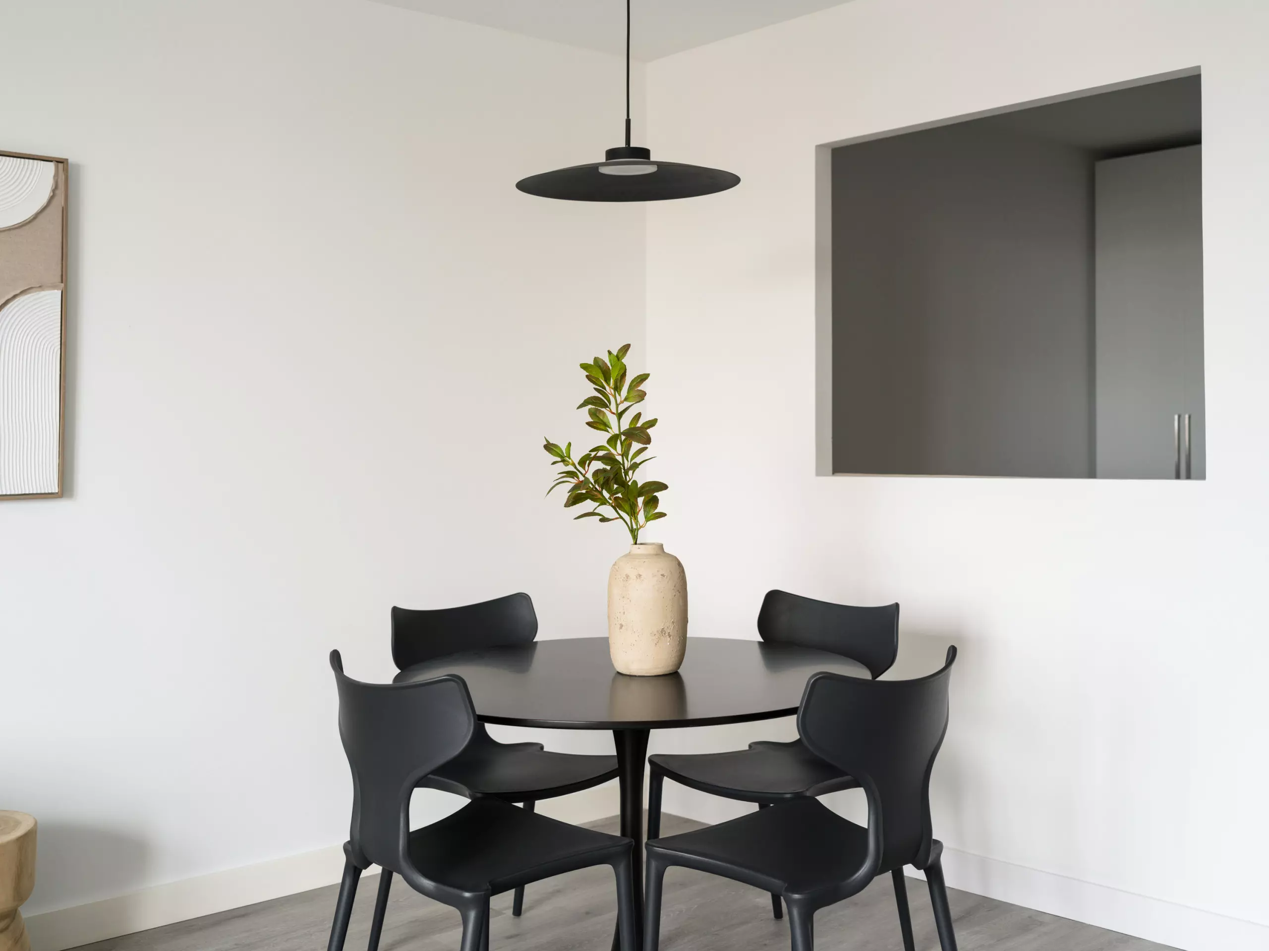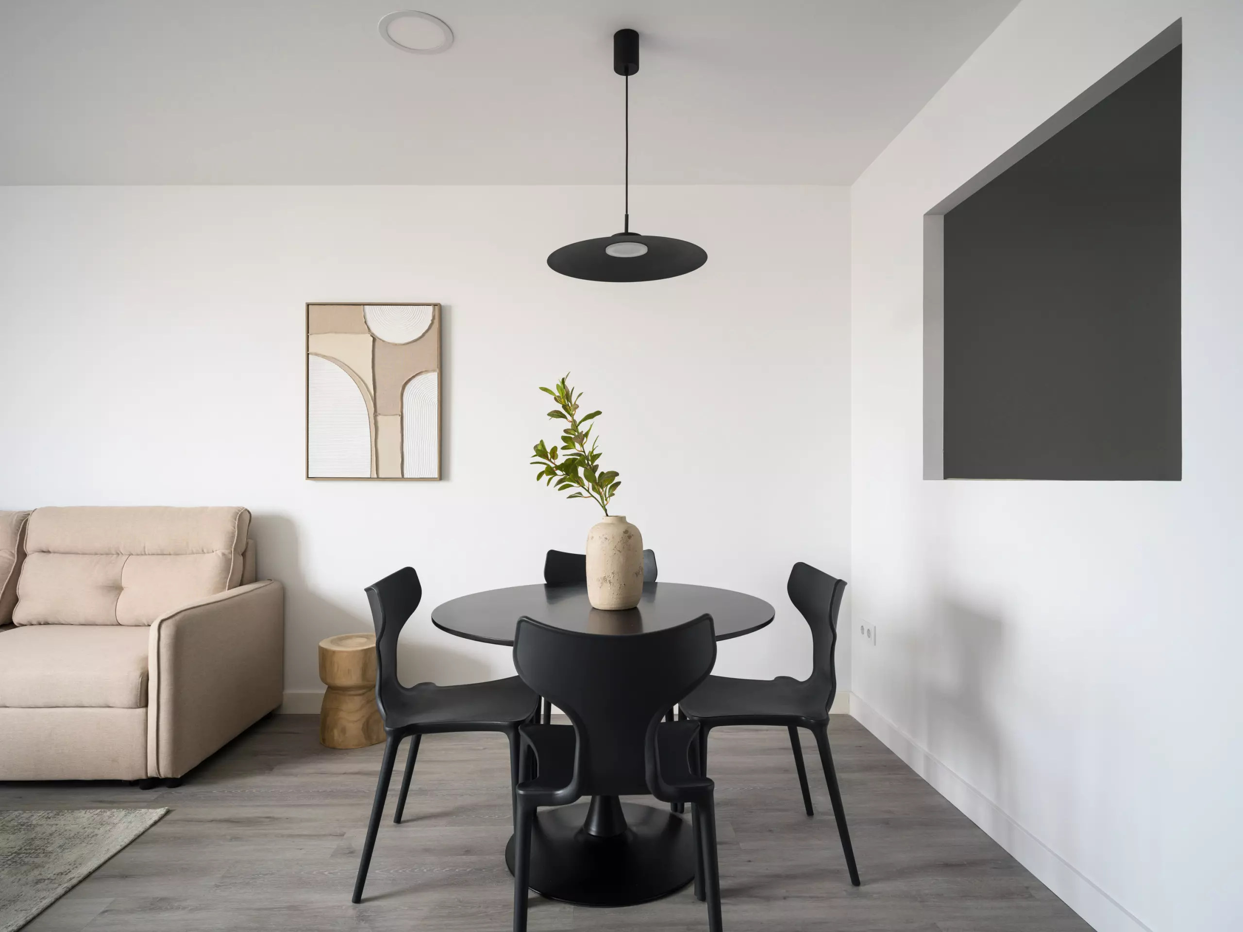 The open-plan kitchen is fully equipped with modern appliances, including a refrigerator, freezer, oven, microwave, toaster, and kettle. You'll find all the necessary kitchen utensils to prepare delicious meals during your stay. The dining area allows you to enjoy pleasant moments around the table.