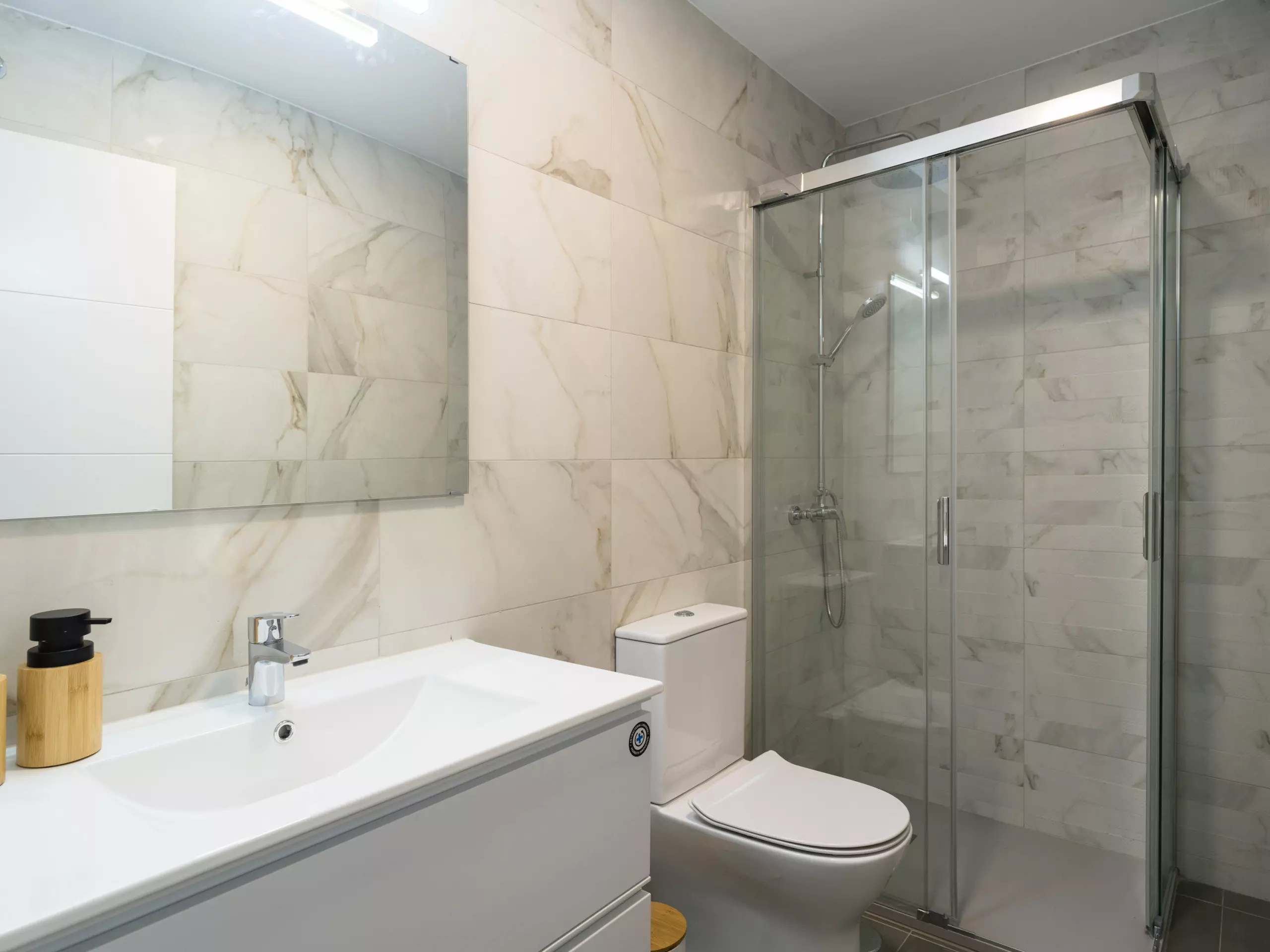 The private bathroom features a shower and water-efficient features. The property also includes details such as an ironing area, built-in wardrobes, and careful decoration that give the space a special touch.