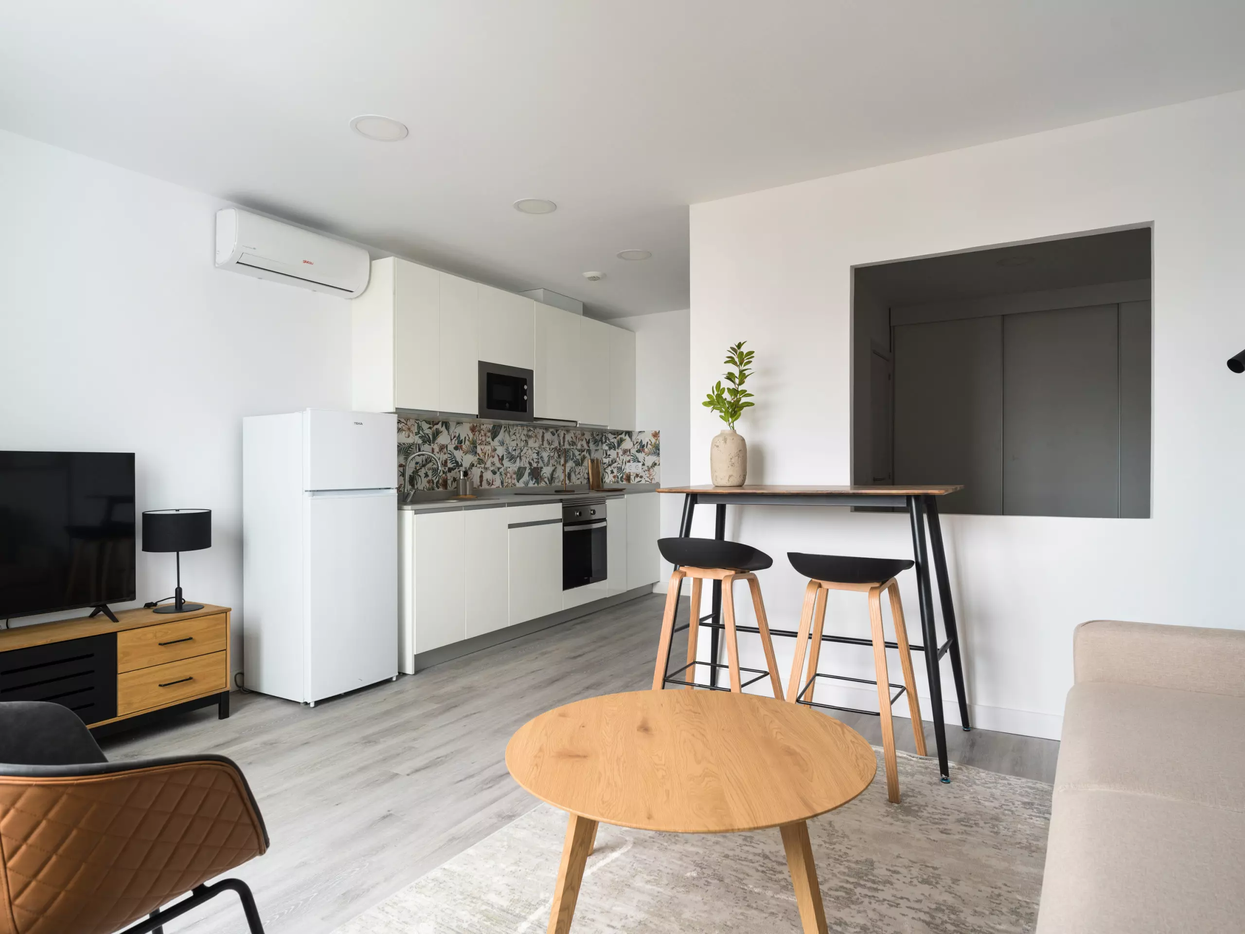 The apartment features air conditioning and a heat pump heating system, allowing you to individually regulate the temperature and ensuring maximum comfort at any time of year. It also has high-speed Wi-Fi, ideal for teleworking or staying connected, as well as a desk with a work chair.