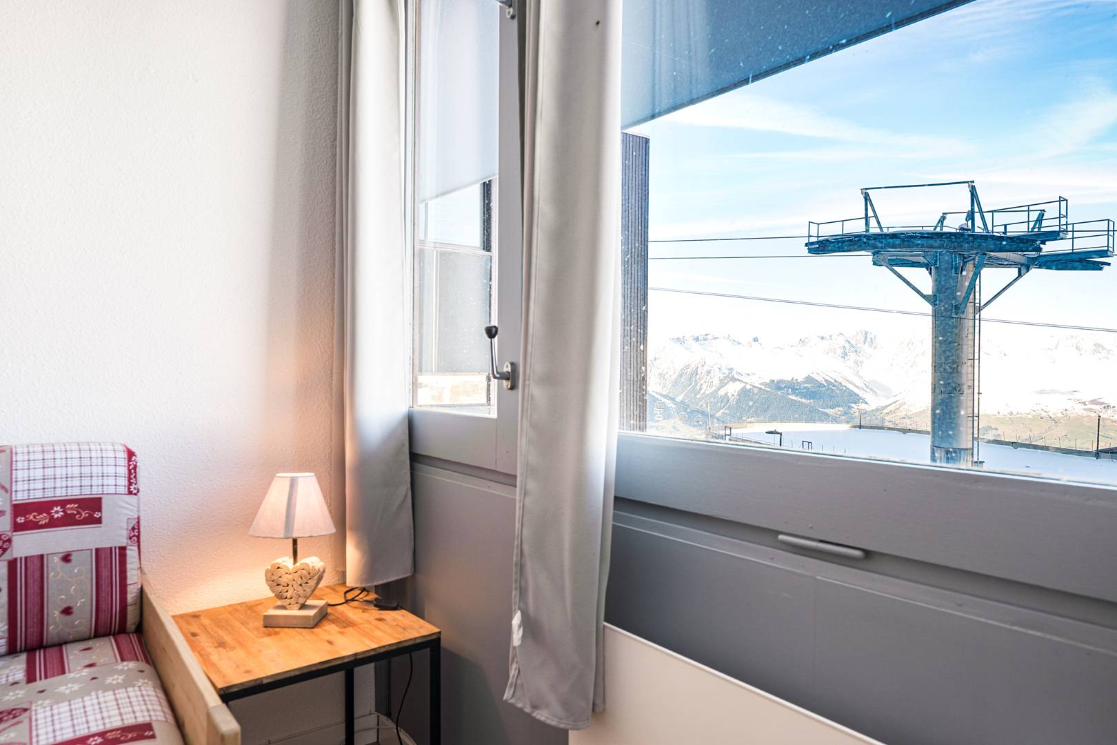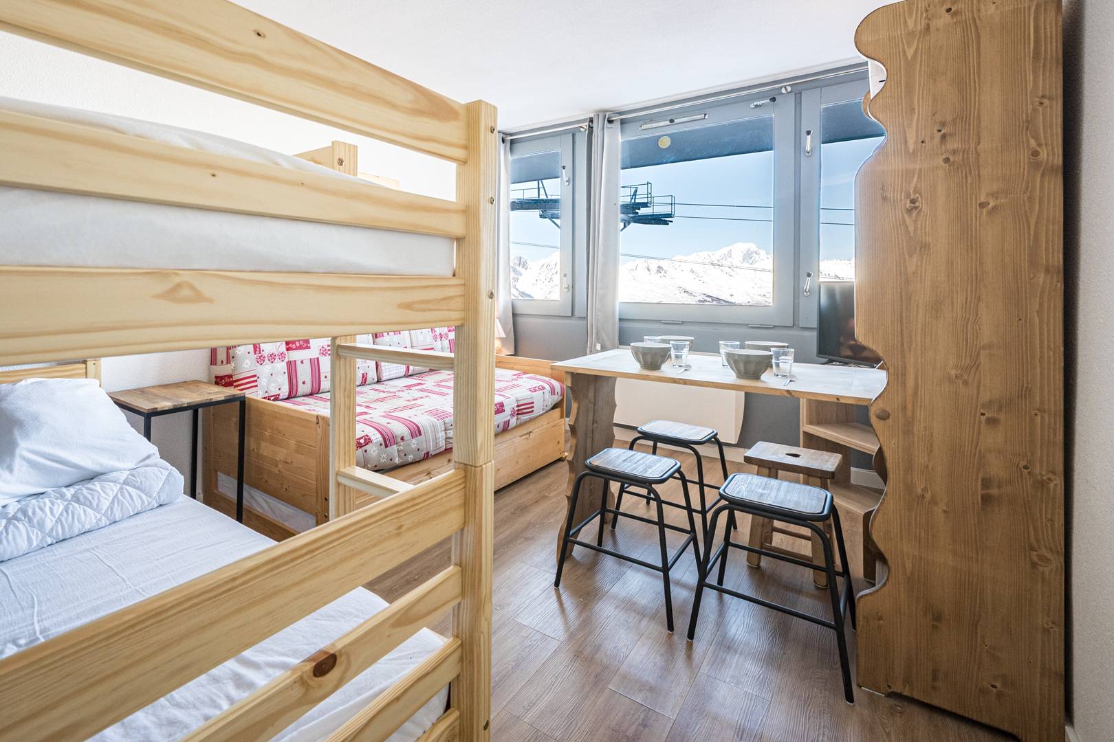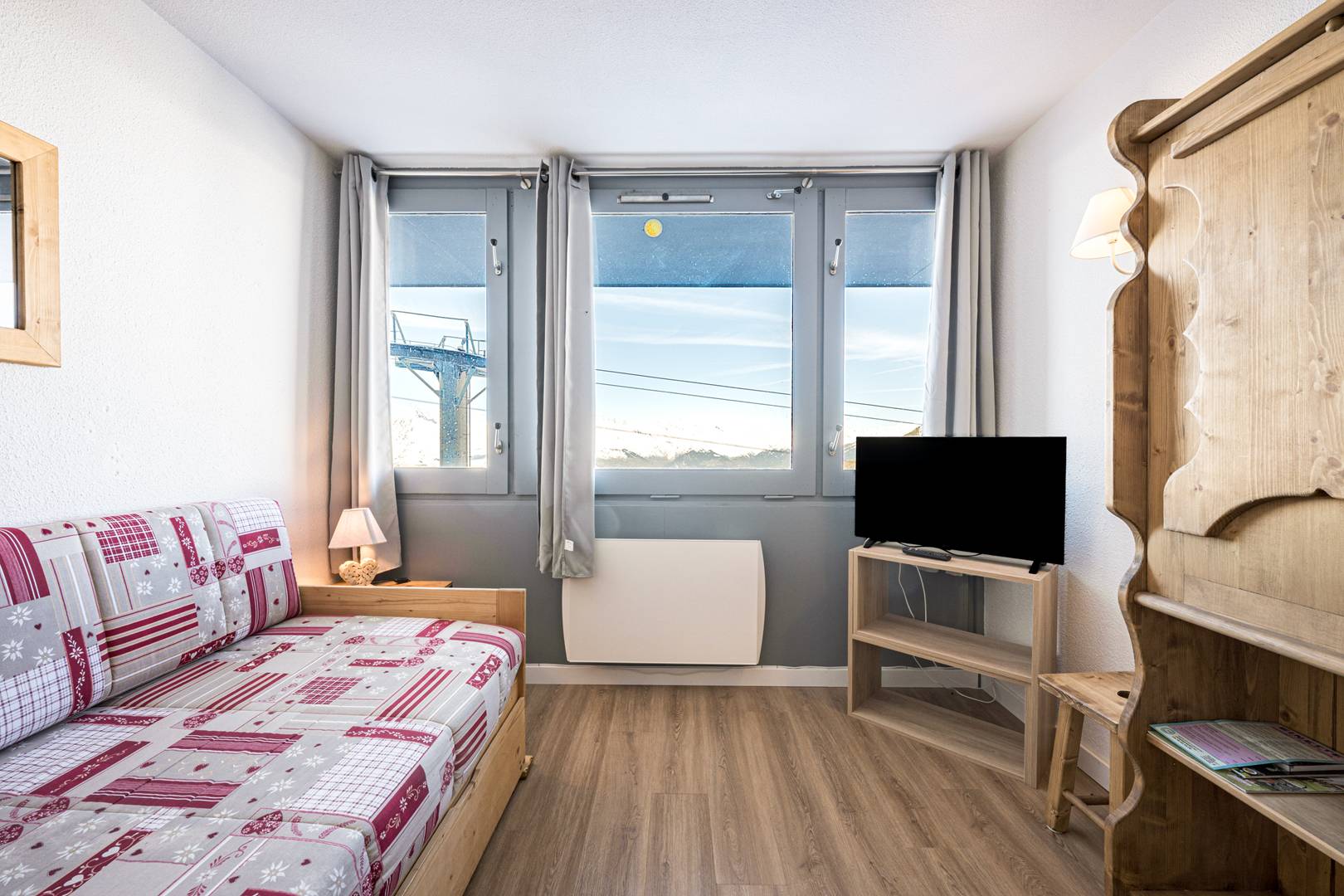Charming, tastefully decorated studio with breathtaking views of Mont Blanc and the Tarentaise Valley. Ideally located in the heart of La Plagne Aime 2000, this ski-in/ski-out residence features direct access to the slopes and a convenient shopping gallery.