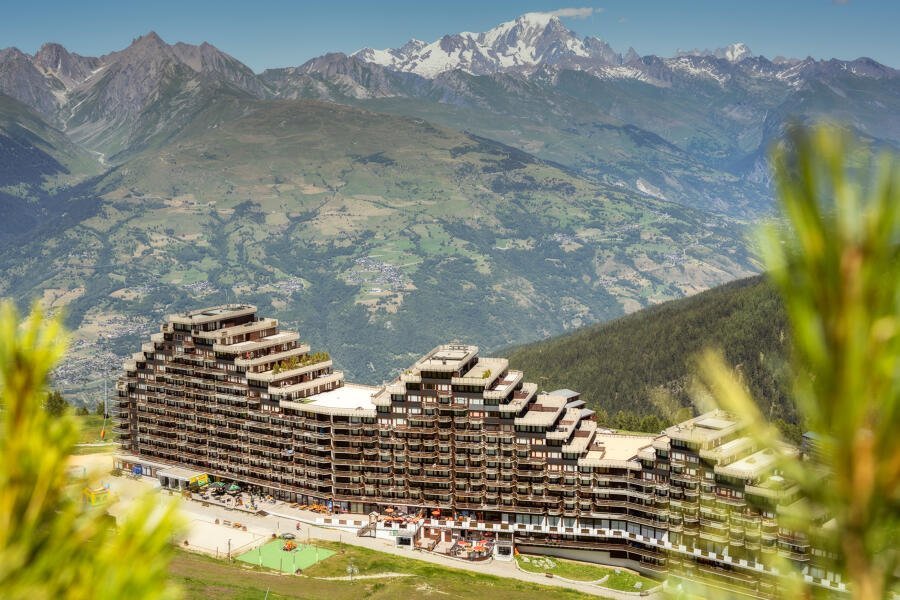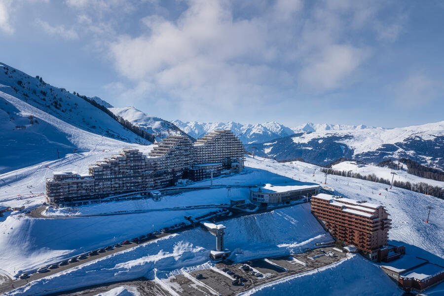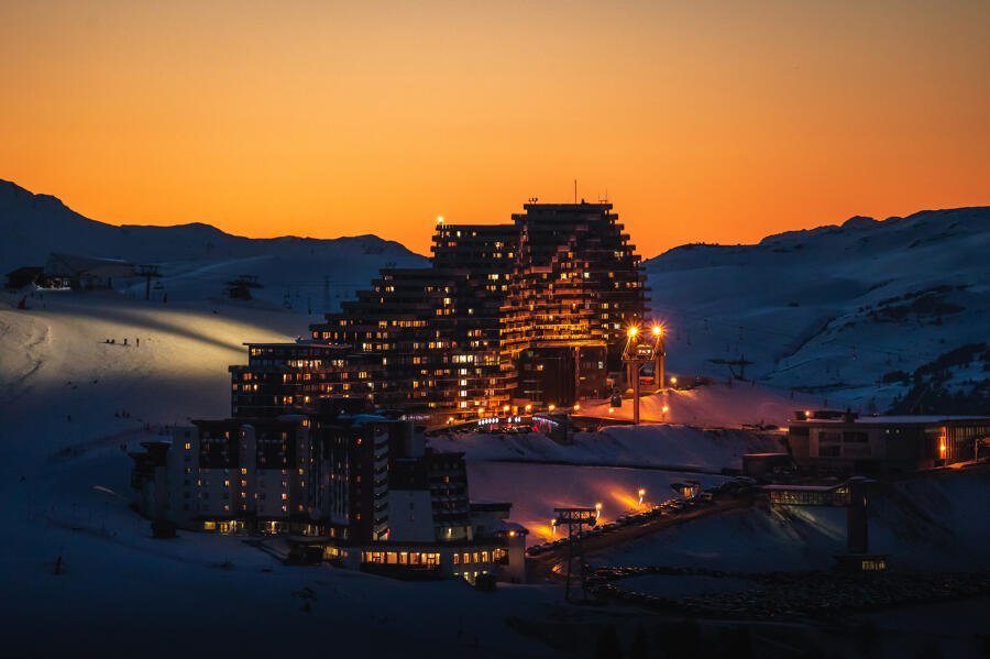 Facing Mont Blanc and fully immersed in a stunning mountain environment, the “Snow Liner” invites you to a scenic journey framed by breathtaking sunsets. Everything is within easy reach: ski-in/ski-out access, shops accessible via the indoor gallery. Perfect for a family holiday where everyone can find something to enjoy. Plagne Centre is easily reachable within minutes via the free Télémétro cable car.