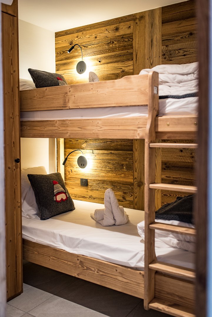 The second bedroom has a double bed (160 x 200 cm). A sleeping area with bunk beds (the top bunk is not suitable for children under 6 years old) completes the accommodation. A shower room and separate toilet complete this apartment.