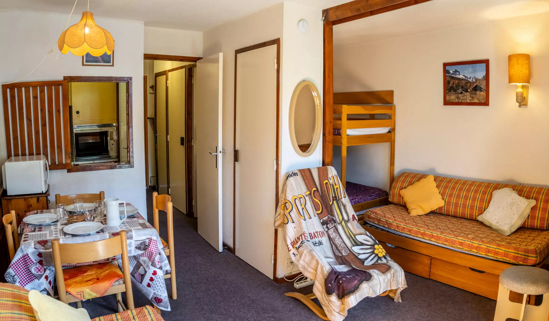 This studio cabin boasts a generous 30m² of space and can accommodate up to 4 people. It offers a magnificent view of the mountains from its sunny balcony located on the 7th floor of the residence, where you can already imagine yourself reading a book or having a coffee.