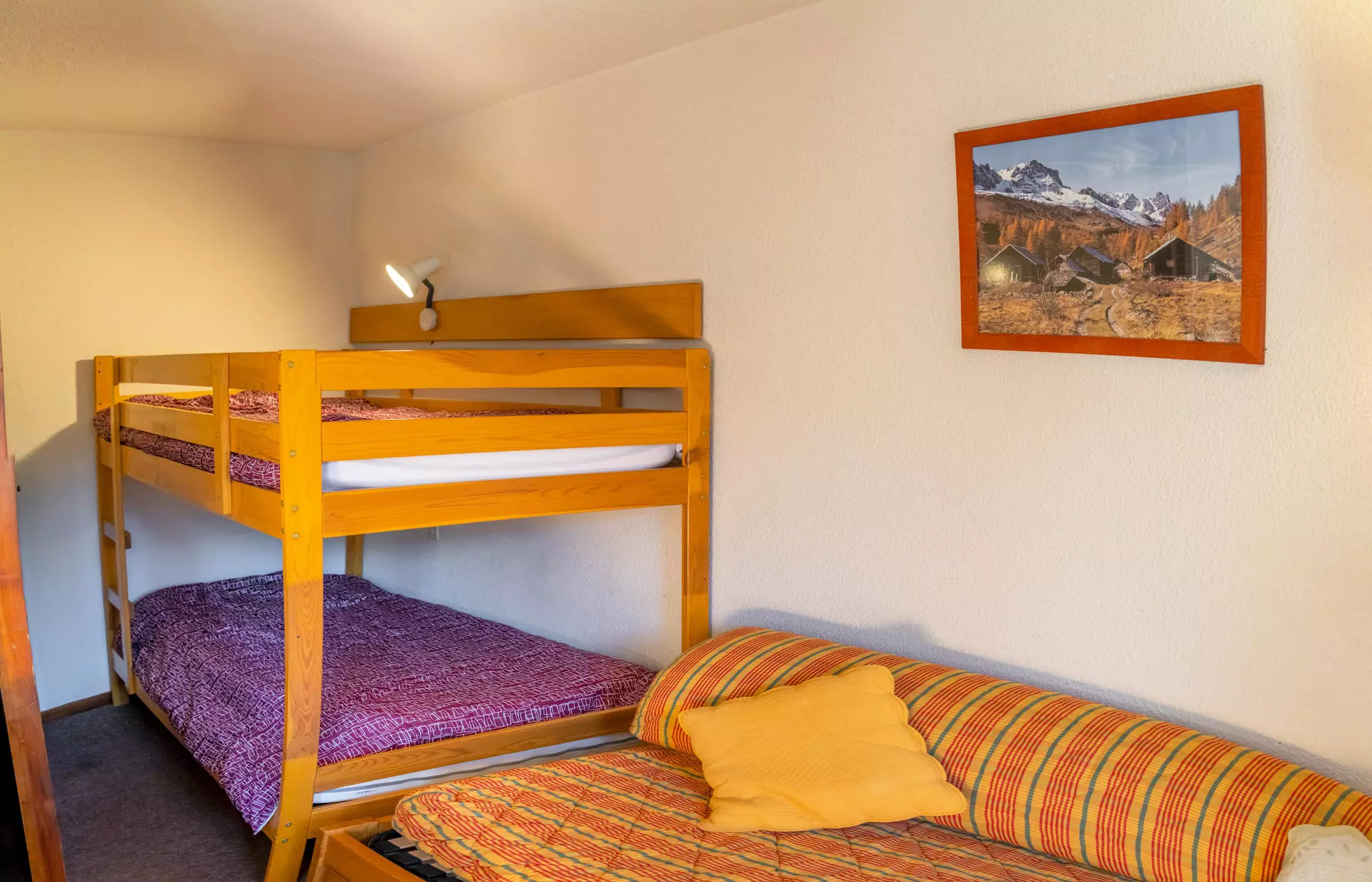 For sleeping, you can choose between a 2-person pull-out sofa bed (2x80*190cm), a 1-person bench (80*190cm) or 80*190cm bunk beds.
