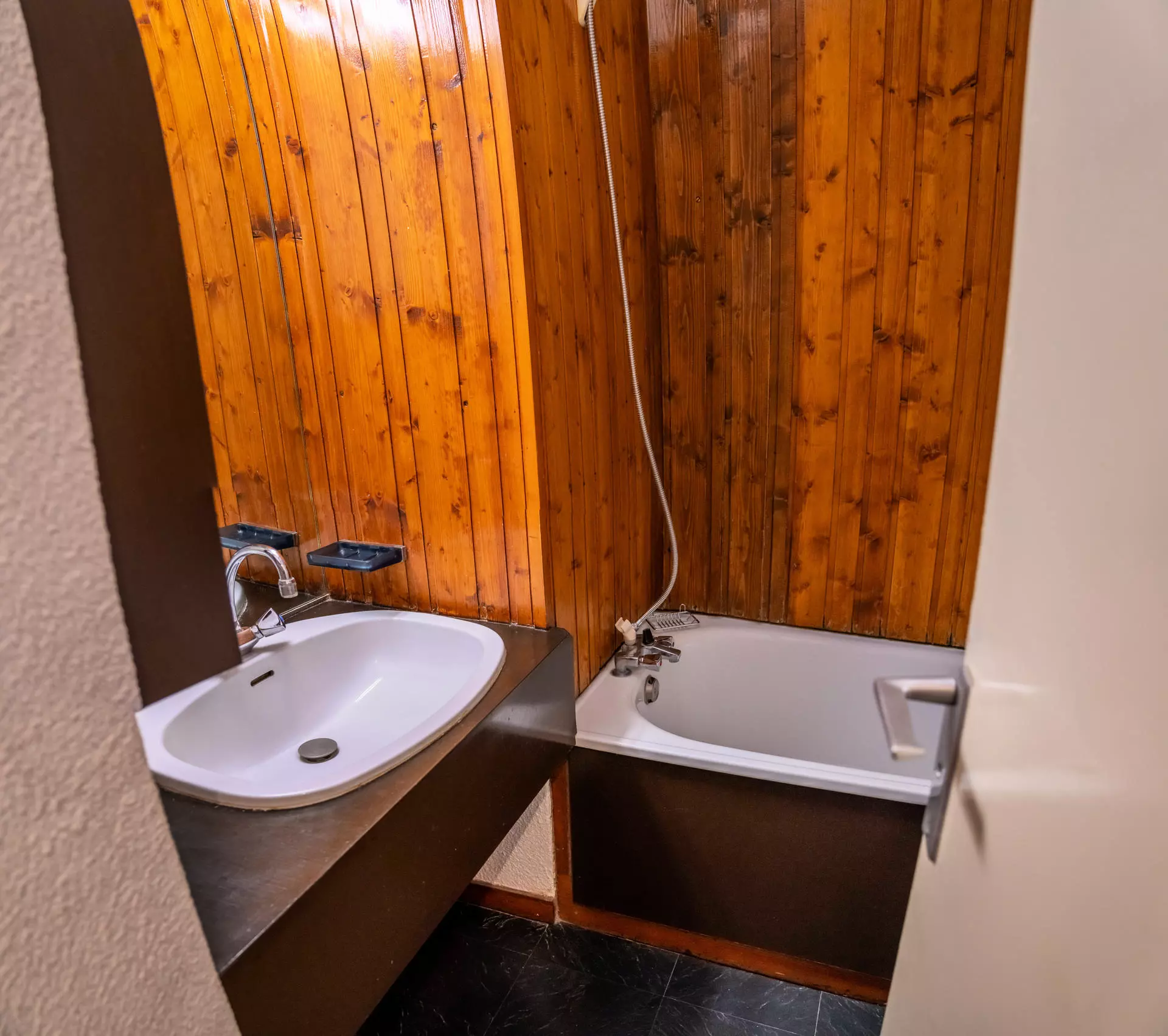 The bathroom has a bathtub, for a relaxing moment after your favorite activities.