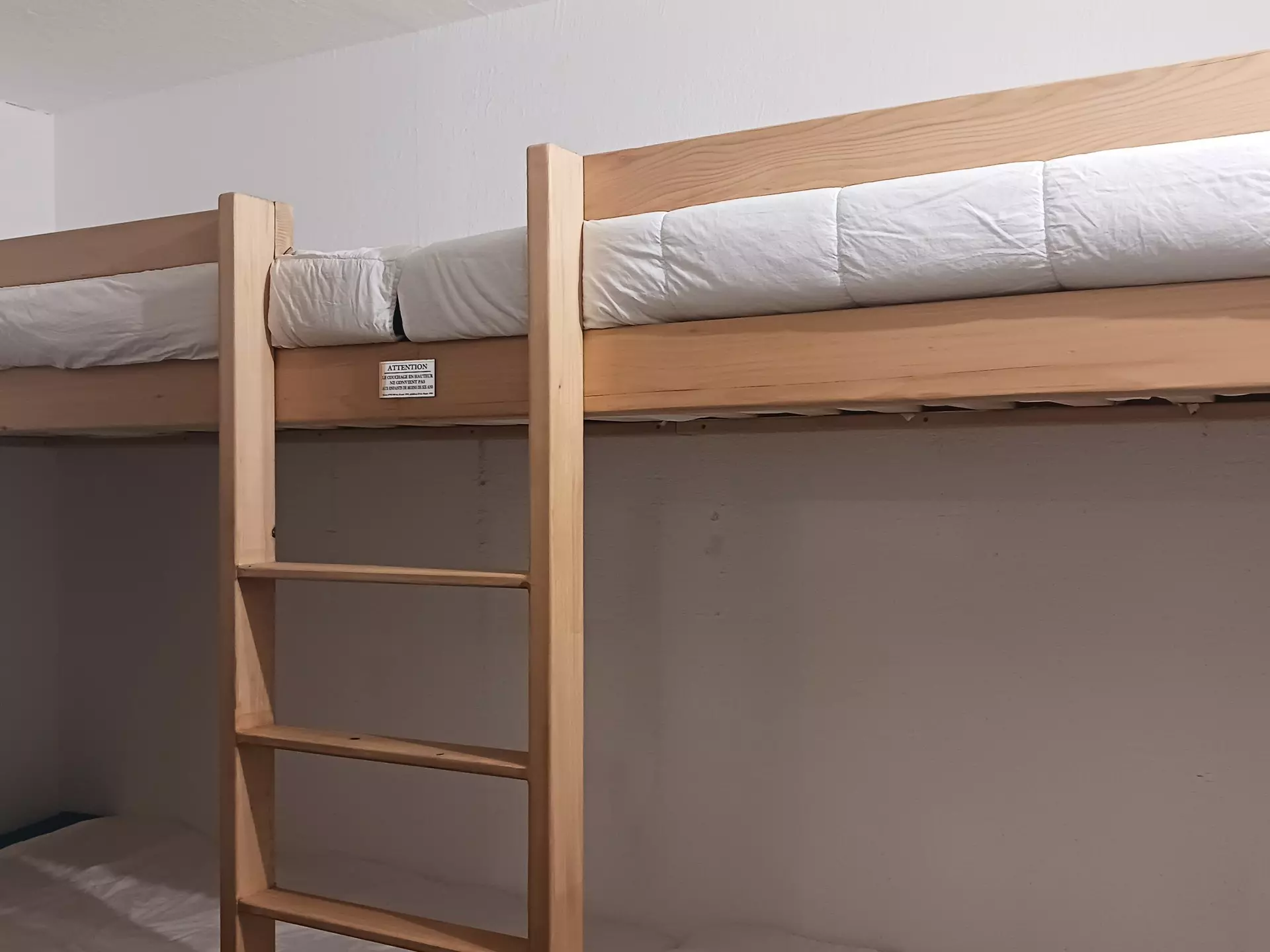 A mountain corner closed by a sliding door with a set of bunk beds (4x1 person 80x190).