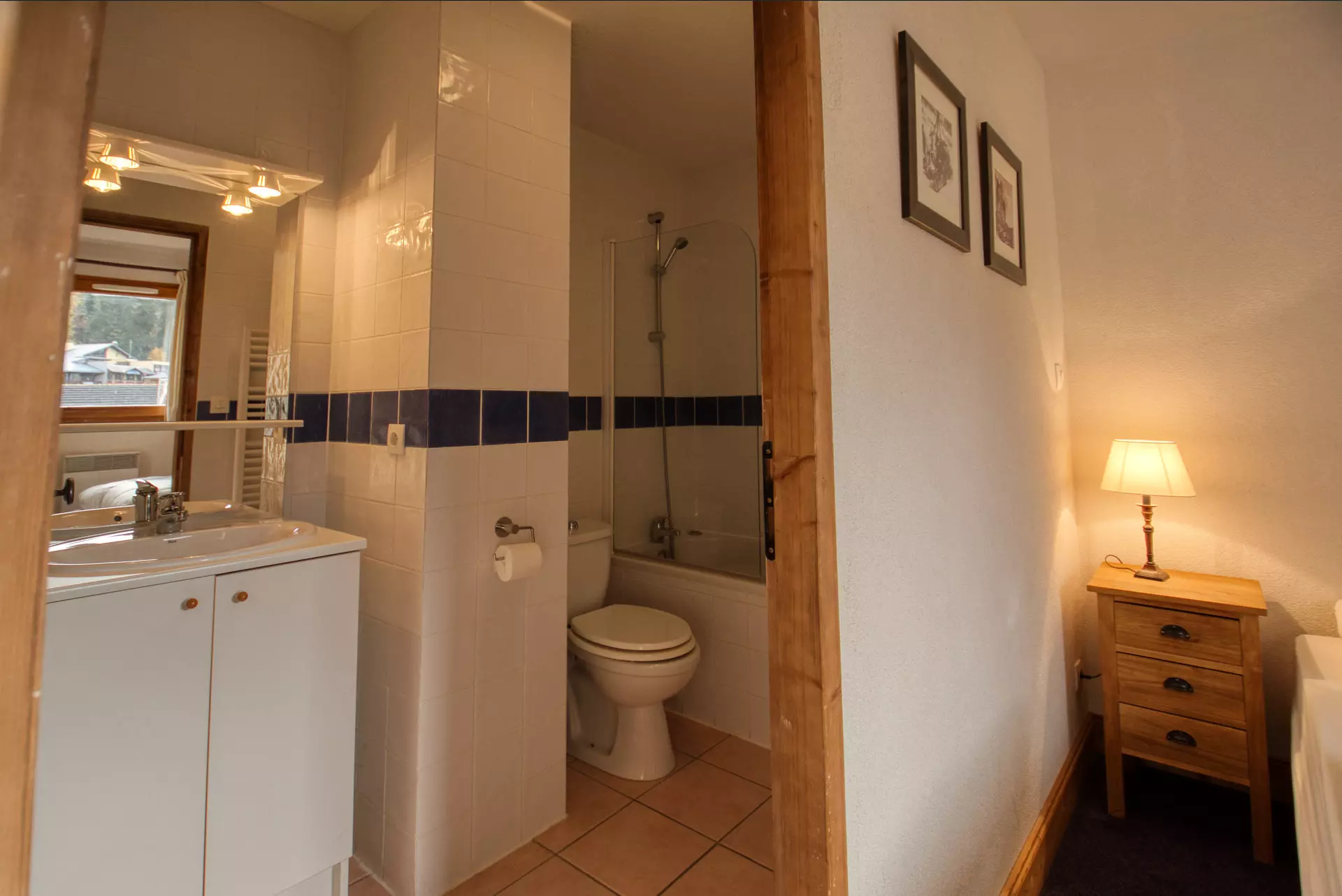 Upstairs, you will discover a second bedroom en suite with bathroom (bathtub and toilet), a third bedroom with TV en suite with bathroom. In addition, a separate toilet is available for added convenience.