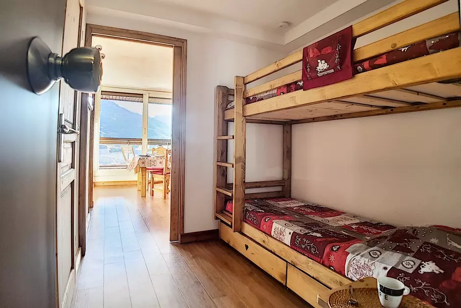 Mountain corner (in the entrance separated from the living room by a sliding door): 2 single bunk beds.