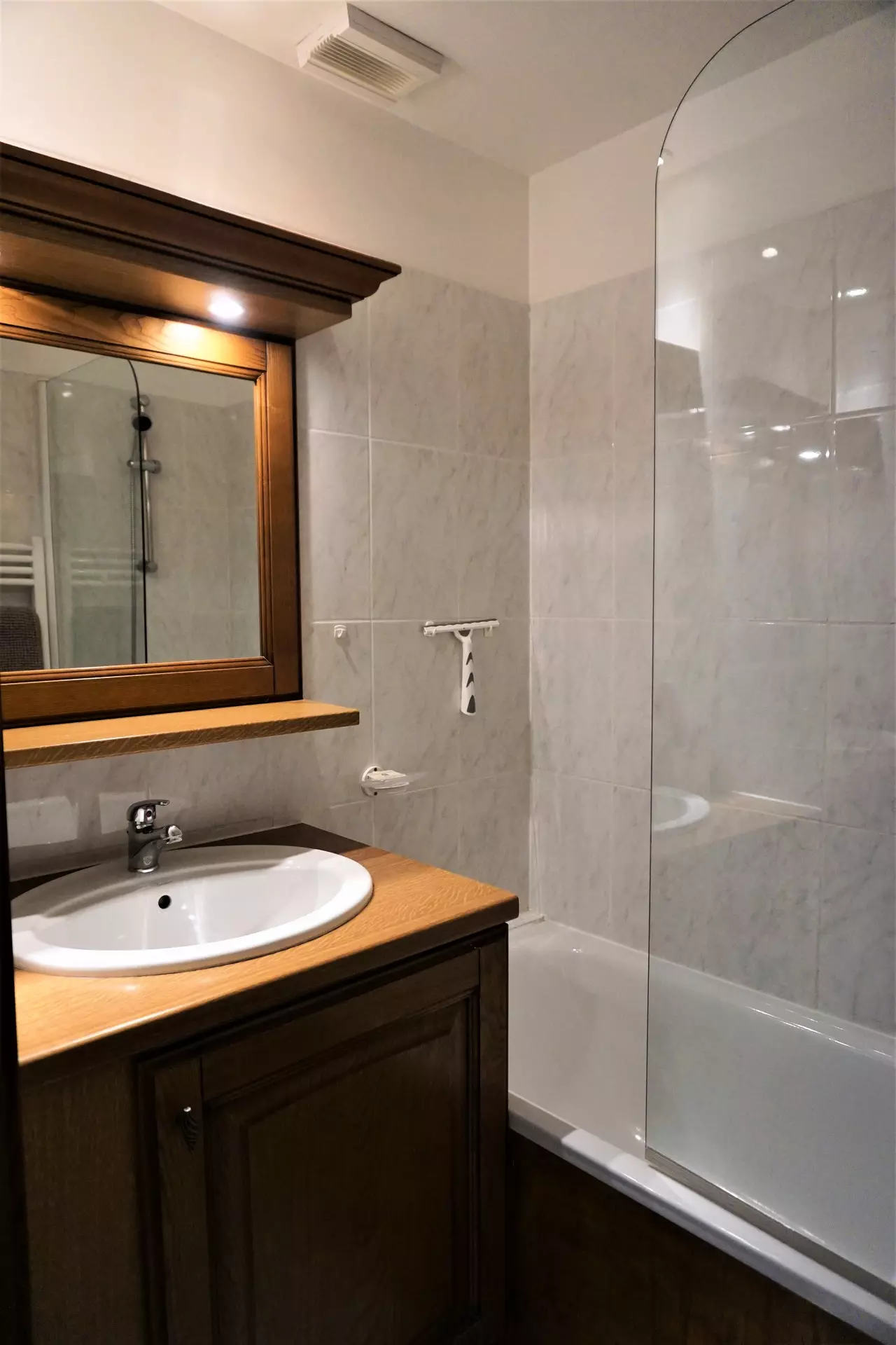 Bathroom: bathtub, electric towel dryer. Separate WC.