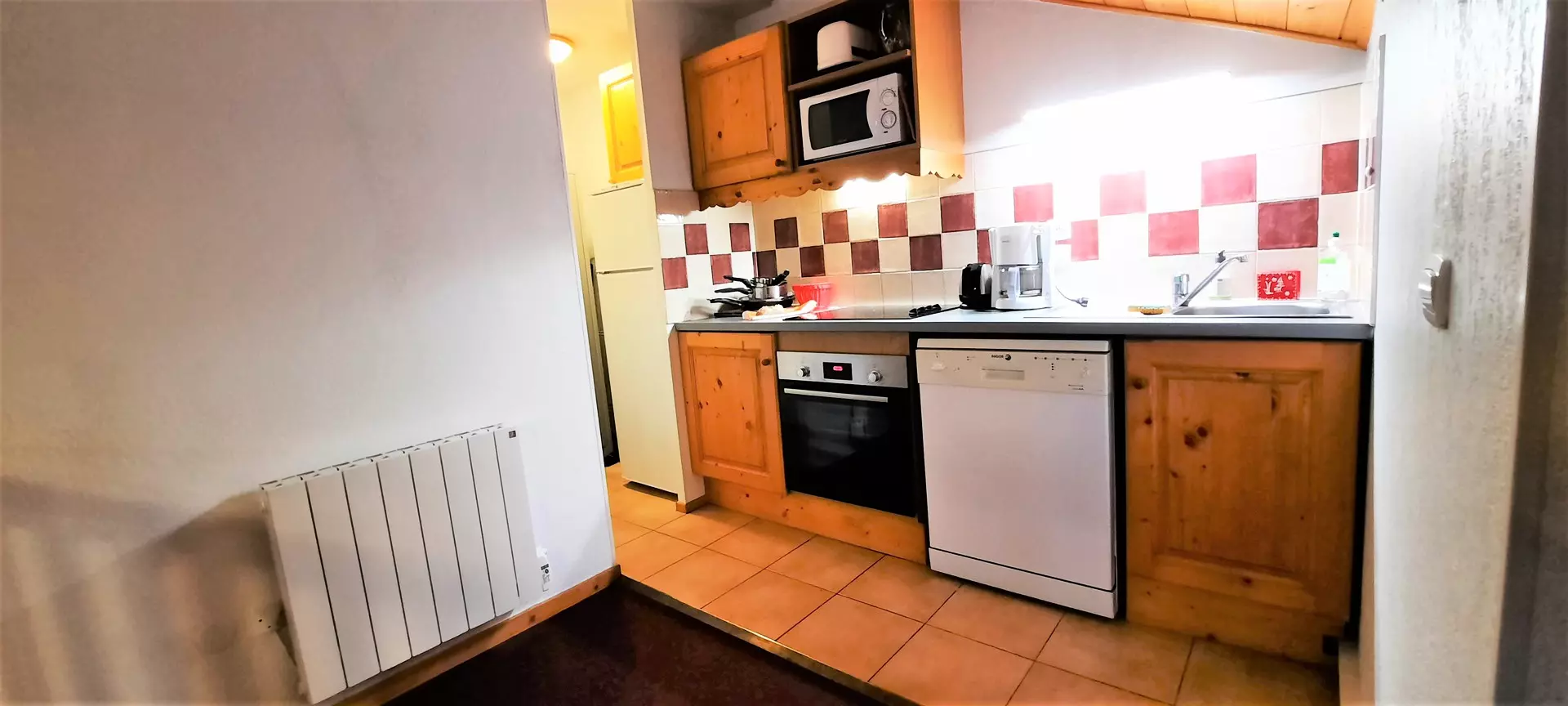 In a quality residence with elevator and laundry, located near the snow garden, 200 m from the escalator and 350 m from the shops and slopes.