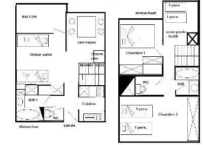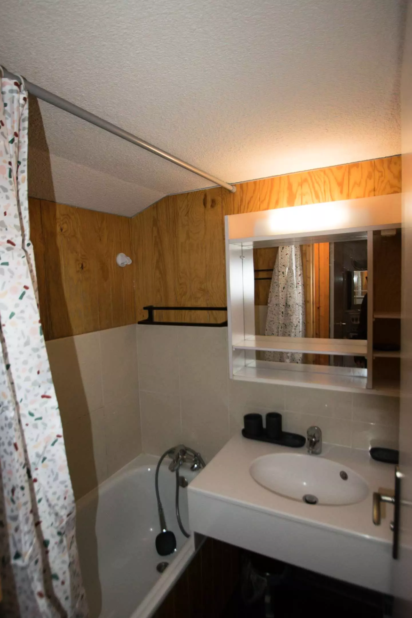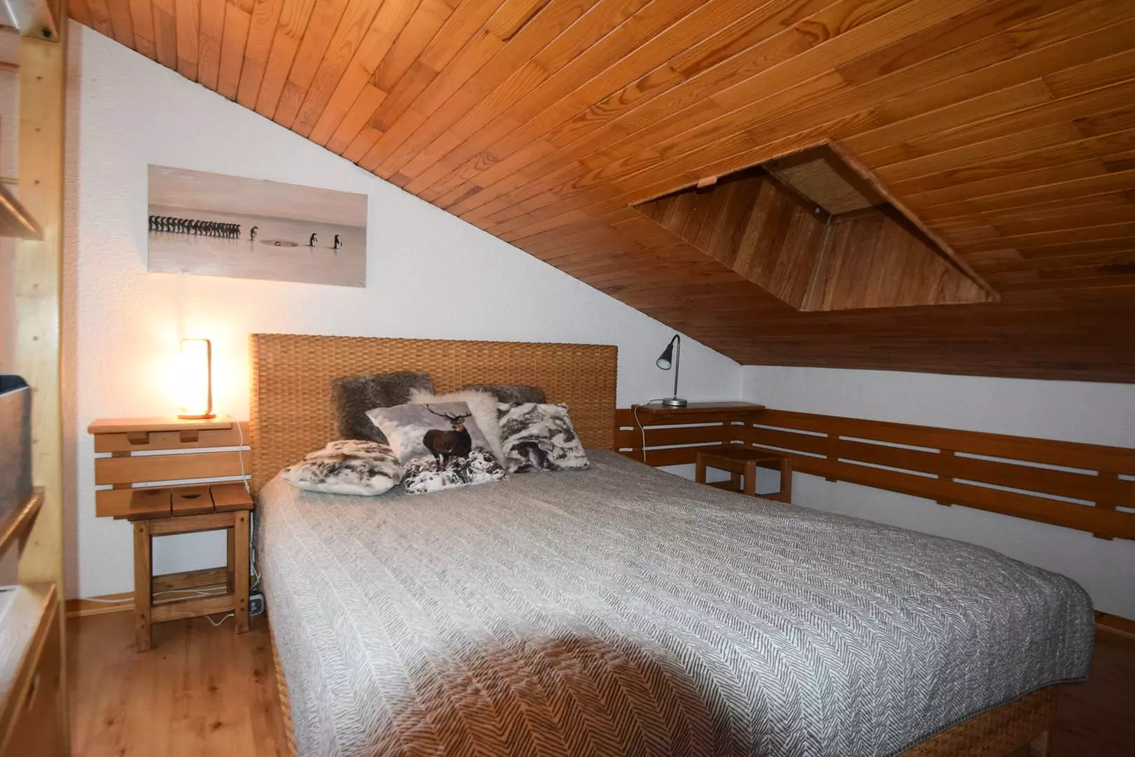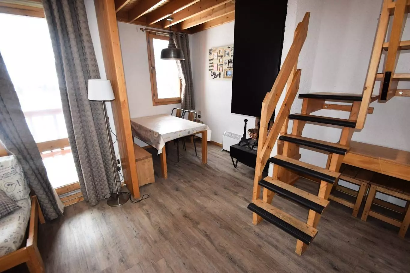 3-room apartment - 6/7 people, 50 m2, 3rd floor with elevator, balcony, South/West exposure, view of the slopes - Entrance 3 - Kitchen: 2 electric hotplates, oven, microwave, refrigerator, dishwasher, classic coffee maker - Living room: dining area, 2 single sofa beds - TV - 2nd level: Bedroom 1: 1 double bed 160cm - Bedroom 2: 2 single beds - Mezzanine at the top of the stairs: 1 single bed - 2 bathrooms: bathtub - 2 separate toilets - Floors: PVC and carpet - Bedding: 5 single duvets and 1 double duvet - Ski locker: n° 47 on the ground floor - Duplex apartment, with magnificent views of the slopes and the mountain - Cleaning, sheets, towels and ski passes optional. The residence: composed of 3 floors, AT THE FOOT OF THE SLOPES, quiet, approximately 700m from the shops: connected by free shuttle buses - Free outdoor parking nearby
