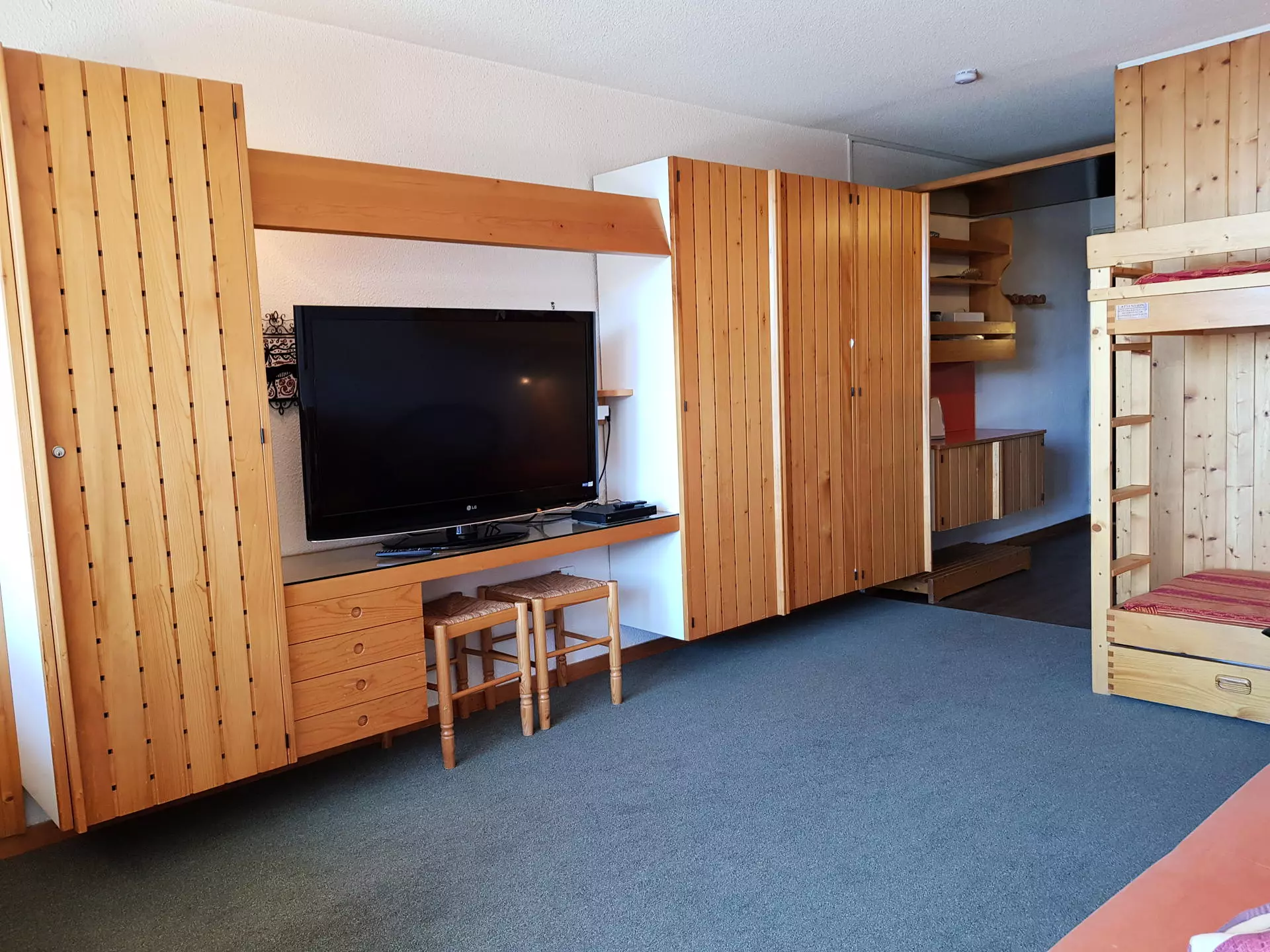 In the living room there is a sofa bed for 2 people (160x190) as well as a set of 2 bunk beds (80x190).