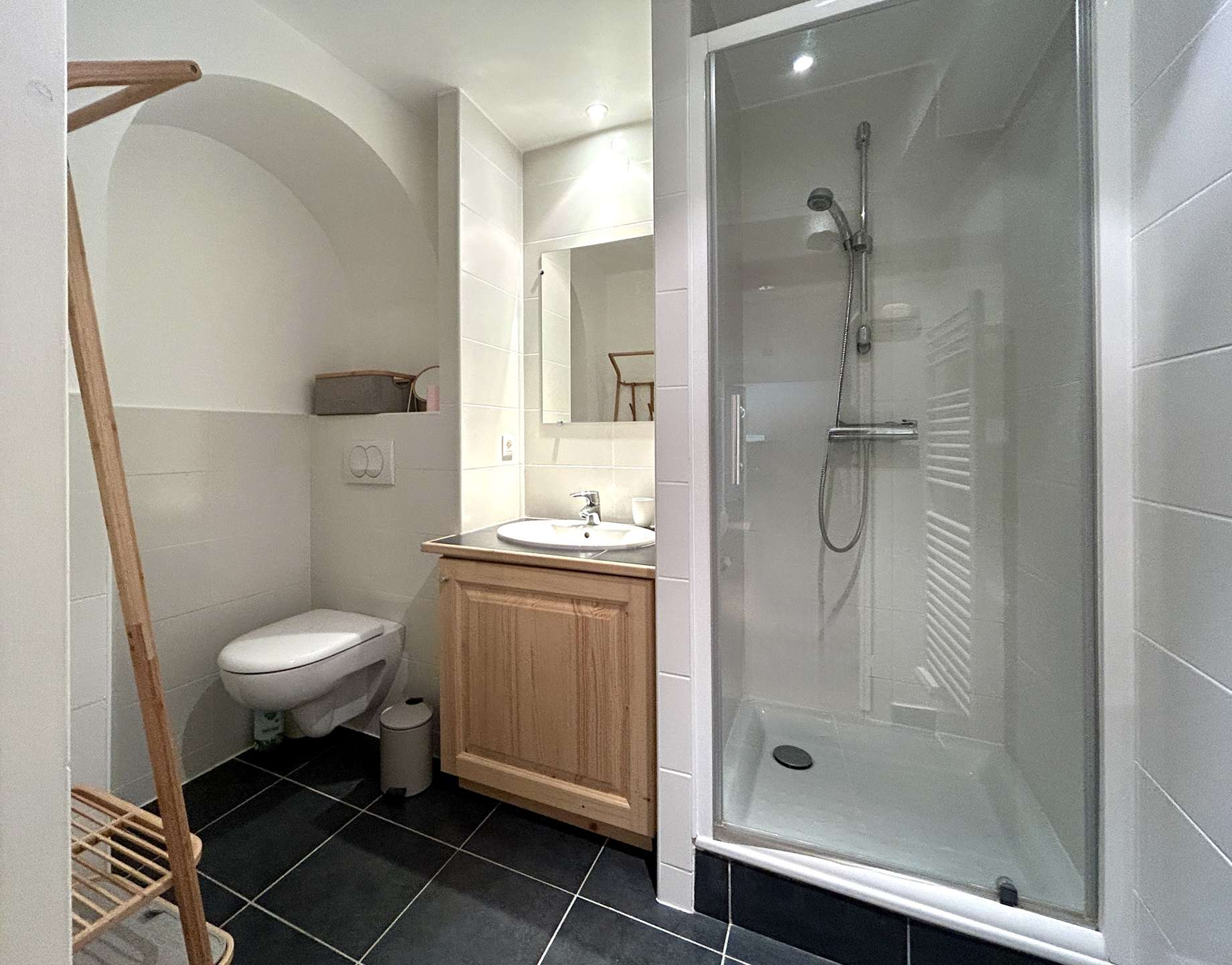 This very pretty four-room apartment includes: a bedroom with a 160cm double bed, a second bedroom with a 160cm double bed, a third bedroom with 2 single beds that can be made into a double bed, a living room with television opening onto a beautiful terrace and a large garden, an open and equipped kitchen, a bathroom with washing machine and a separate toilet, a shower room with toilet.