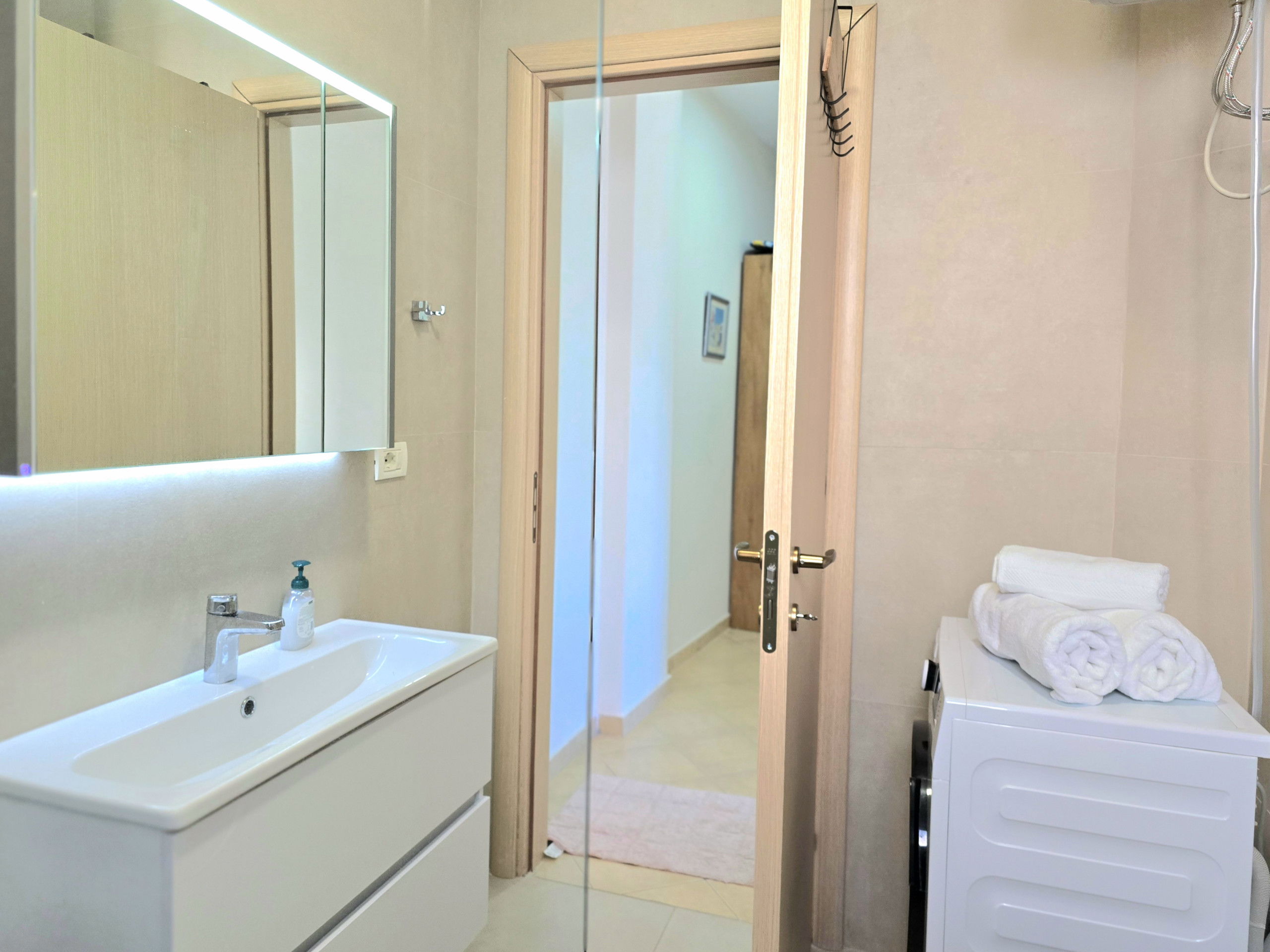The accommodation is equipped with the following items: garden, garden furniture, washing machine, iron, internet (Wi-Fi), hair dryer, balcony, heat pump, air conditioning throughout the house, open-air parking in near the building, 1 TV.