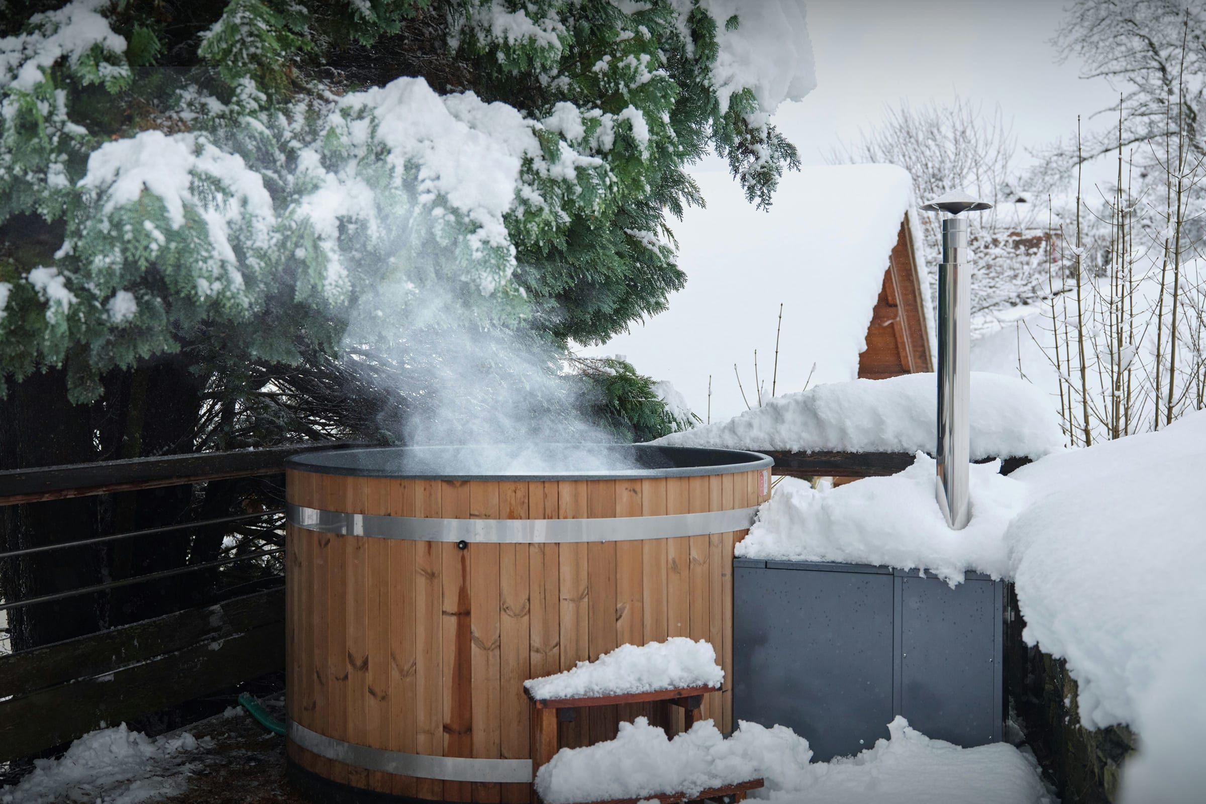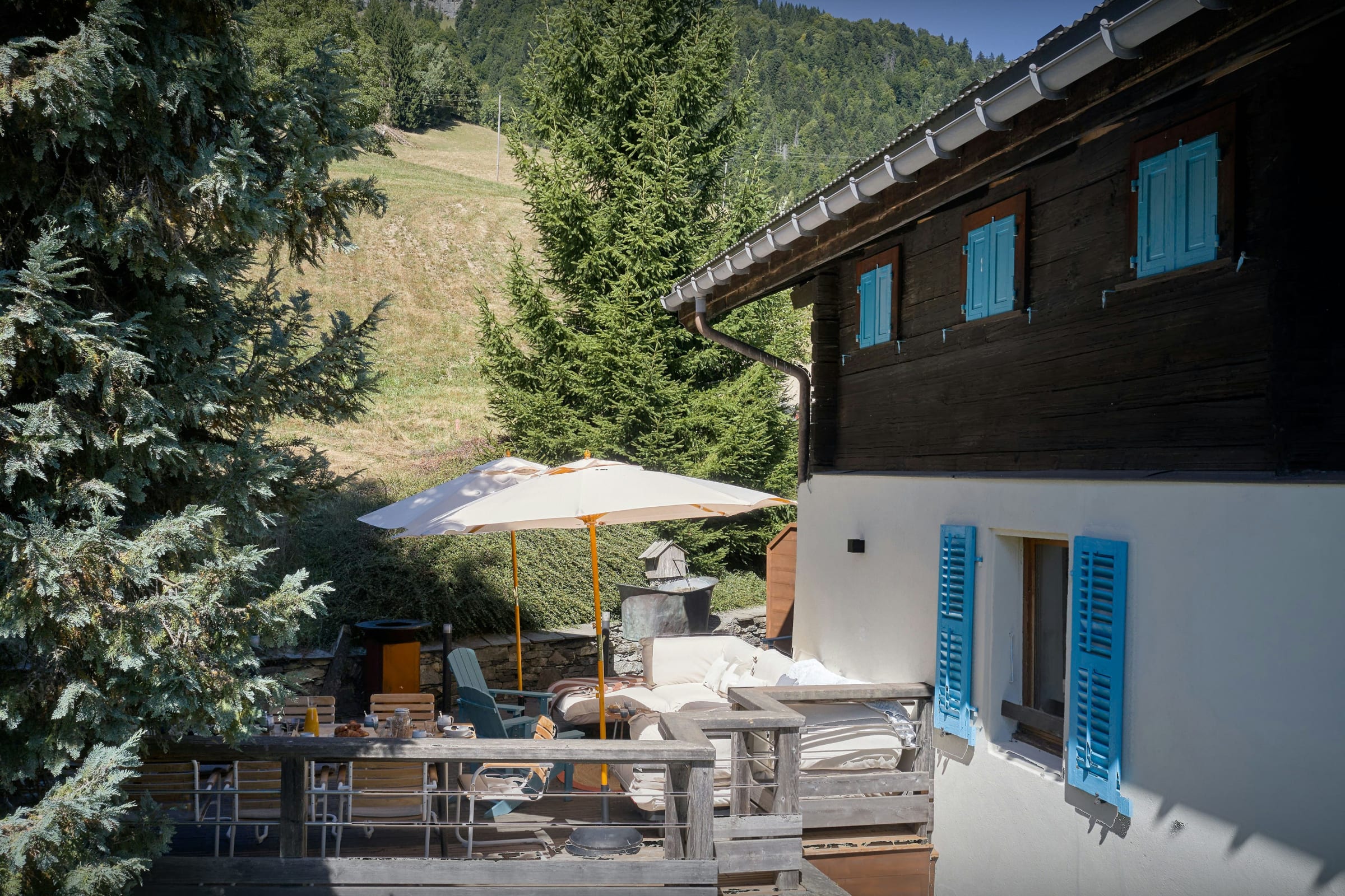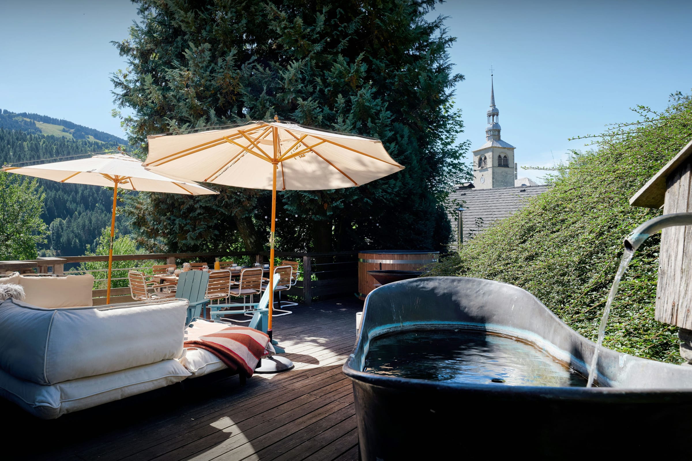 The large furnished terrace is the perfect place to enjoy life in the mountains, with a sofa, sun beds and a dining table, all with a magnificent view. There’s also a Nordic bath and a small sloping garden.