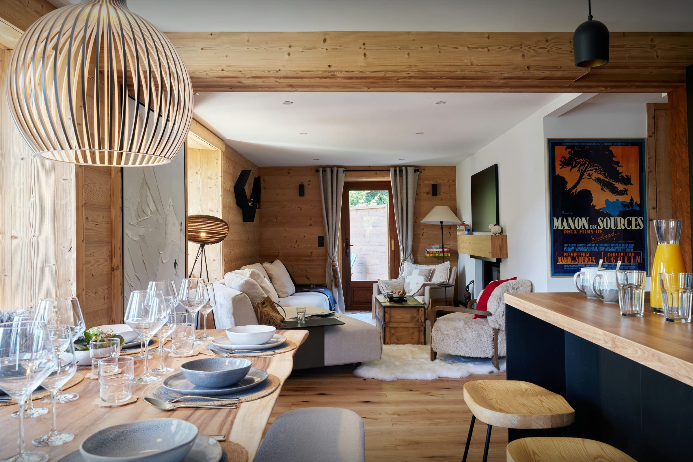 Chalet Belle Source A is a recently renovated, single-level apartment for up to eight guests, with three bedrooms and two bathrooms. Every detail has been designed to combine comfort and authentic mountain style.