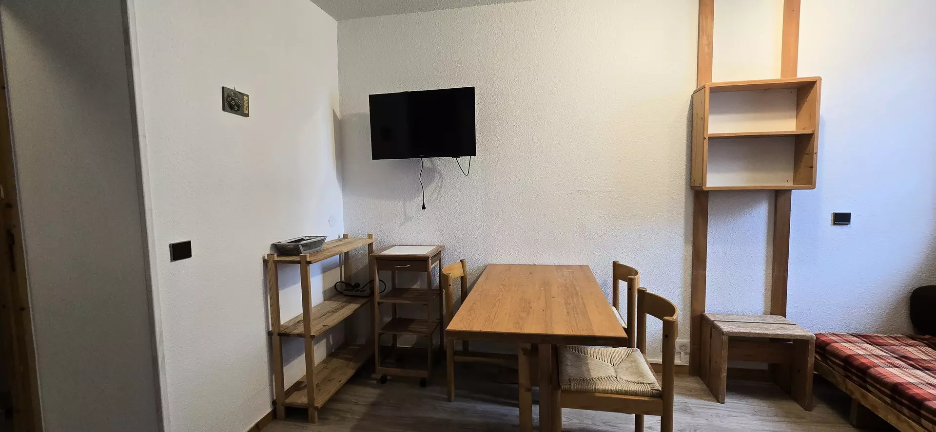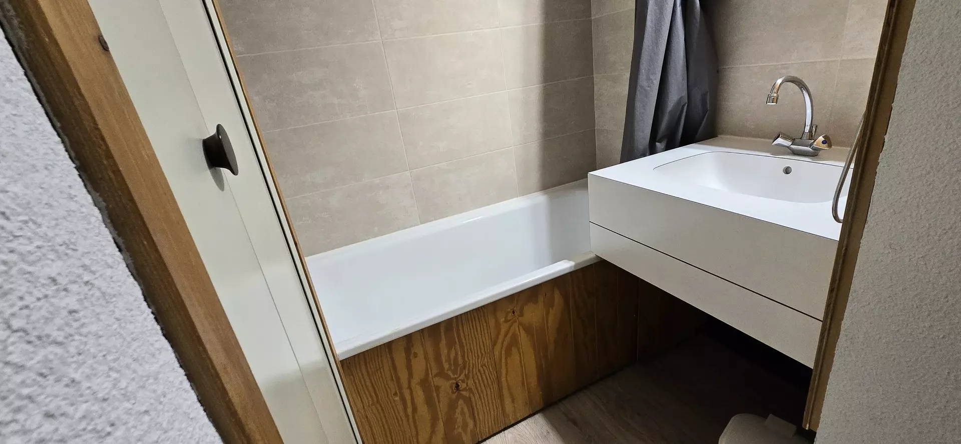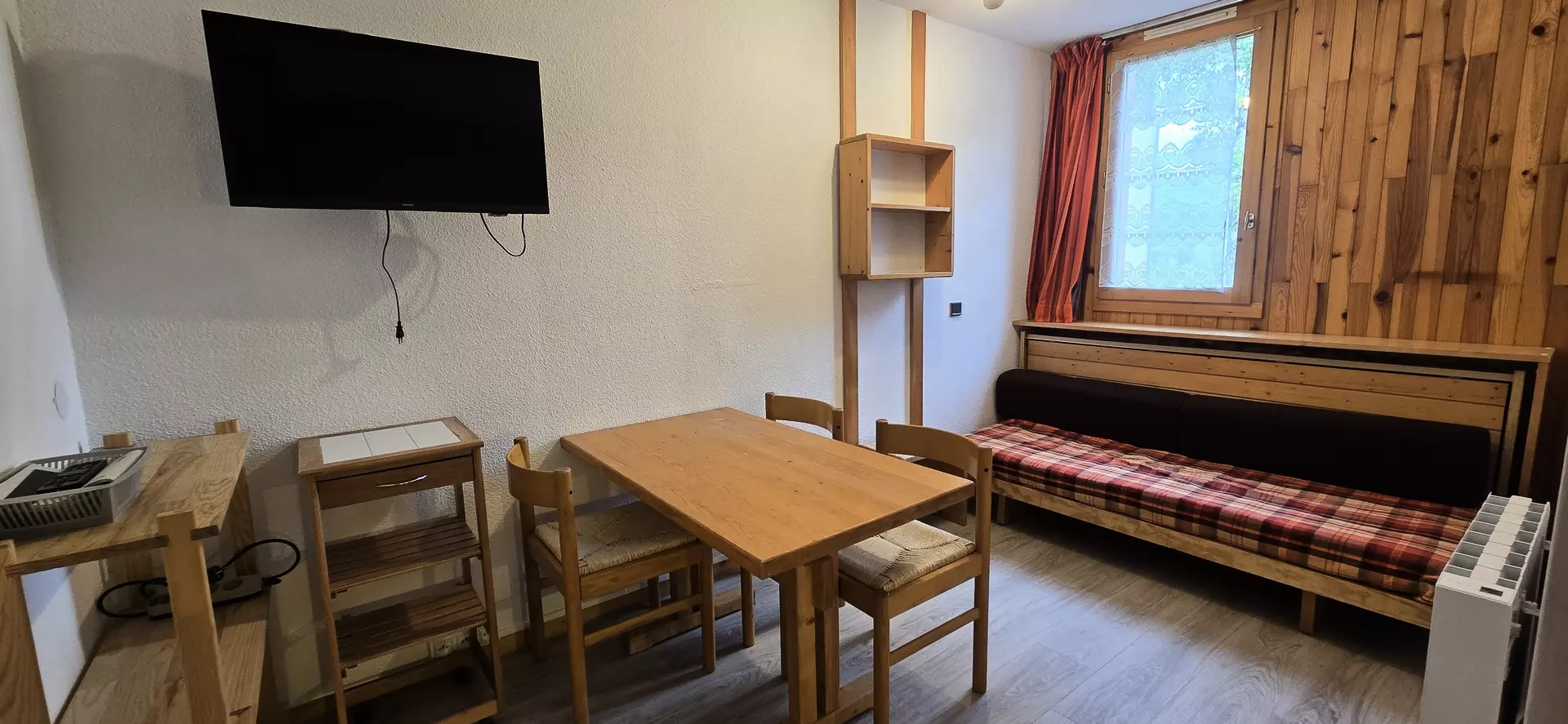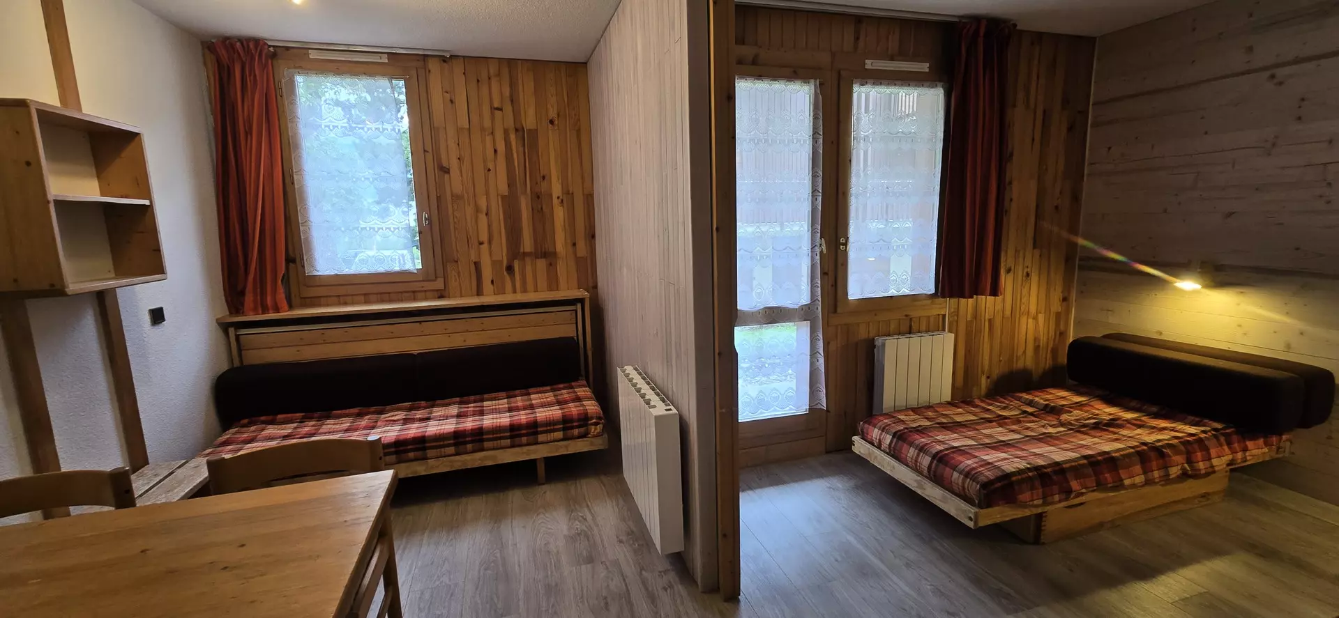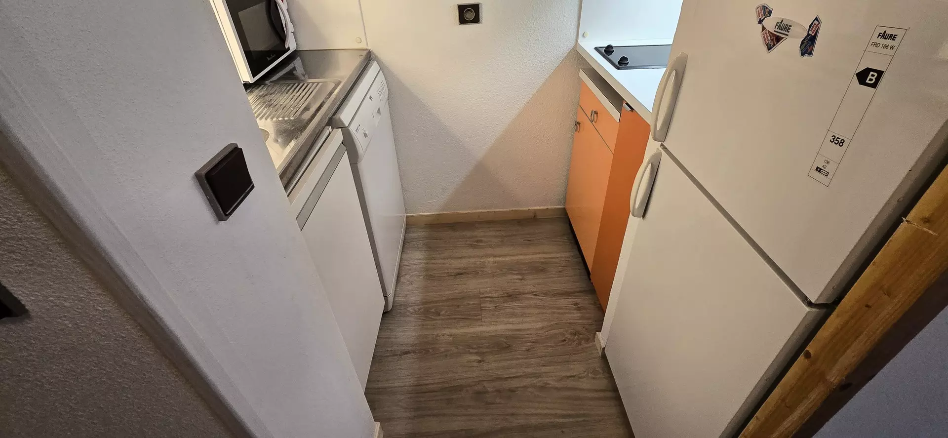 This divisible studio on the ground floor near the slopes consists of an equipped kitchenette (ceramic hob, coffee maker, oven, microwave, dishwasher and toaster), a bathroom with bathtub and separate toilet.