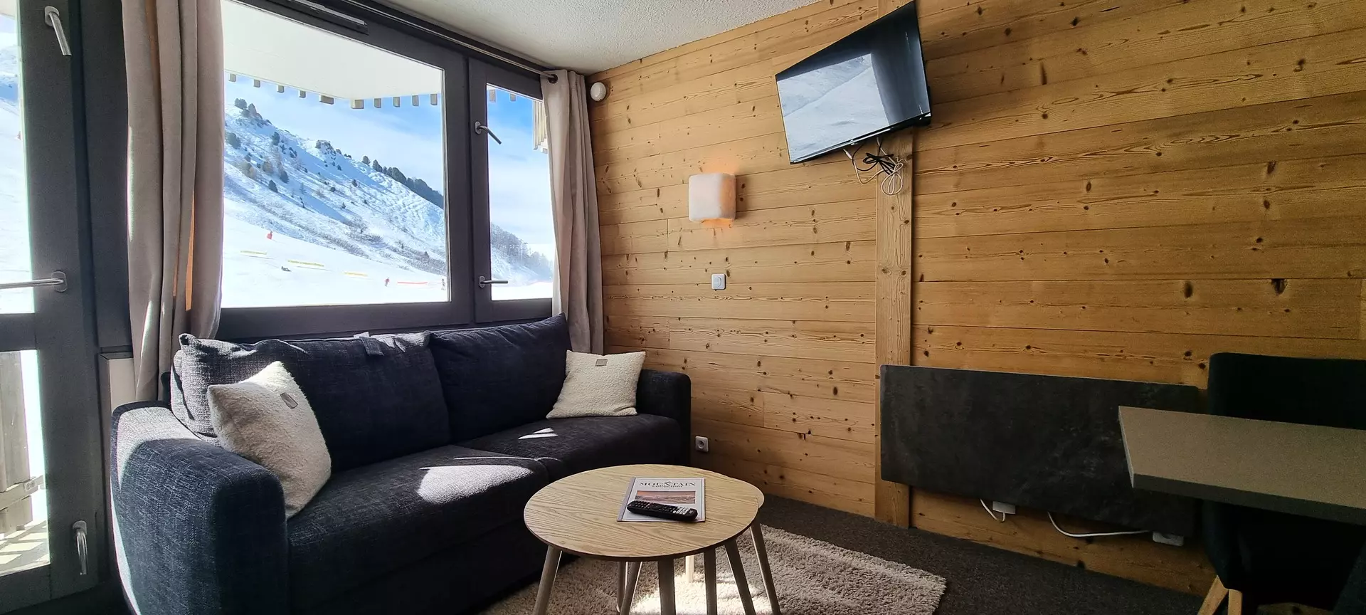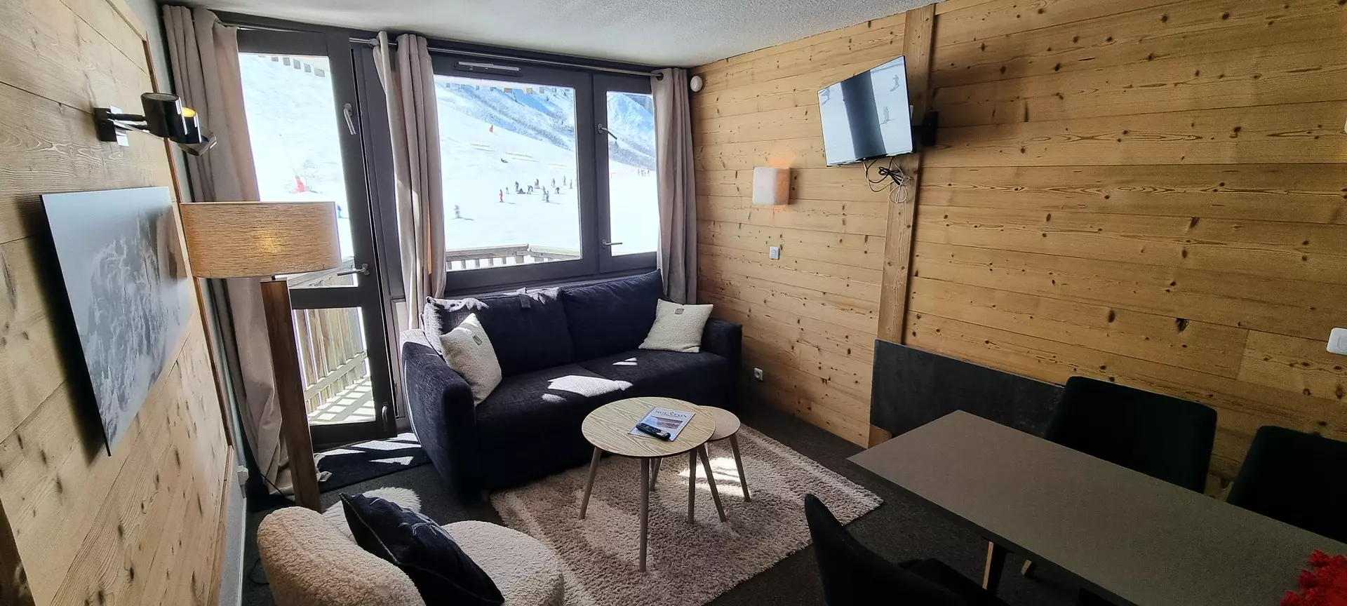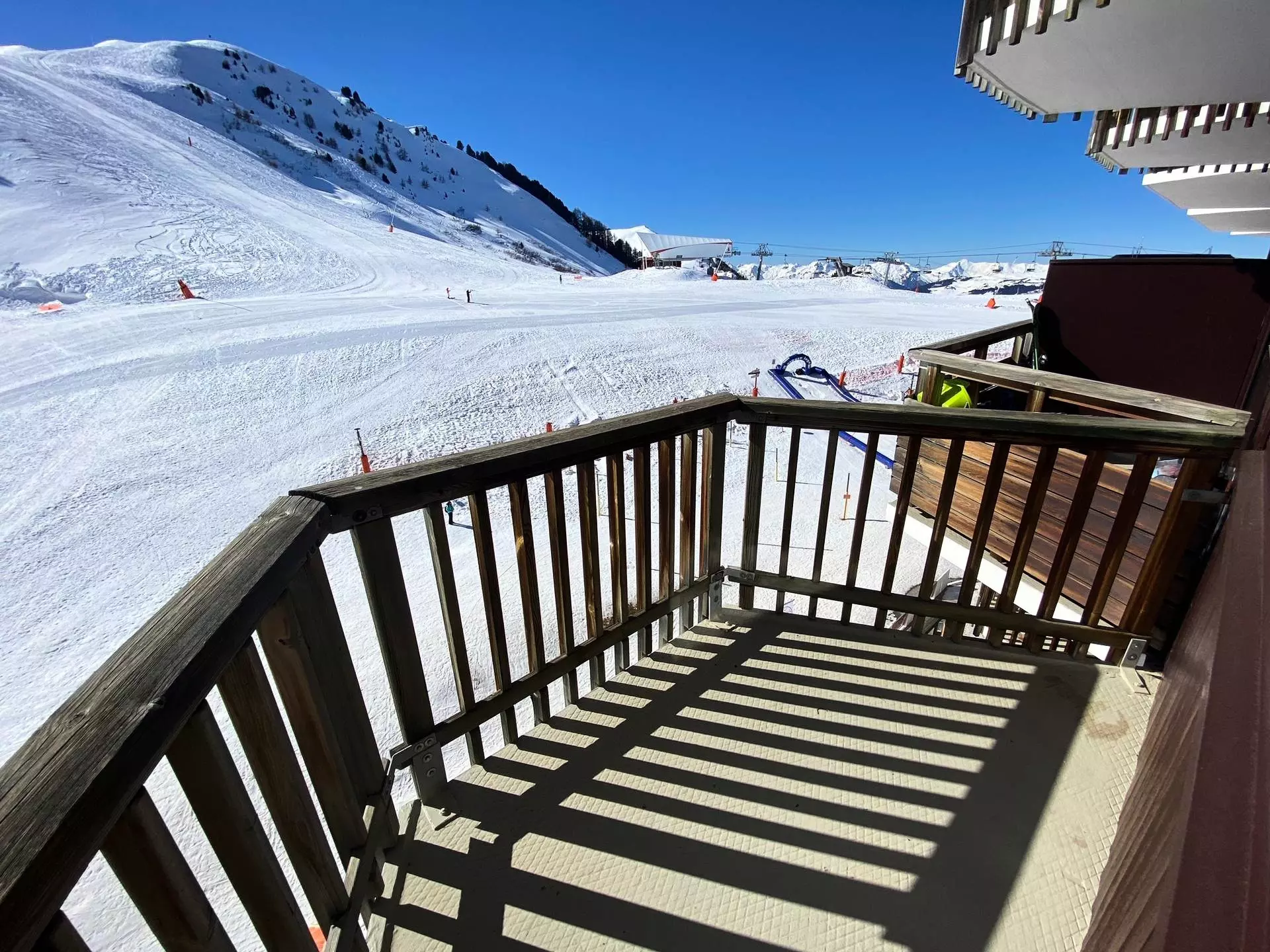 This studio is located on the "L" level of the Paquebot des Neiges and is accessible by the "Chamois" elevator. It consists of a living room, a separate kitchen, and a bathroom with WC. Its south-facing balcony offers a lovely view of the Aime 2000 slopes.