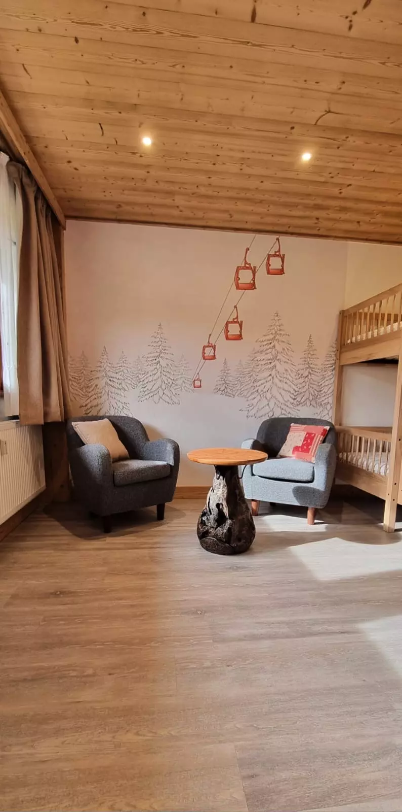 Divisible studio - currently being renovated summer 2025, south facing with view of the slopes and the snow front.