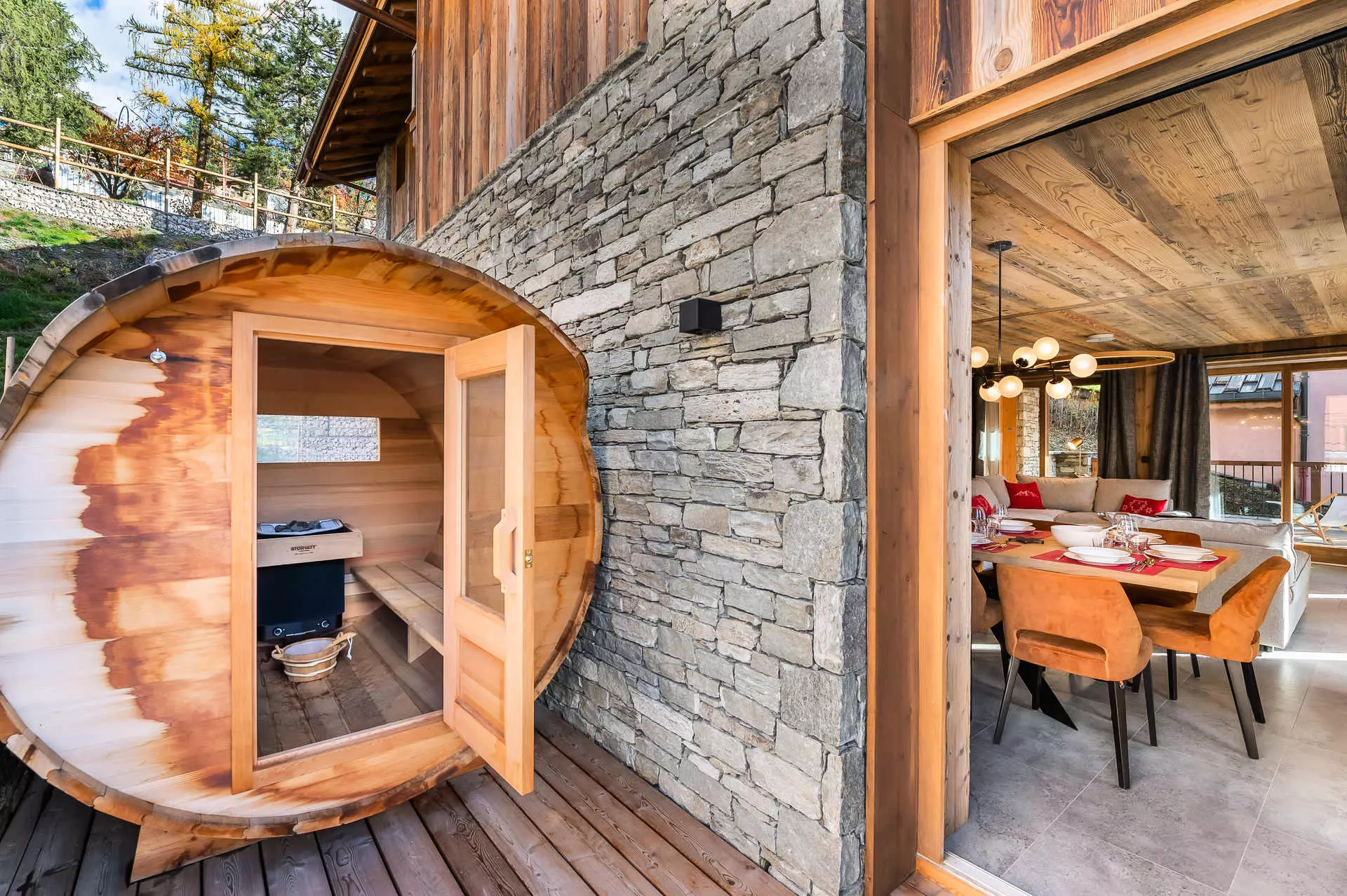 A balcony terrace with sauna