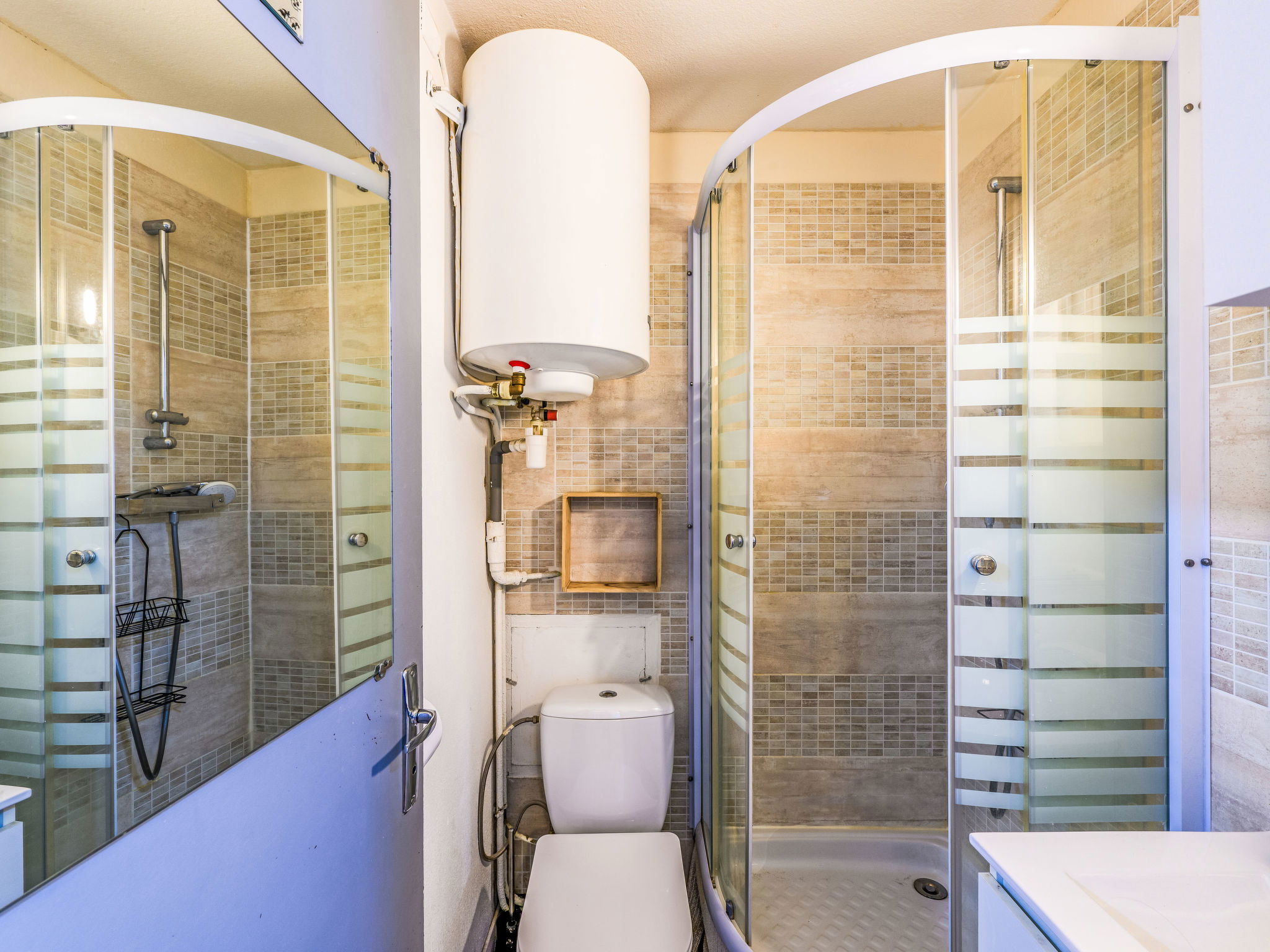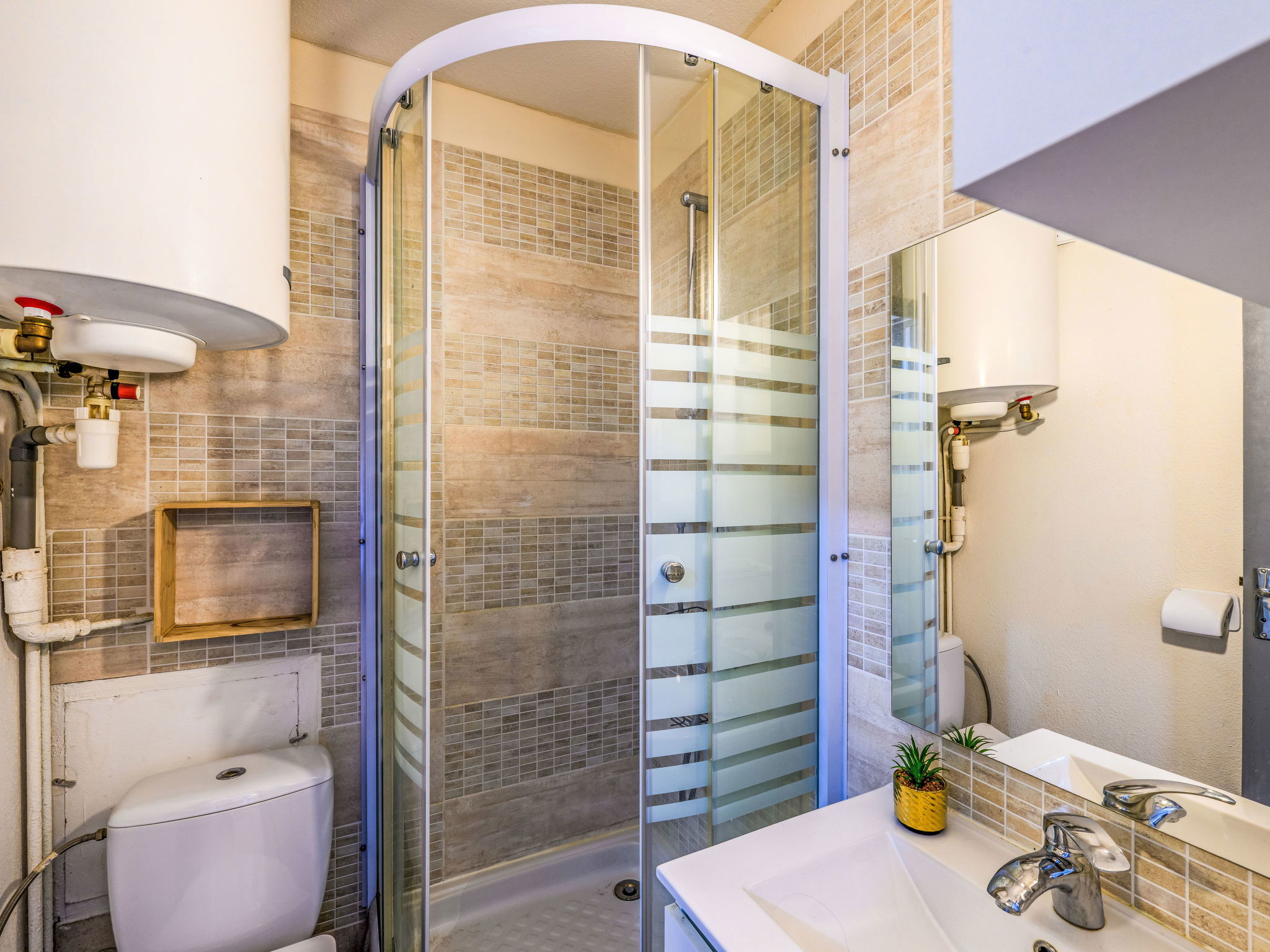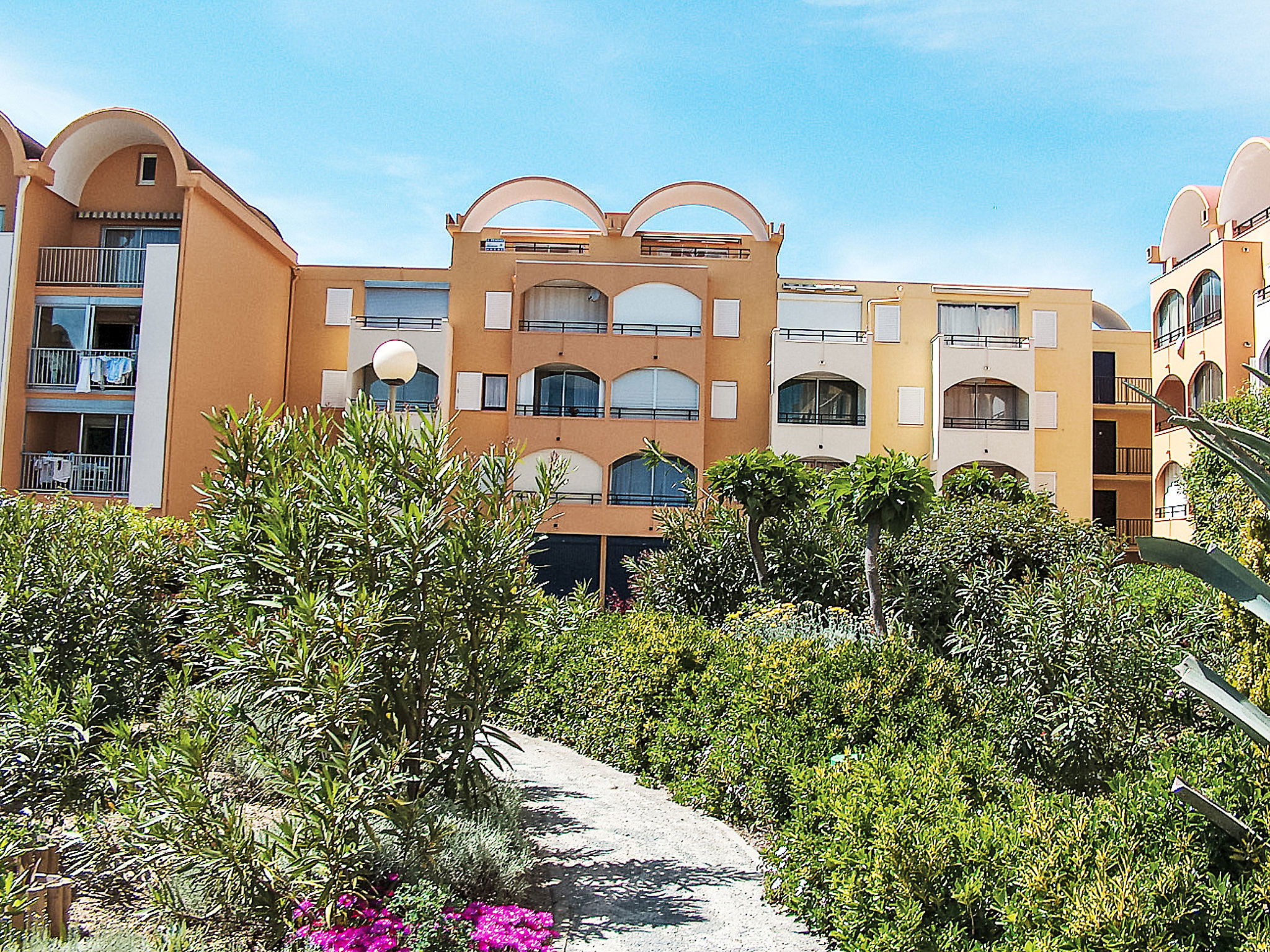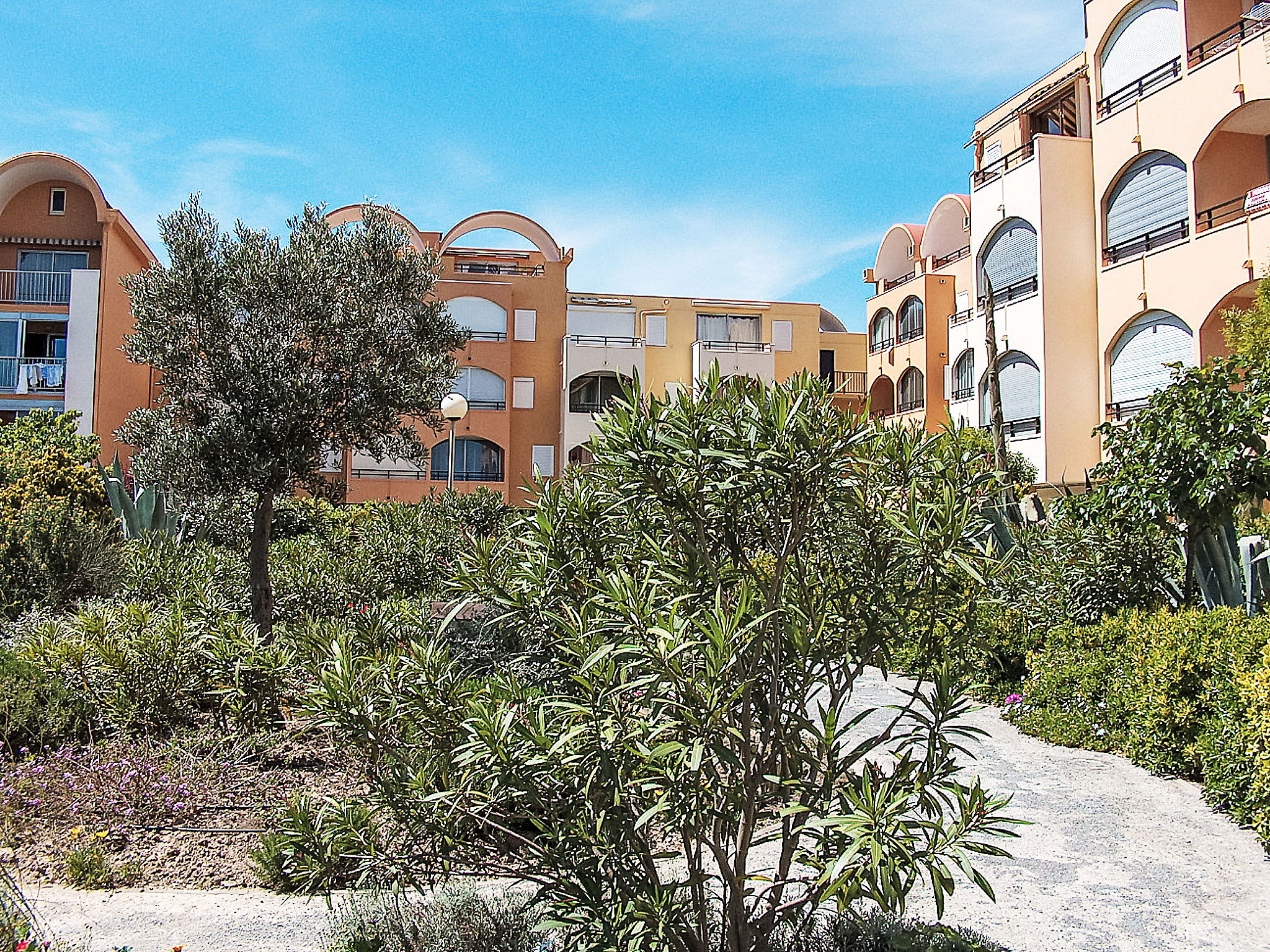 Residence "Gruissan Port", 3 storeys. 1 km from the centre, in a quiet position, 3 km from the sea. Motor access to the house. Shop 300 m, grocery 50 m, supermarket 2 km, restaurant, bar 200 m, bus stop 100 m, sandy beach "Plage des Chalets" 3 km. Tennis 2 km, riding stable 5 km. Nearby attractions: Réserve Africaine de Sigean 29 km, Cité de Carcassonne 73 km, Espace balnéoludique de Gruissan 3.2 km. Please note: the keys‘ handover takes place by the agency in Narbonne Plage, 10 km. The photograph shows a typical example.