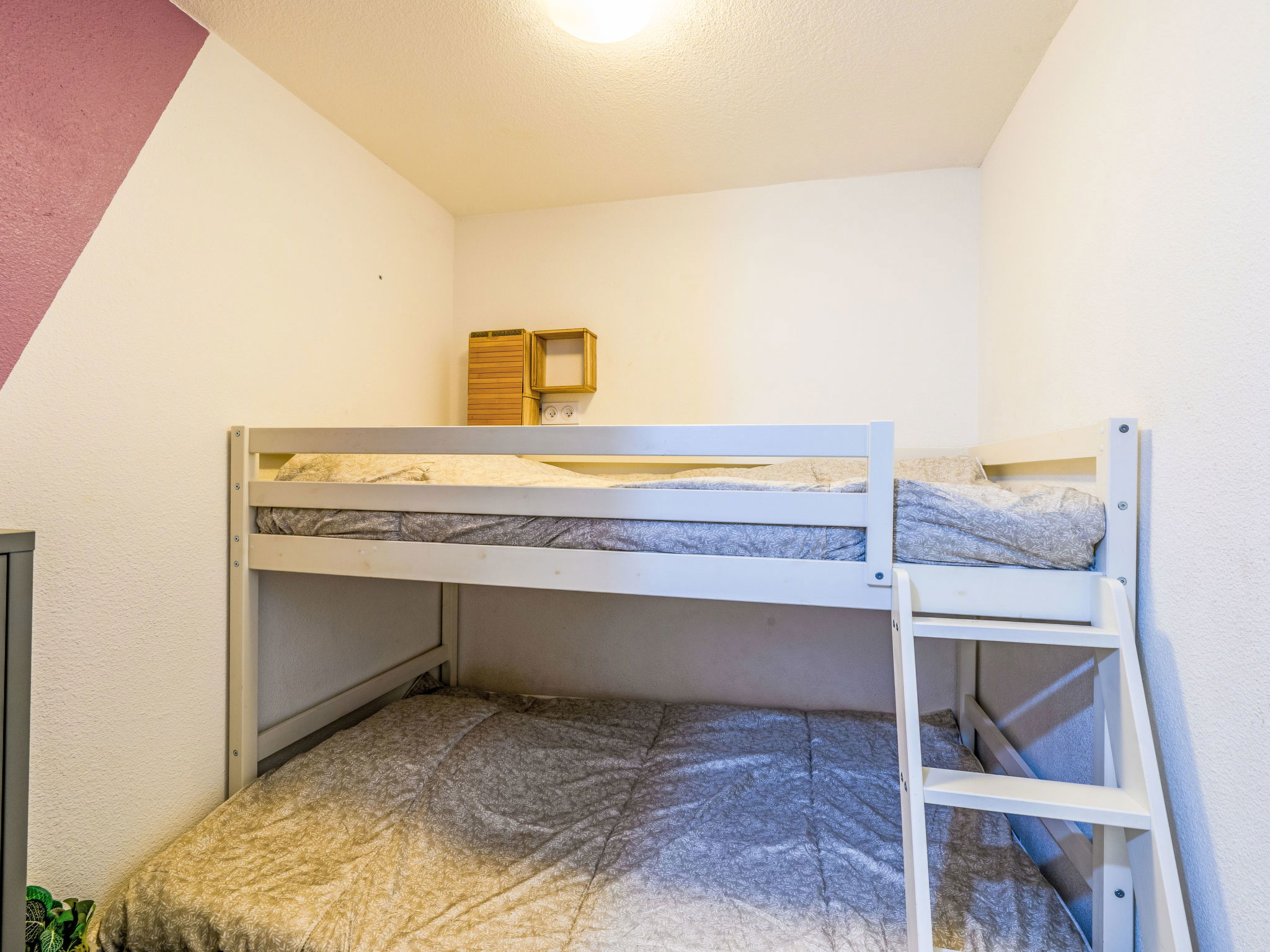 2-room apartment 25 m2 on 3rd floor. Comfortable and beautiful furnishings: living/dining room with TV (flat screen). Exit to the balcony. 1 open room with 1 french bed (1 x 140 cm, length 190 cm). Entrance hall with 1 bed (120 cm, length 190 cm), 1 sleeping facility (1 x 80 cm, length 190 cm). Open kitchen (2 hot plates, dishwasher, toaster, kettle, microwave, electric coffee machine, Capsules for coffee machine (SENSEO)). Shower/WC. Electric heating. Balcony, north-east facing position. Balcony furniture. Facilities: washing machine. Internet (WiFi, extra). Parking. Please note: 1 pet/ dog allowed. Smoke alarm. Please note: There are bunk beds at the entrance. Offer by a private individual according to Art. 155, IV of CGI.