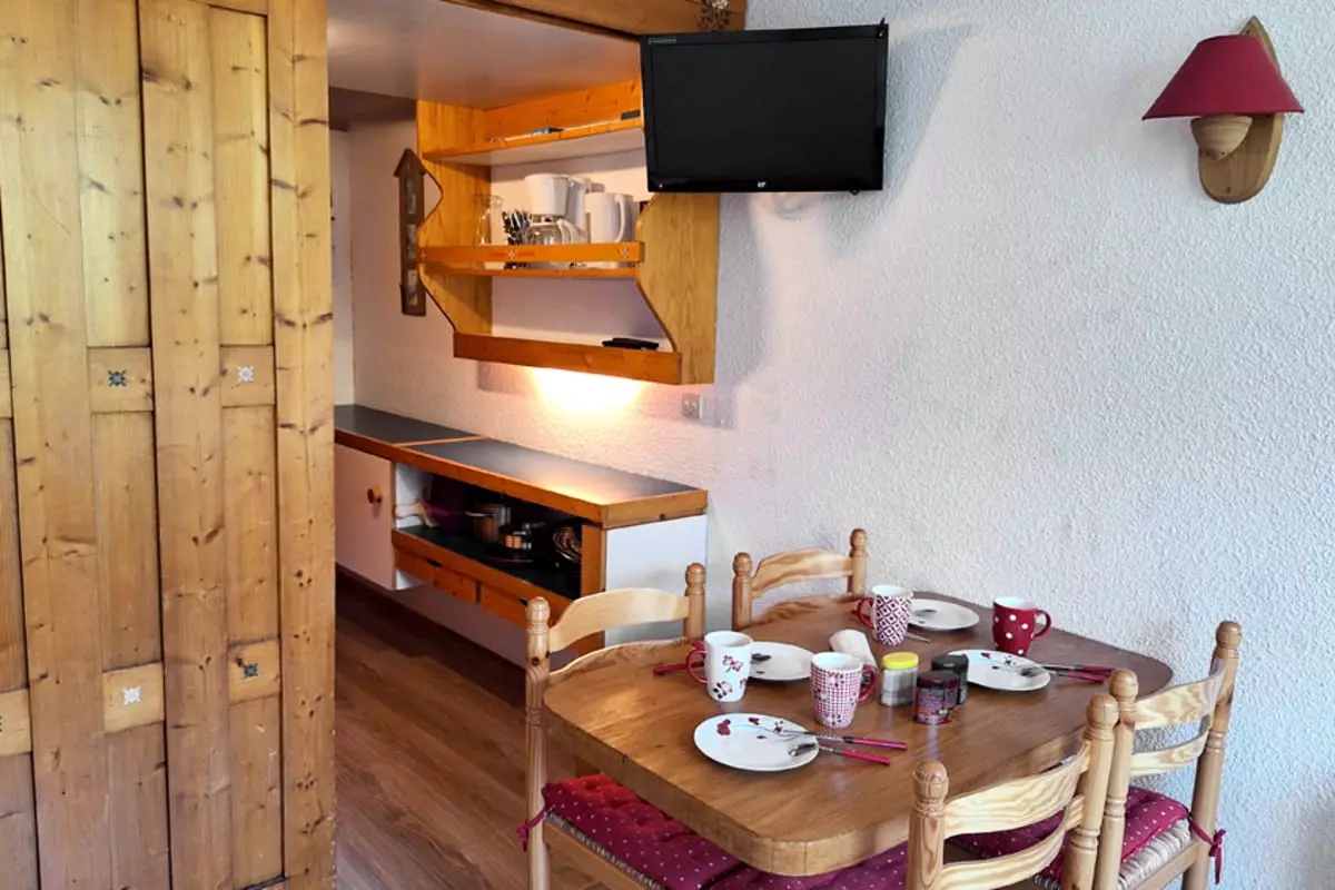 Array: Accommodating up to 4 people, it is perfect for your family or friends' mountain vacation. It is located in the center of the village of Charvet in Arc 1800 and provides immediate walking access to all shops and the slopes.