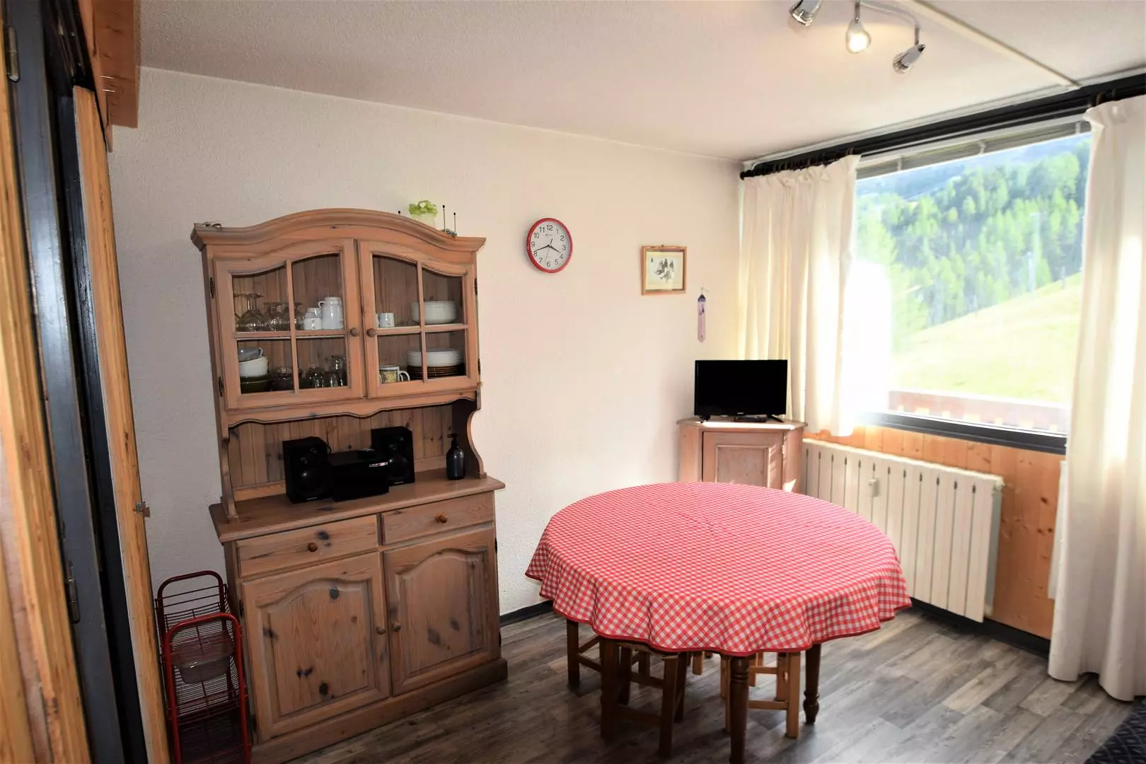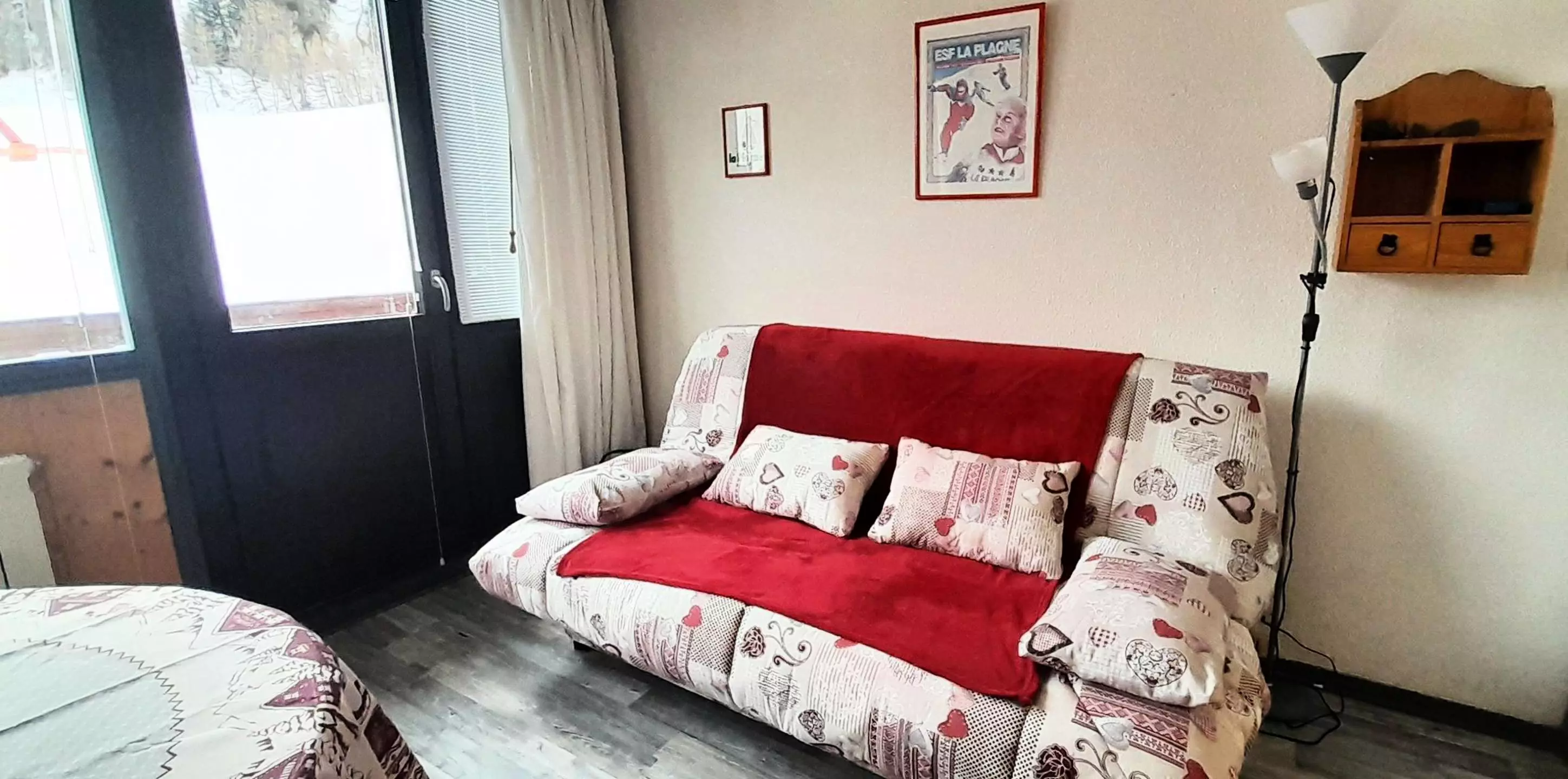 Studio cabin 23m2, 3/4 people, south facing, balcony, view of the slopes and Grande Rochette, 3rd floor without elevator. Kitchen: 2 ceramic hobs, refrigerator, combination oven, dishwasher, electric coffee maker. Living room: dining area, sofa bed for 2 people, television. Cabin: 2 bunk beds. Bathroom: bathtub, separate toilet. Bedding: blankets - Floors: living room, kitchen, bathroom, toilet: plastic. Non-smoking apartment, pets not allowed. Optional and extra: End-of-stay cleaning, sheets, towels, ski passes.