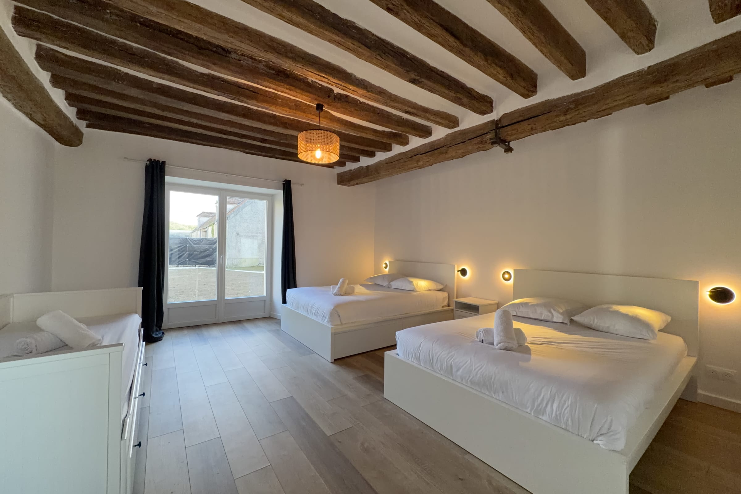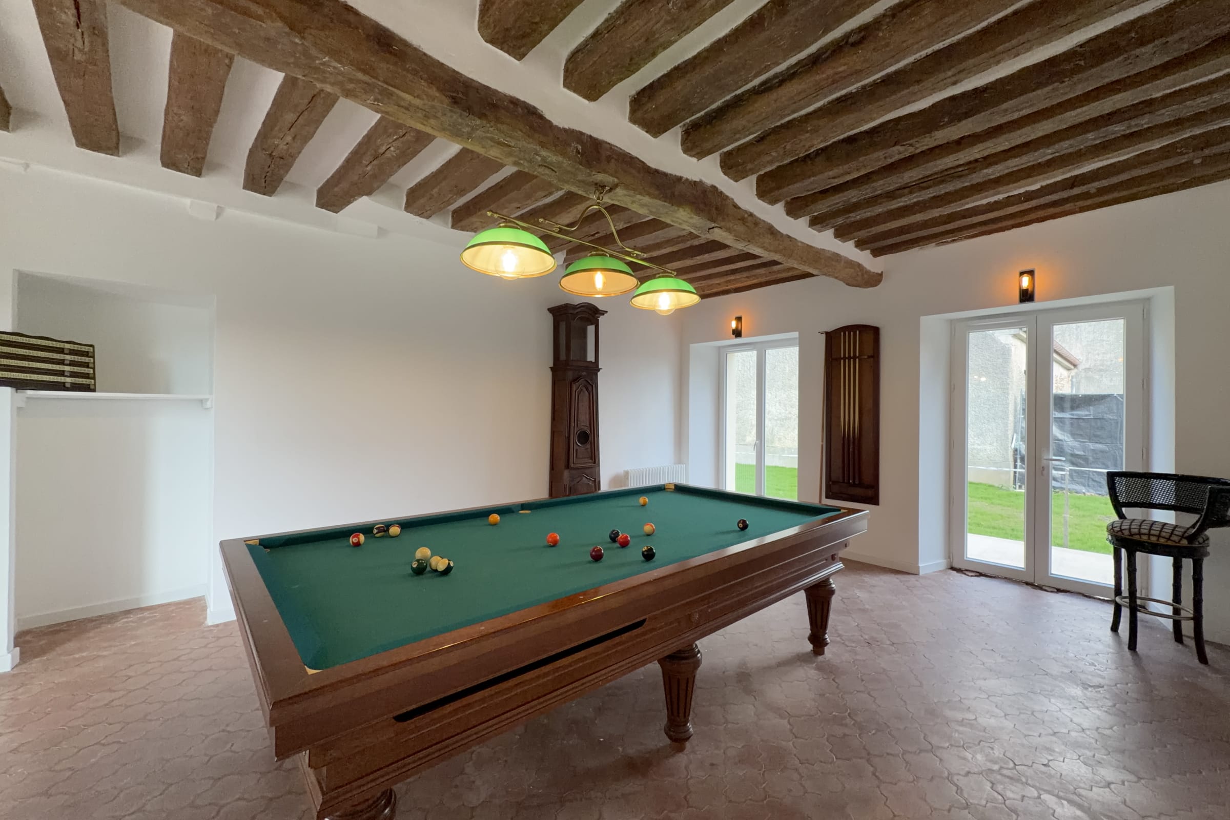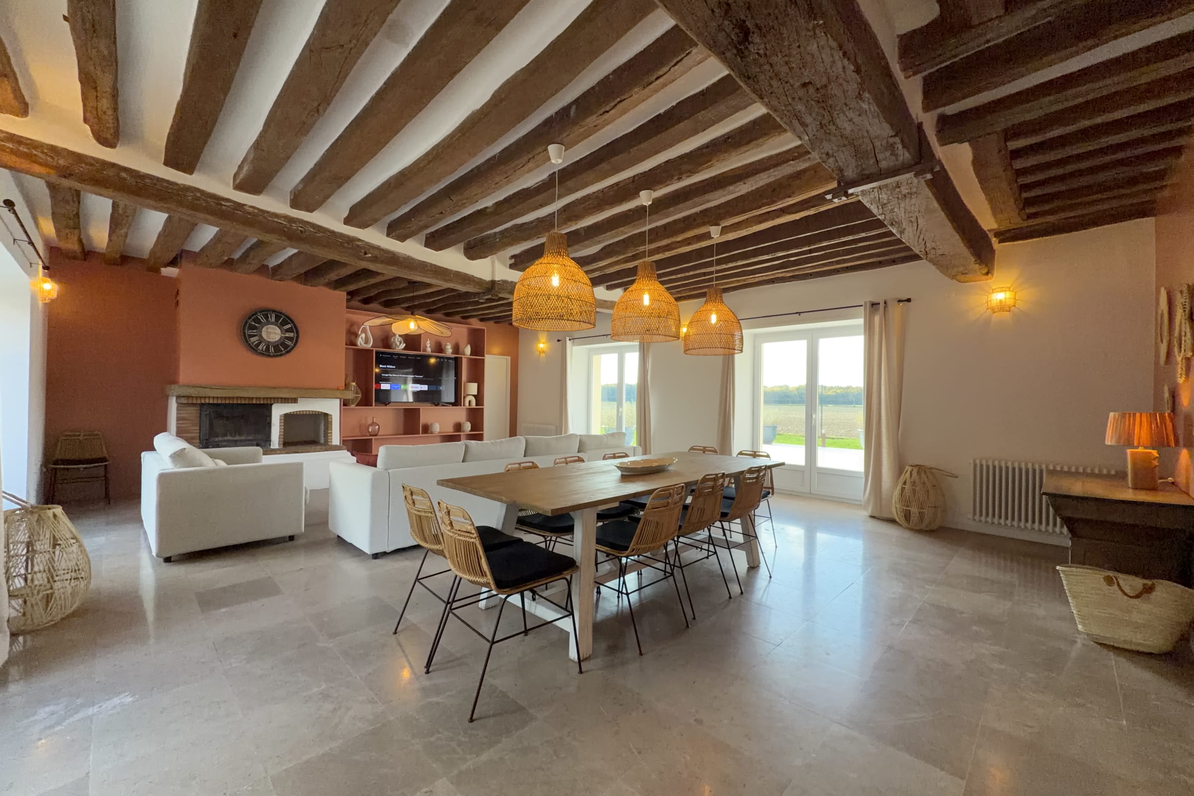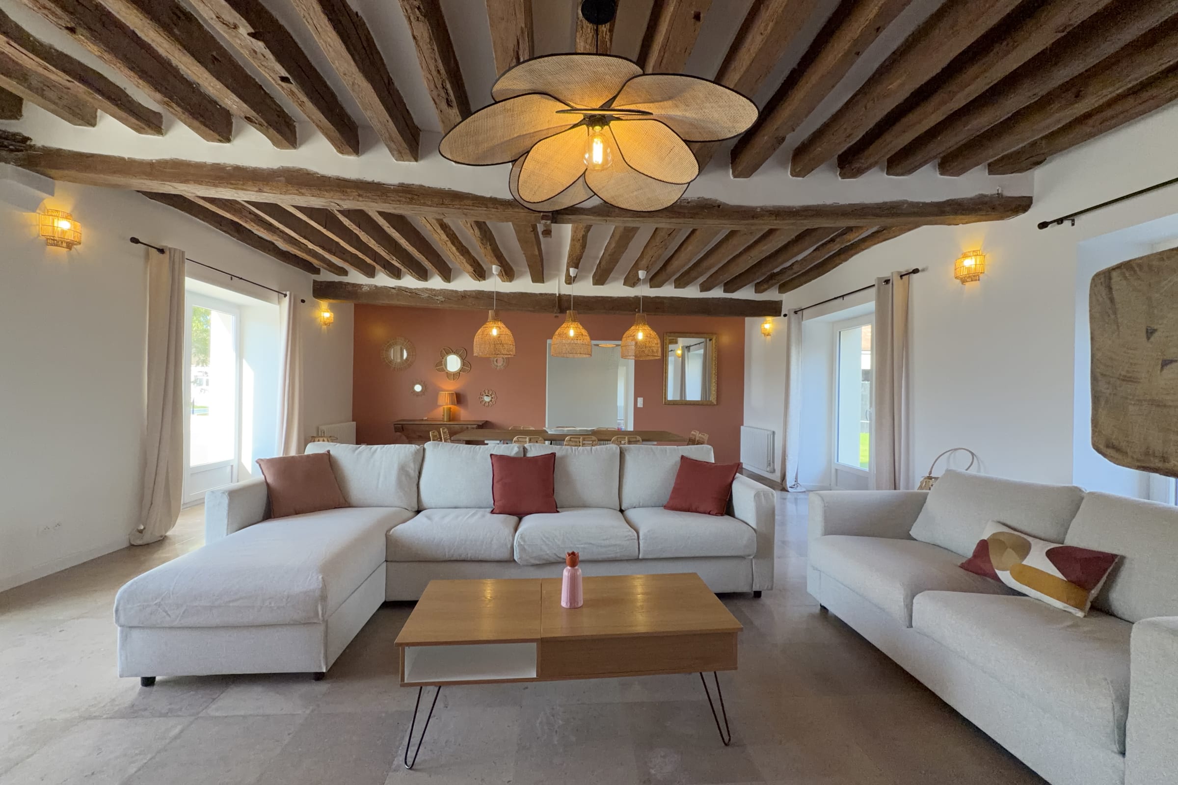 Come and enjoy a unique experience in a fully renovated old farmhouse in the heart of Brie. The estate is surrounded by fields and woods, with no neighbours nearby. With 15 beds, elegant bedrooms with en-suite bathrooms, a large lounge with a fireplace, a high-end kitchen, a cosy terrace, a private swimming pool and leisure activities (billiards, table football, table tennis, pétanque), this is the perfect place for a relaxing weekend, an intimate wedding, a birthday, a seminar or a family reunion. 🌿✨