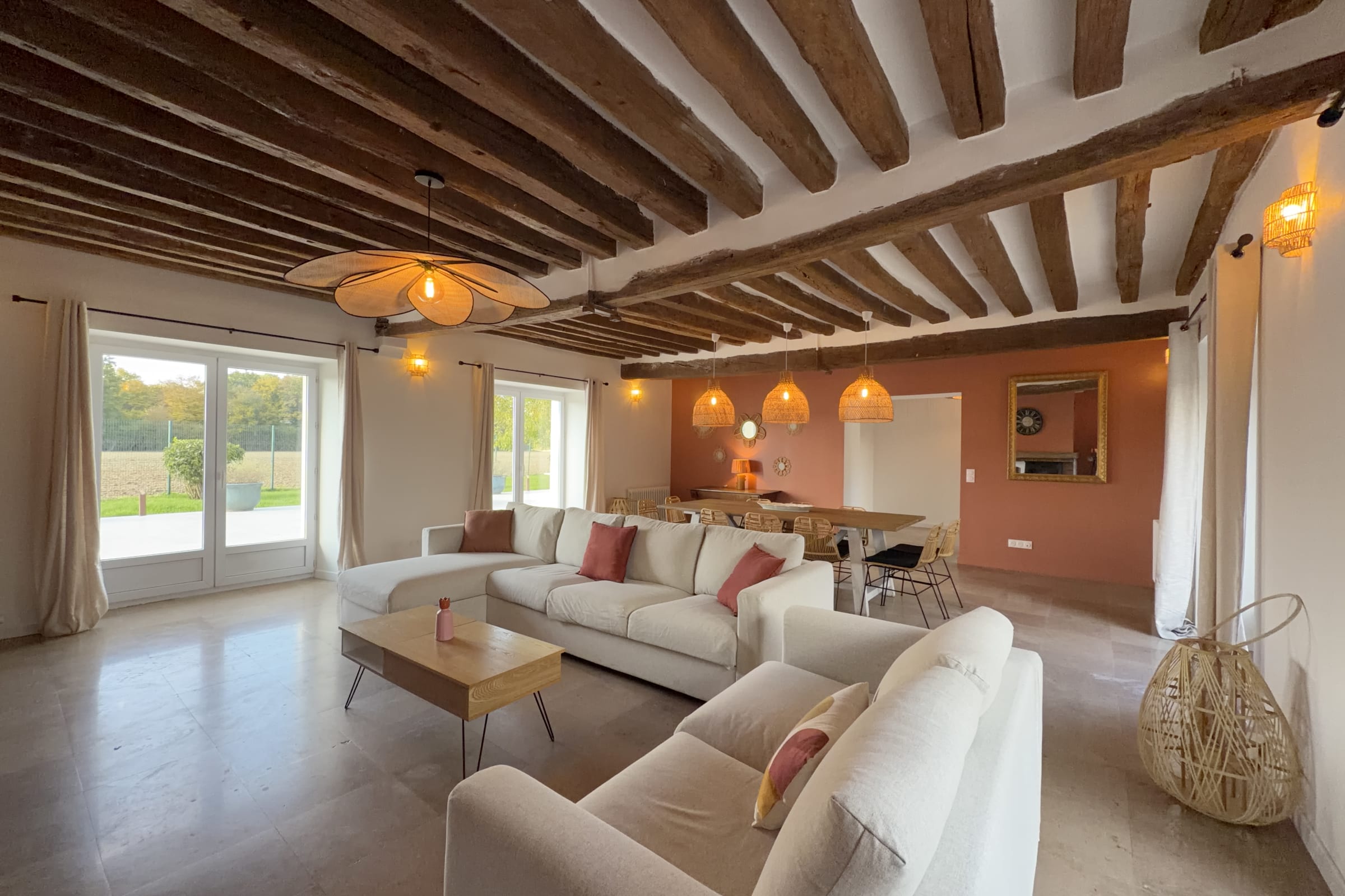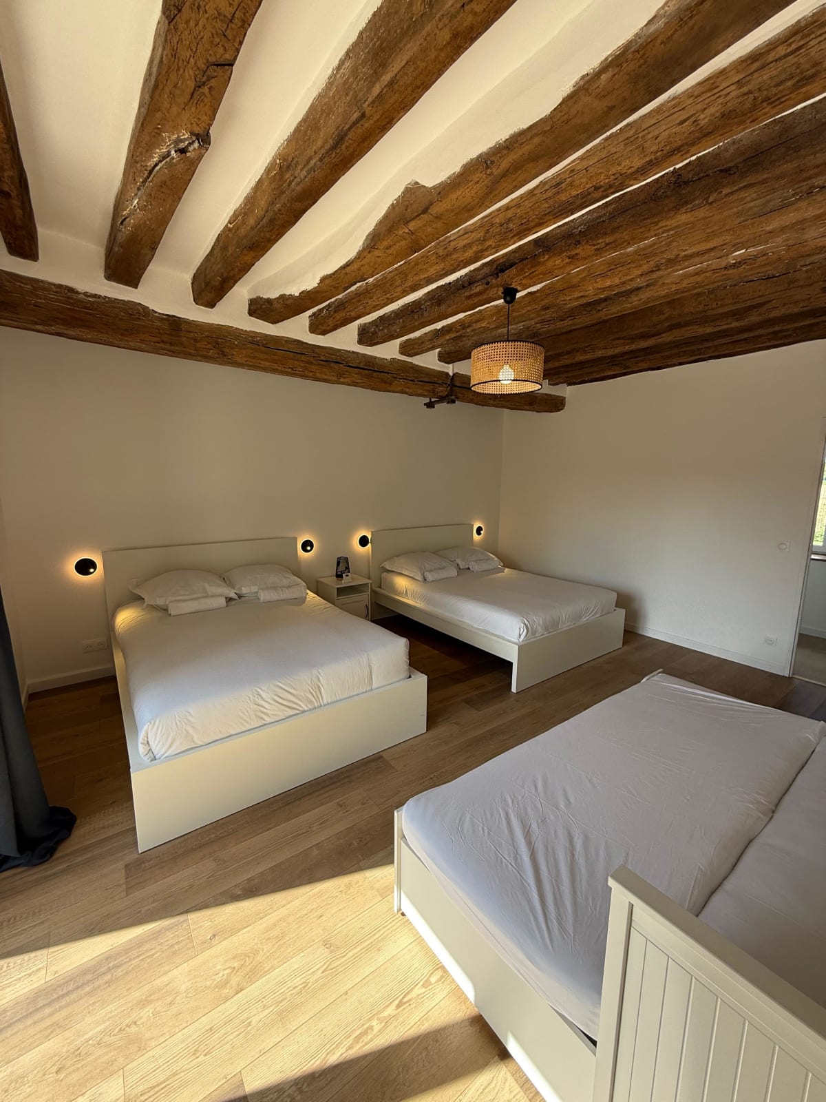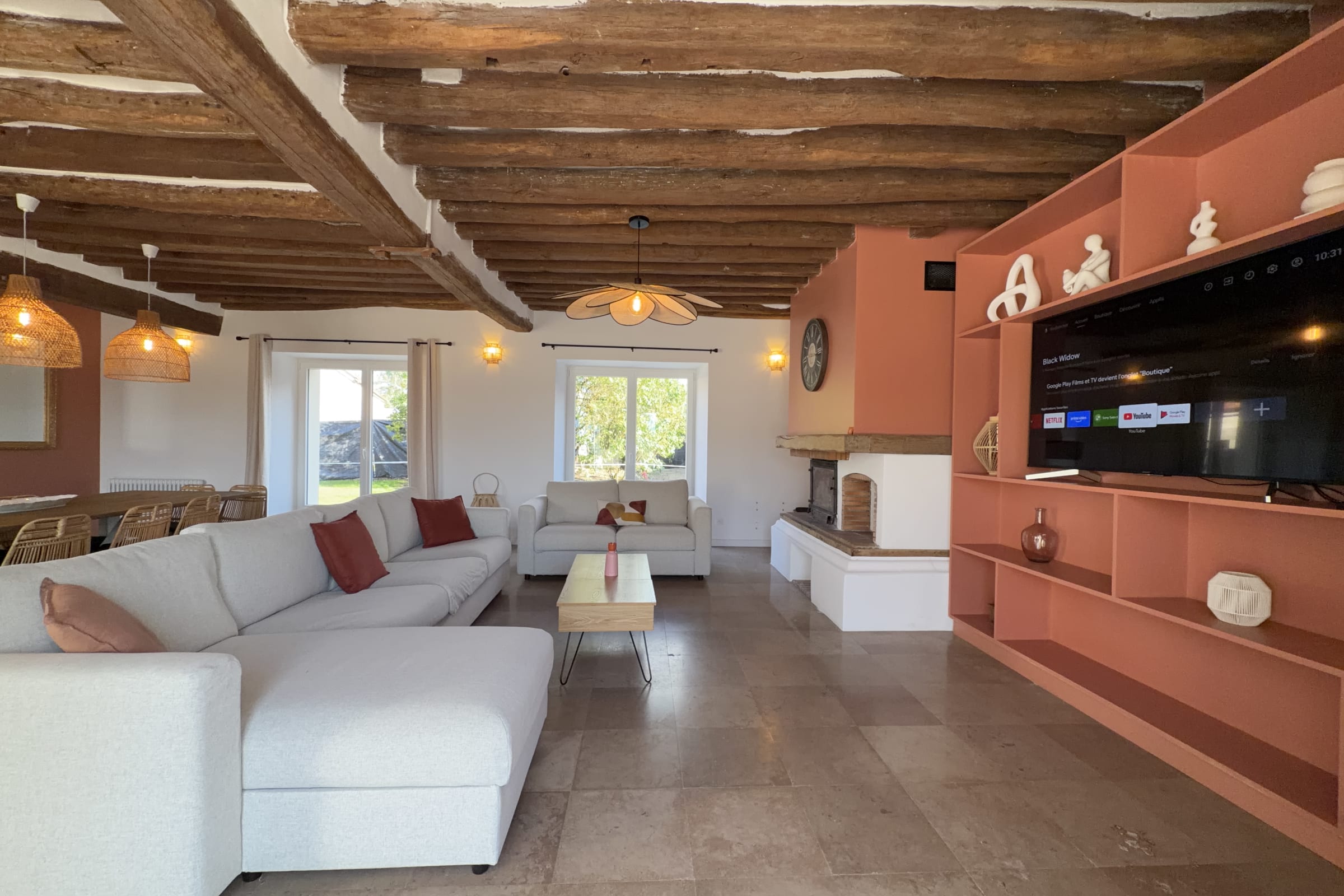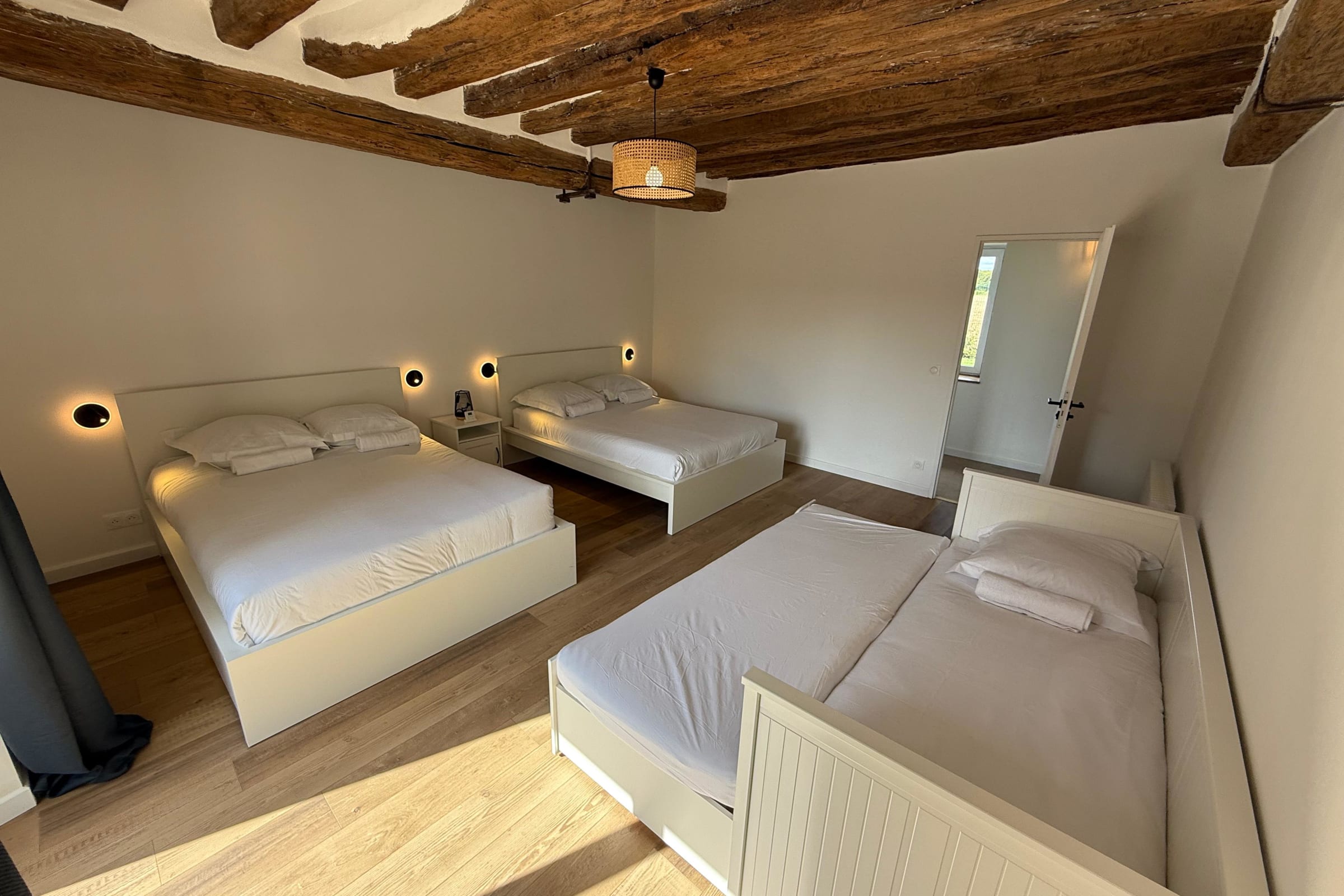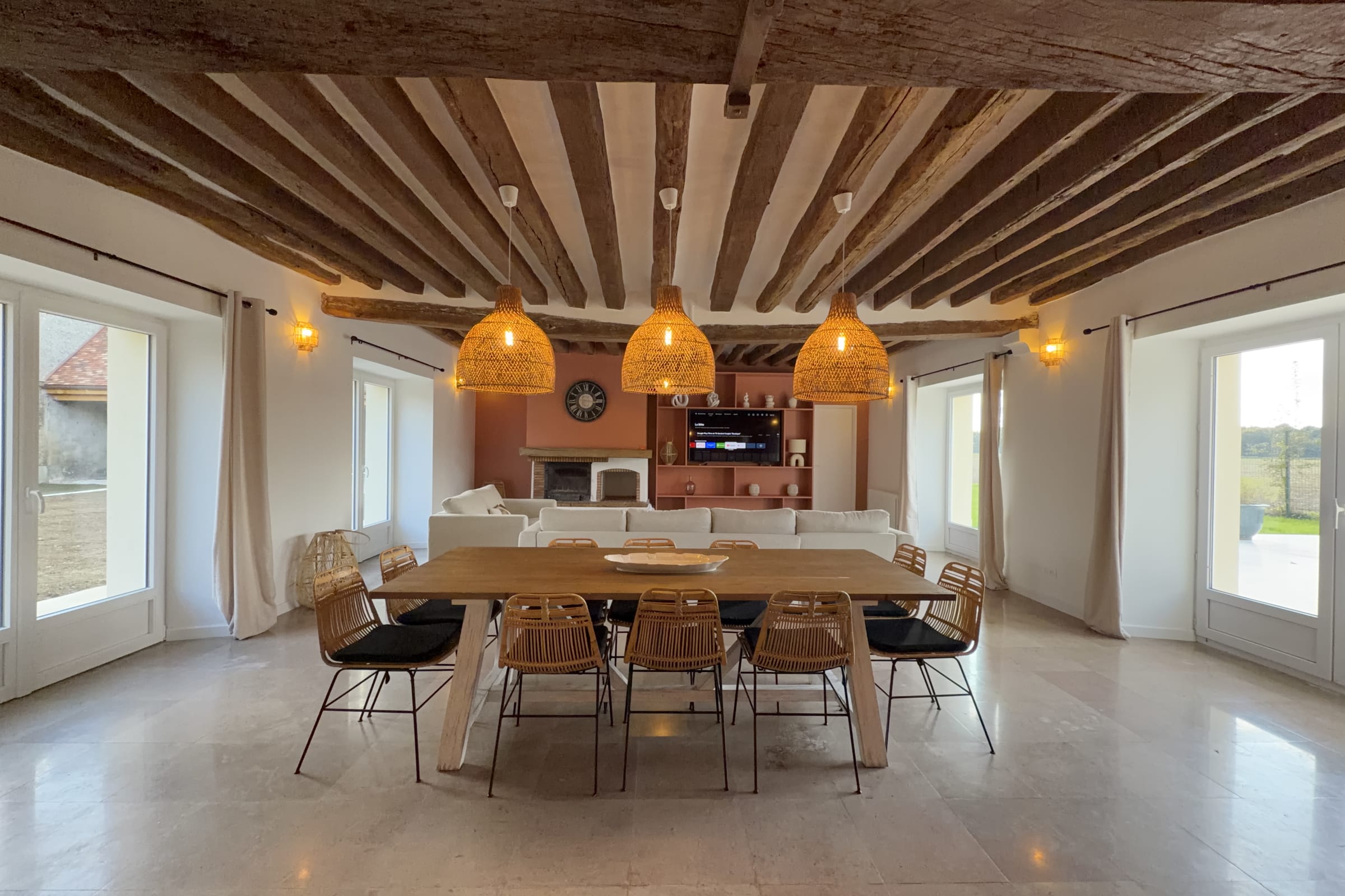 Come and enjoy a unique experience in a fully renovated old farmhouse in the heart of Brie. The estate is surrounded by fields and woods, with no neighbours nearby. With 15 beds, elegant bedrooms with en-suite bathrooms, a large lounge with a fireplace, a high-end kitchen, a cosy terrace, a private swimming pool and leisure activities (billiards, table football, table tennis, pétanque), this is the perfect place for a relaxing weekend, an intimate wedding, a birthday, a seminar or a family reunion. 🌿✨