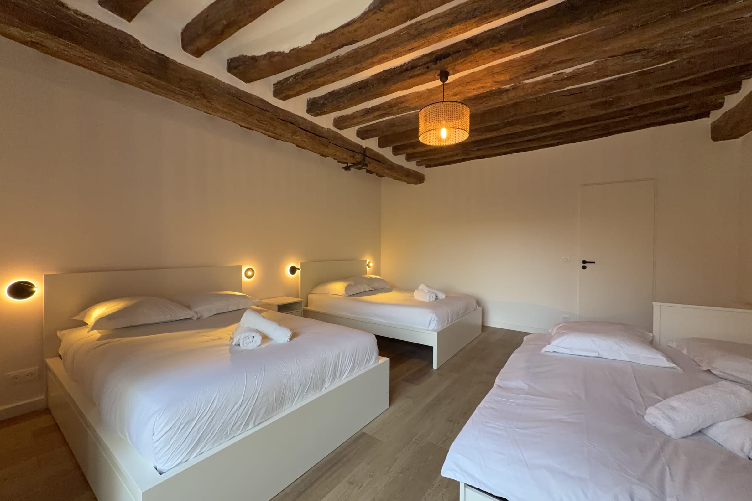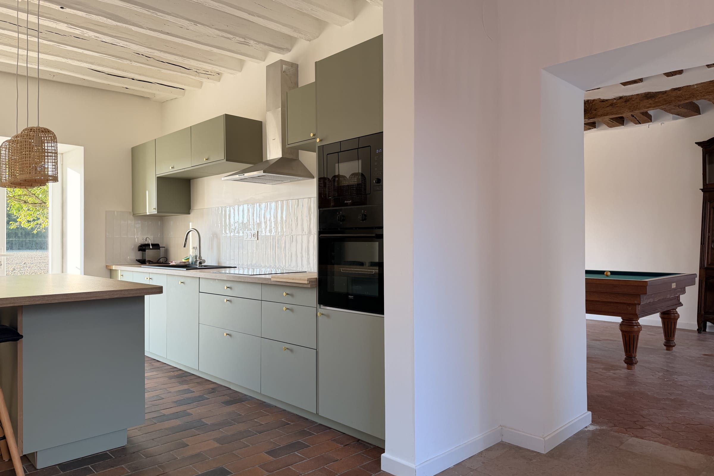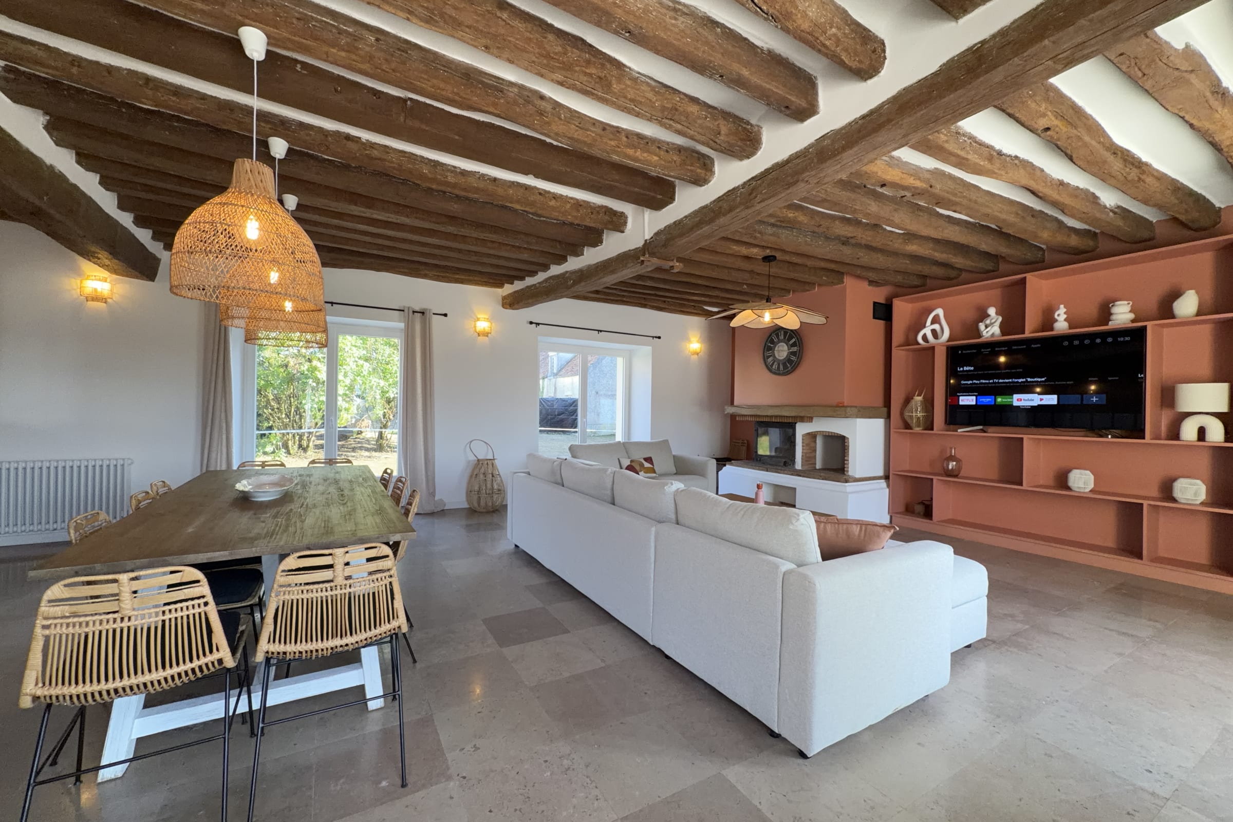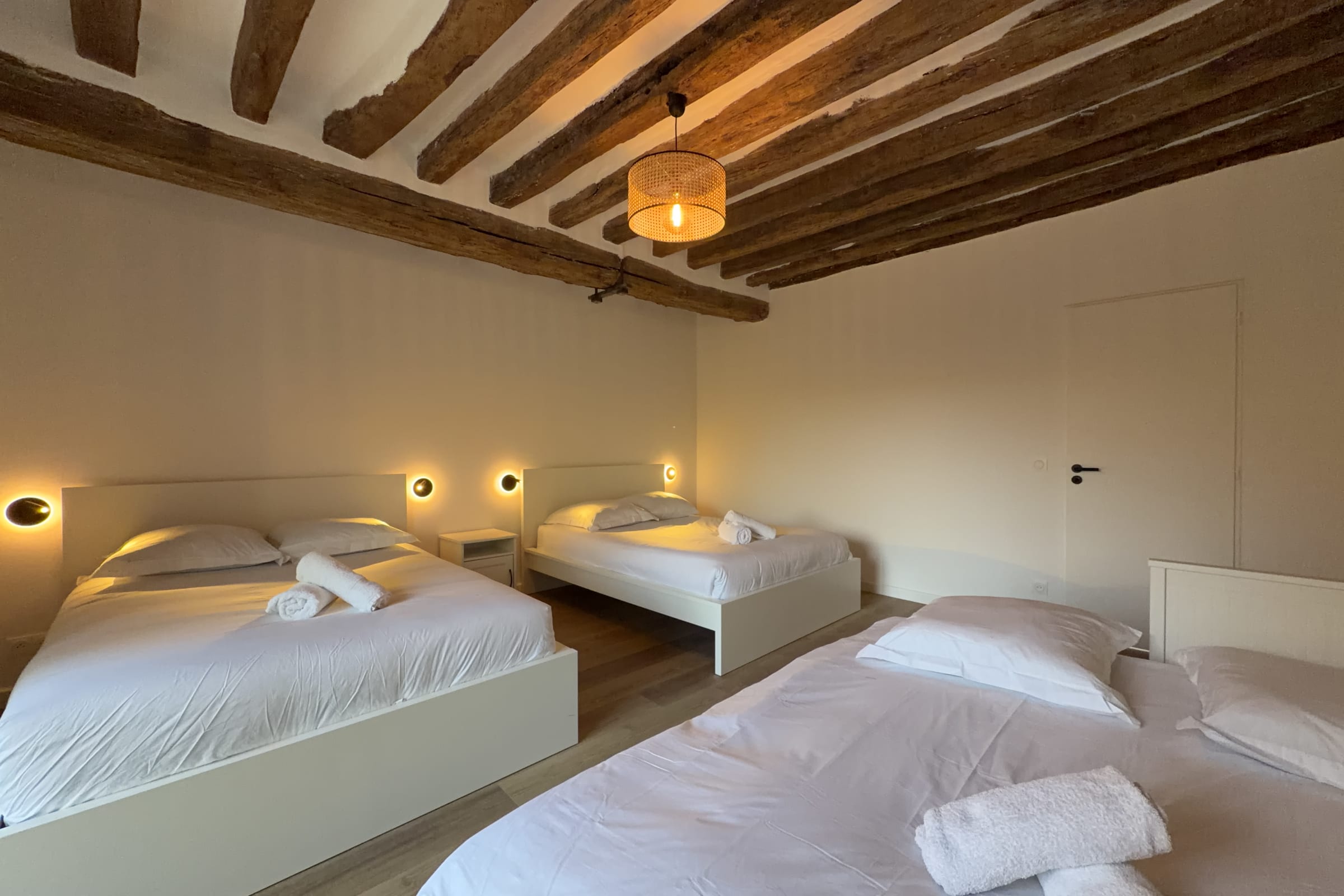 Come and enjoy a unique experience in a fully renovated old farmhouse in the heart of Brie. The estate is surrounded by fields and woods, with no neighbours nearby. With 15 beds, elegant bedrooms with en-suite bathrooms, a large lounge with a fireplace, a high-end kitchen, a cosy terrace, a private swimming pool and leisure activities (billiards, table football, table tennis, pétanque), this is the perfect place for a relaxing weekend, an intimate wedding, a birthday, a seminar or a family reunion. 🌿✨