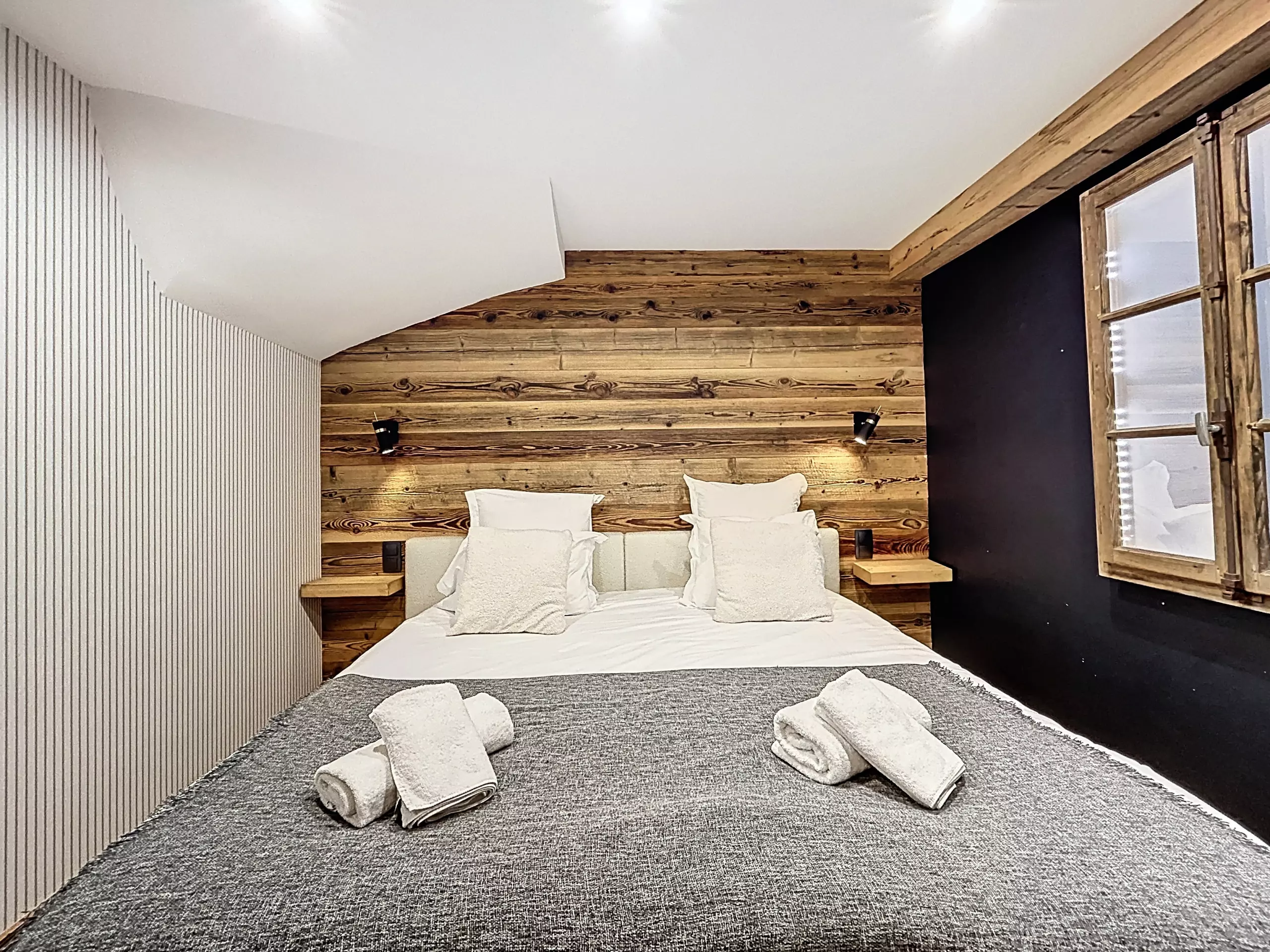 The Vigneron Apartment embodies Alpine elegance with a mountain-chic feel. Housed in a fully renovated barn, it combines authenticity with high-end amenities. With its 105 m² (1,100 sq ft), it can comfortably accommodate up to eight guests in four en-suite bedrooms, each equipped with a queen-size bed that can be converted into two single beds. Three shower rooms and one bathroom complete the layout, offering comfort and privacy to all occupants.