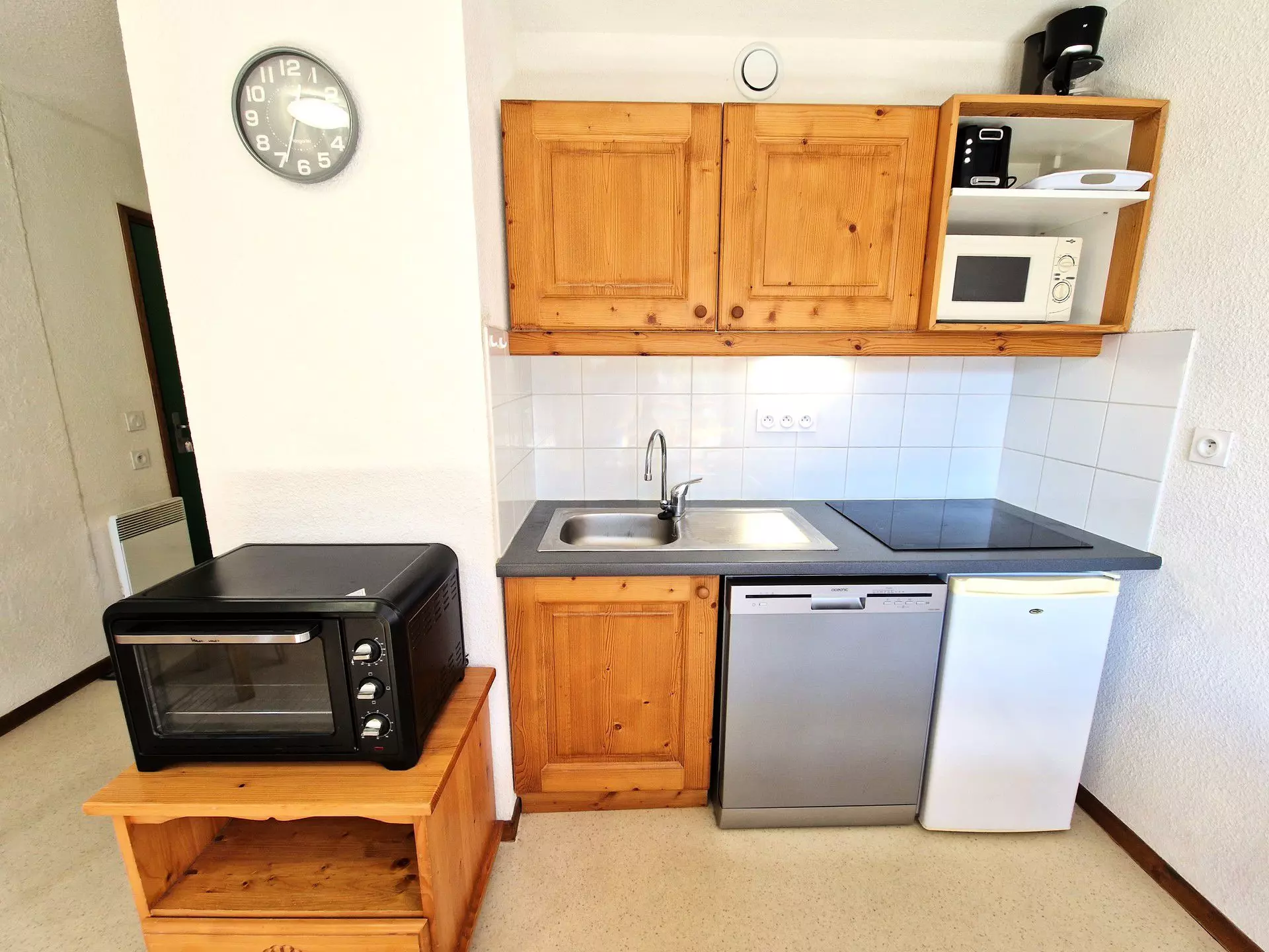 - Kitchen area with 4 hotplates, refrigerator, dishwasher, microwave.