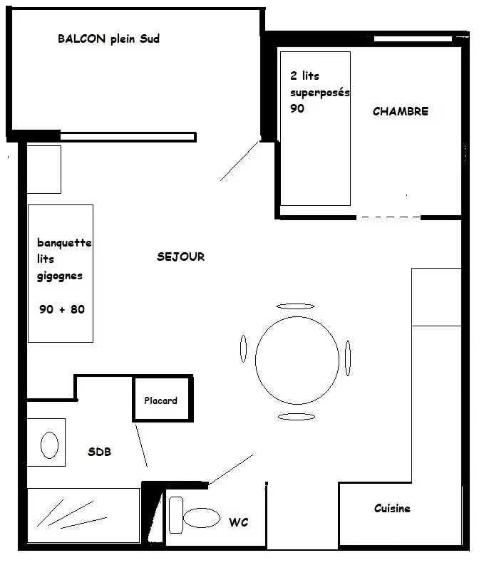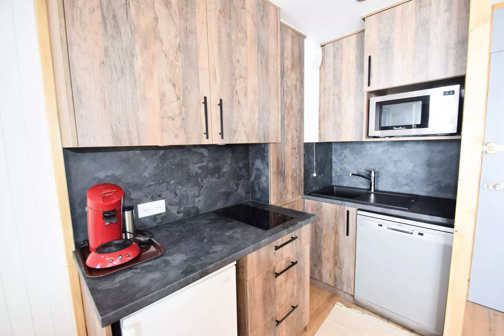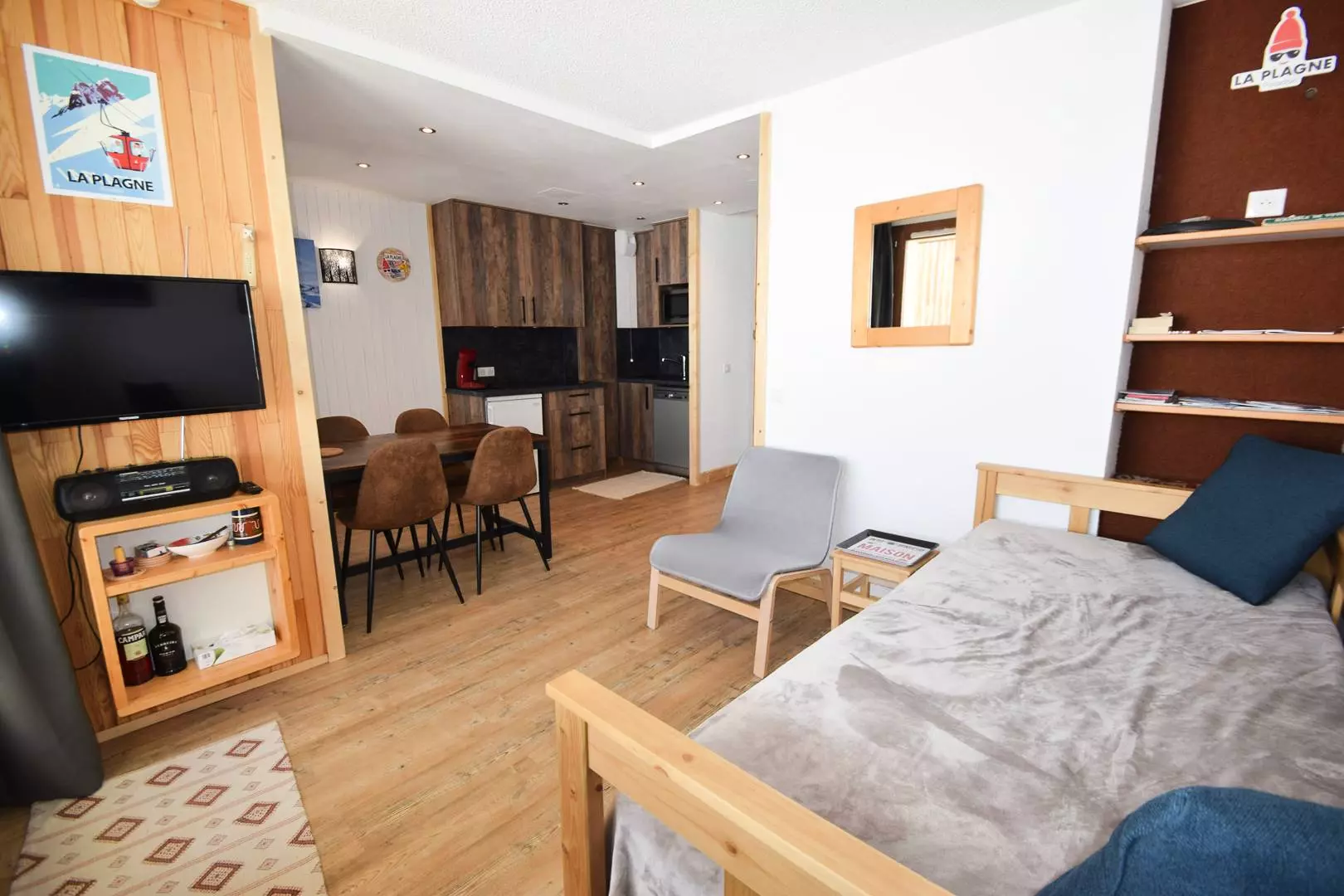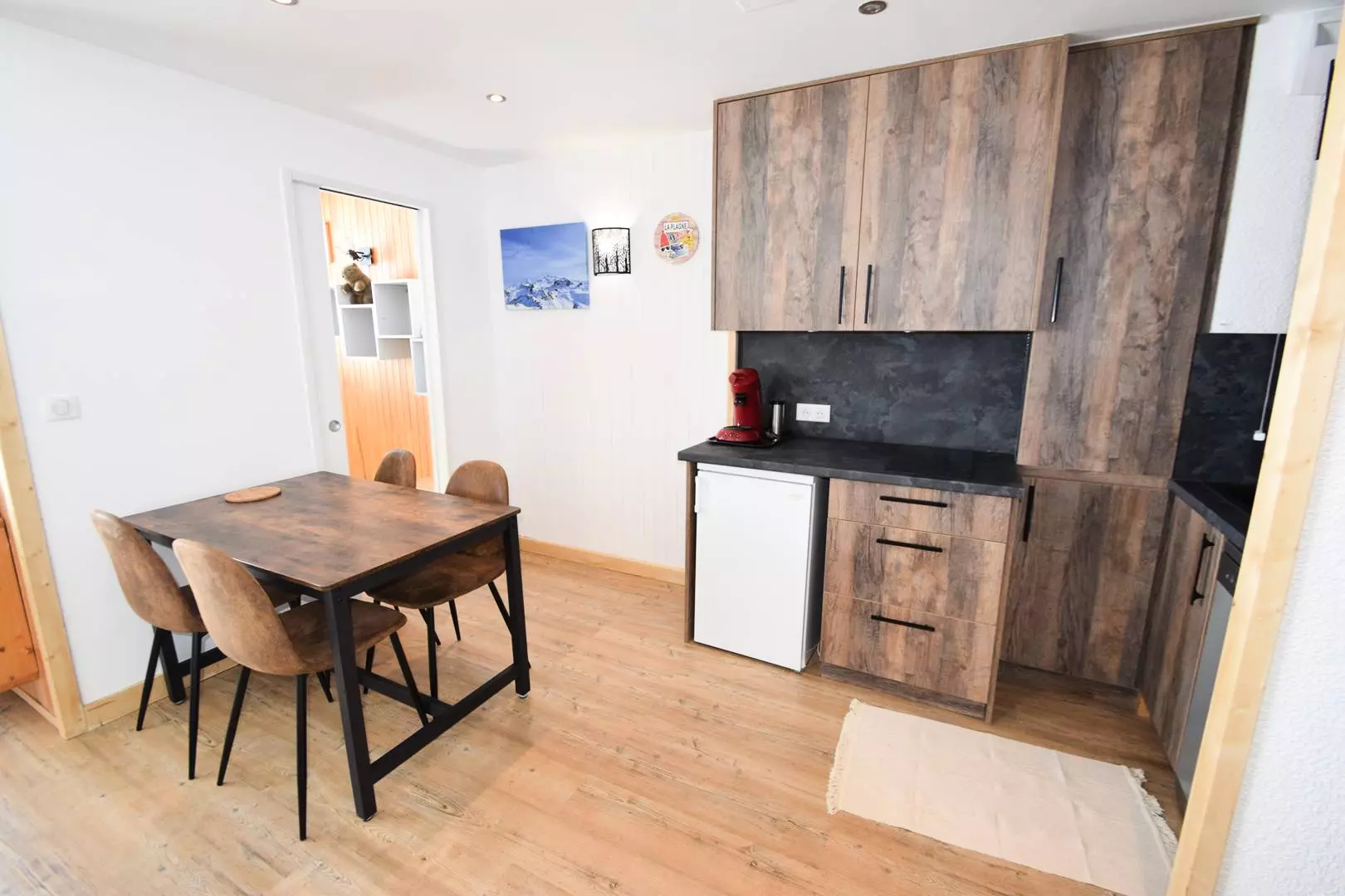 Studio + cabin for 4/5 people, 27m2, south facing, with balcony, beautiful view of the mountain and the slopes, located on the 2nd floor without elevator (the balcony gives to the 1st floor slope side) Entrance N° 2: right staircase - KITCHENETTE: 2 ceramic hobs, refrigerator, dishwasher, multifunction oven. LIVING ROOM: lounge area 2 pull-out beds forming a bench, TV - Closed cabin: 2 bunk beds + 1 drawer bed - BATHROOM: shower, separate WC. Bedding: 3 single duvets and 1 double duvet. Floors: PVC - Sheets and end of cleaning not included - Ski locker: N°42 on the ground floor - Studio with beautiful view of the slopes and the mountains, quiet - Non-smoking apartment and pets not allowed - The residence: small 3-story residence, quiet, located at the foot of the slopes, approx. 700m from shops, connected to the village by free shuttle buses (8am-midnight) -