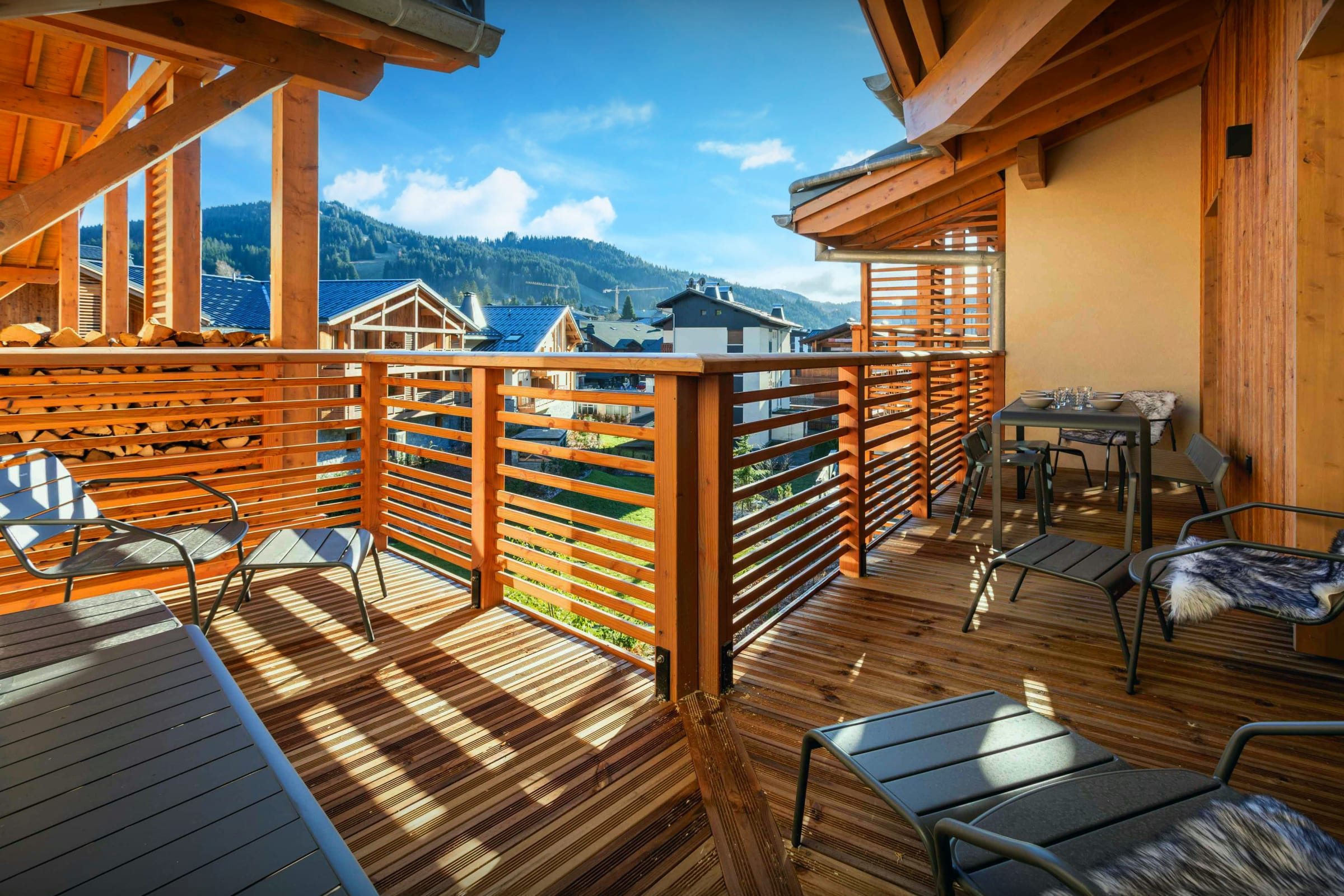 The long L-shaped balcony can be accessed from the living area and all three bedrooms - start your day with a coffee and some of the wonderful mountain air!