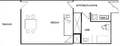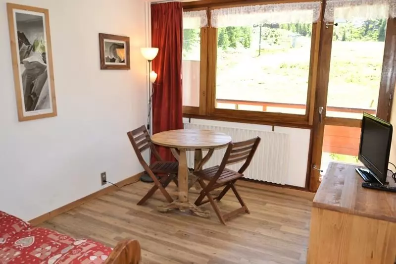 Studio for 2 people, 19m² approx., facing south with balcony, view of the slopes, on the 1st floor with elevator - Kitchen: in entrance / corridor: 2 electric hotplates, combined oven, refrigerator - Living room: dining area, sofa bed for 2 people 140x200, TV. Bathroom: bathtub, WC included. Floors: PVC slats imitation bleached wood, bathroom: tiled - Bedding: duvet - PETS NOT ALLOWED and NON-SMOKING APPT - End of stay cleaning, sheets, towels and ski passes are optional - Very pleasant studio, well located with direct view of the slopes - Ski locker n°126 Village side (level-1) -LE FRANCE: 9-story residence, very well located facing the slopes, ski-in ski-out access, connected by an interior gallery to the shops.