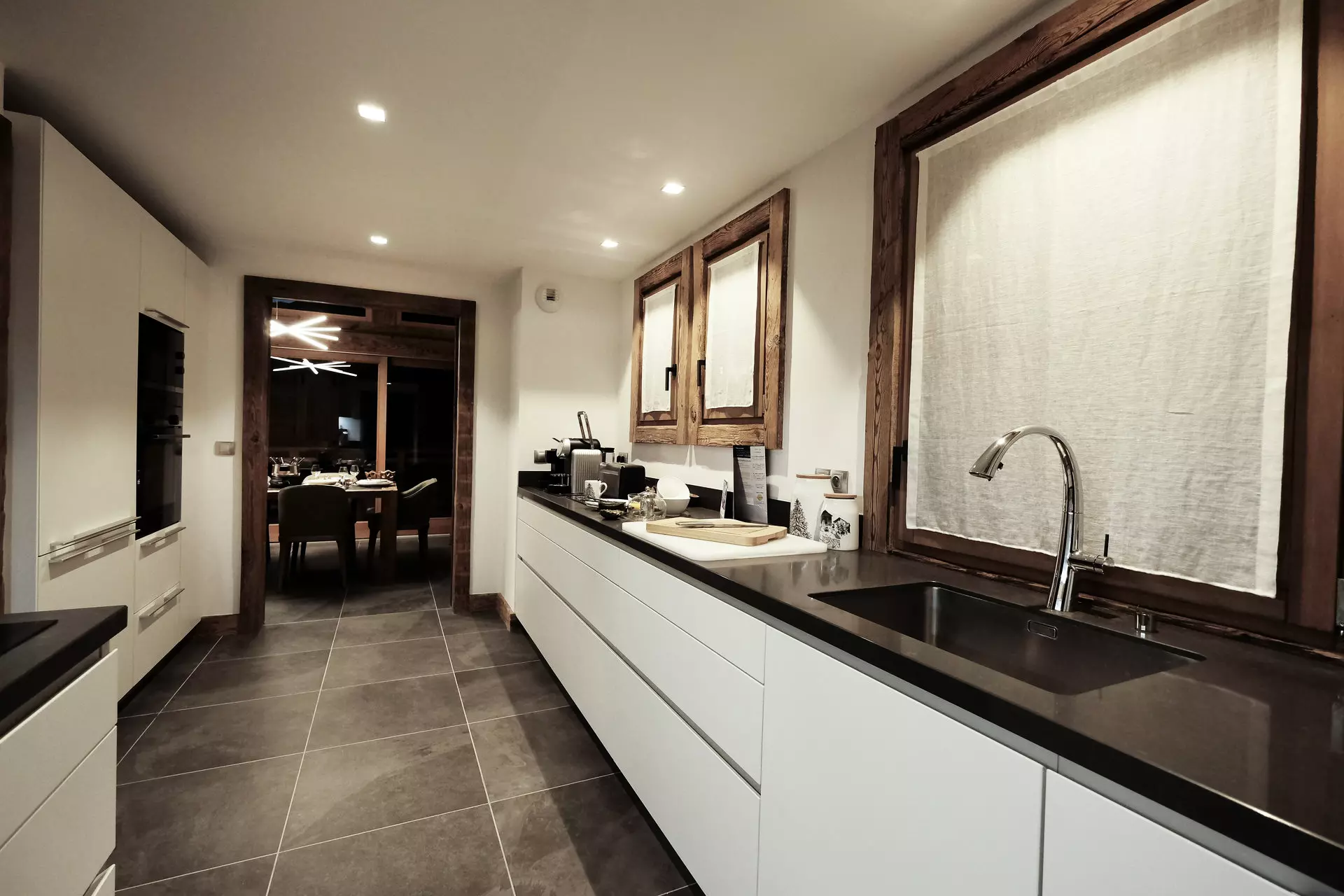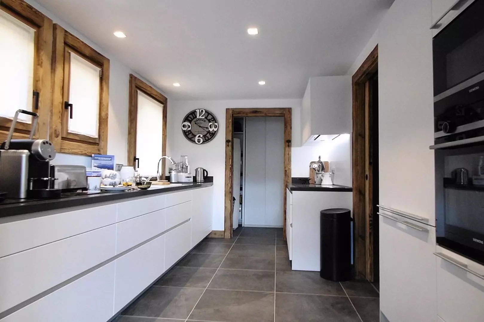 Kitchen: large refrigerator with 2 freezer drawers, dishwasher, oven, microwave, induction hob, kettle, toaster and Nespresso coffee machine.