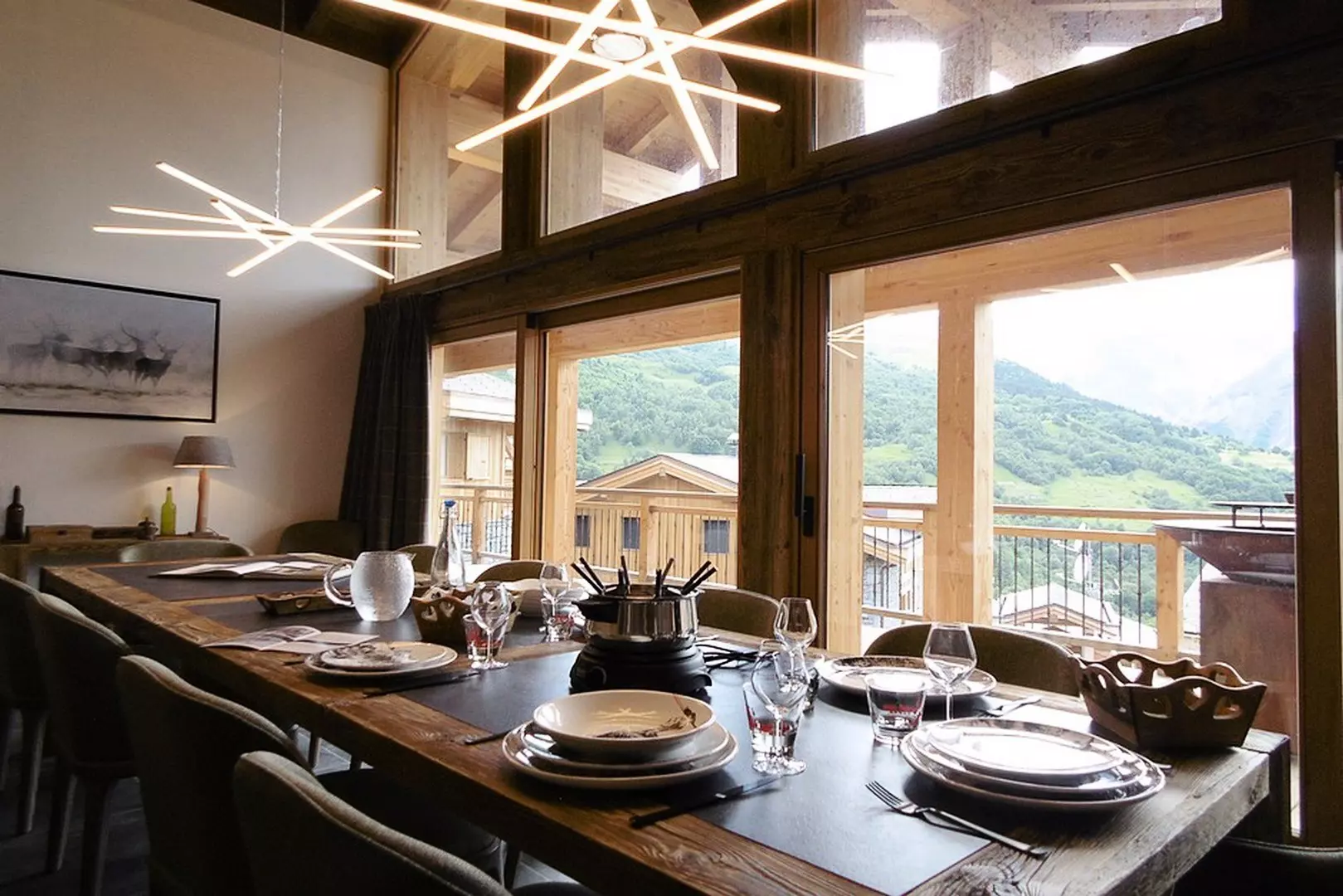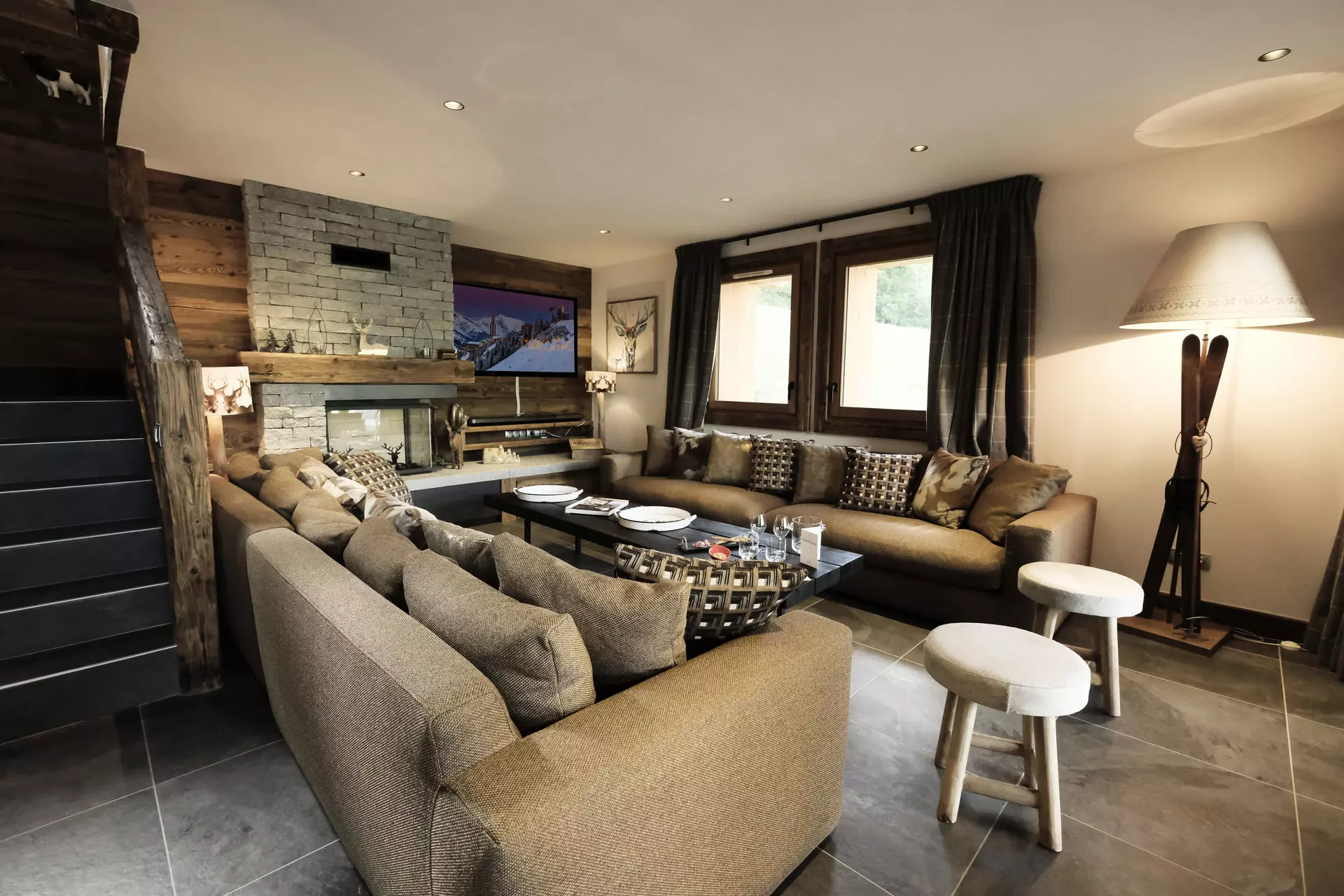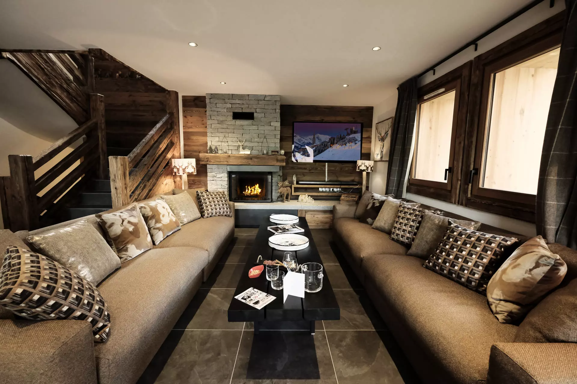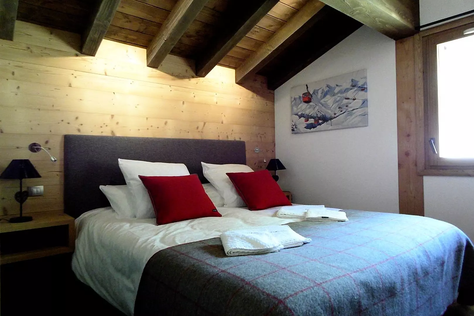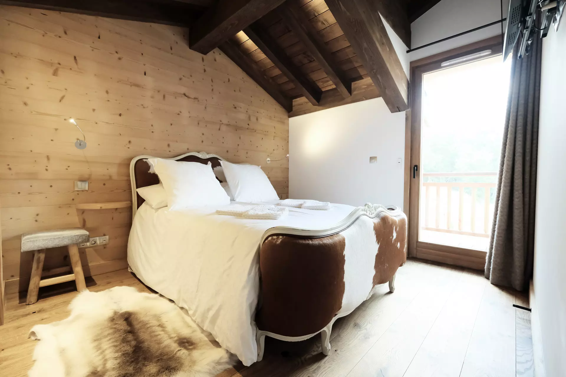 Chalet BECCA offers a luxurious setting for a truly unique vacation. This 210 m² chalet, with its 7 en-suite bedrooms and an elevator connecting the 3 floors, offers superior amenities: old wood, the warmth of Arpin fabrics, a fireplace, a sauna, a 40 m² heated terrace, and connected bedrooms. A unique place for your mountain getaway (sleeps 16).