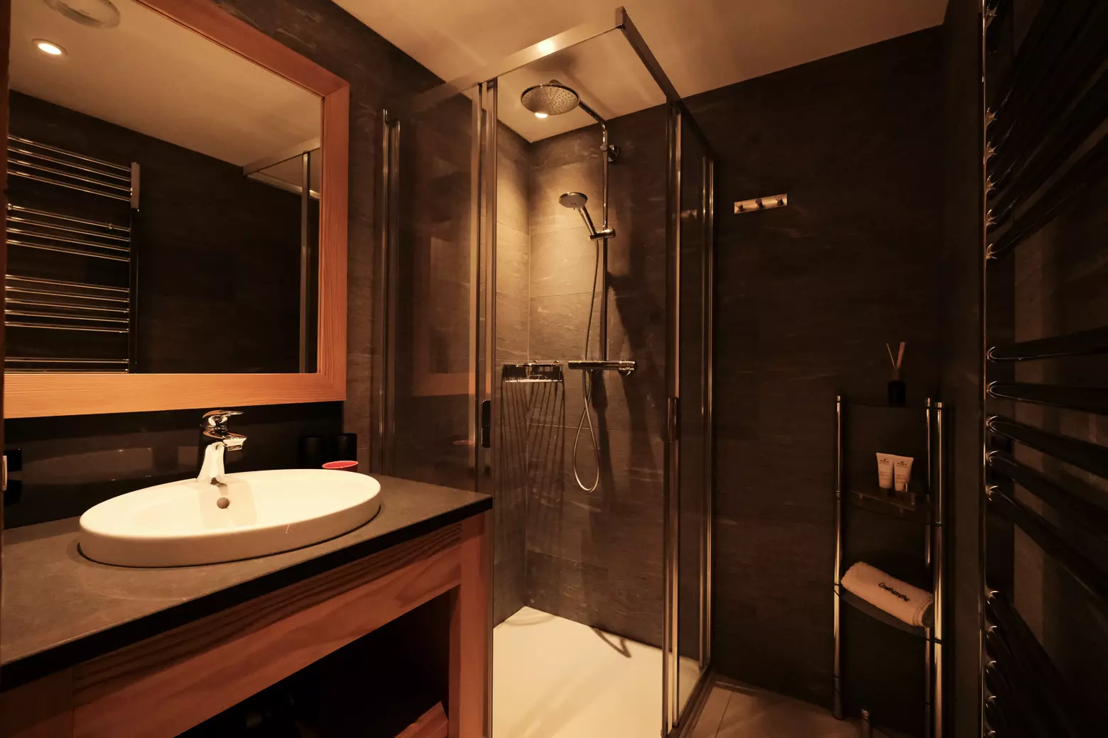 Sauna with its large walk-in shower.